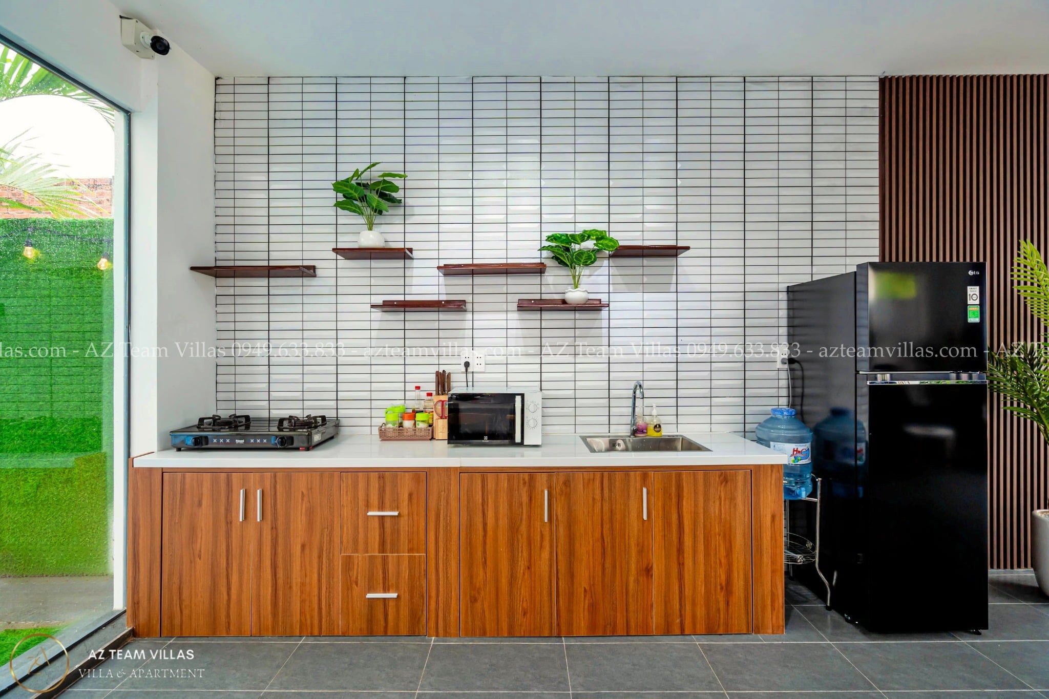✅ 1 phòng bếp đầy đủ tiện nghi (lò vi sóng, bếp nướng bbq có sẵn than nướng, bếp lẩu điện và bếp lẩu cồn có sẵn cồn , nồi hấp. gia vị ..…)