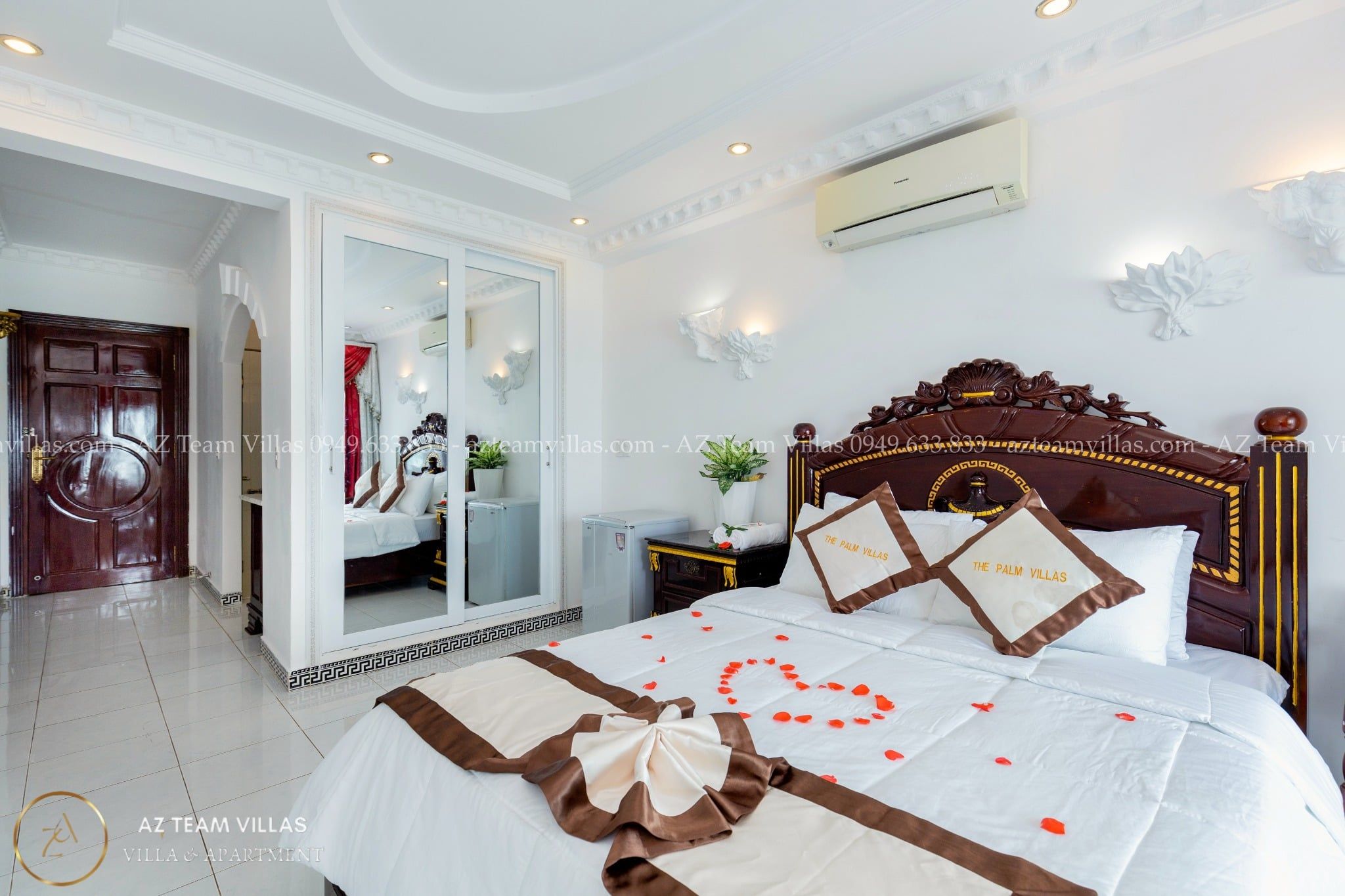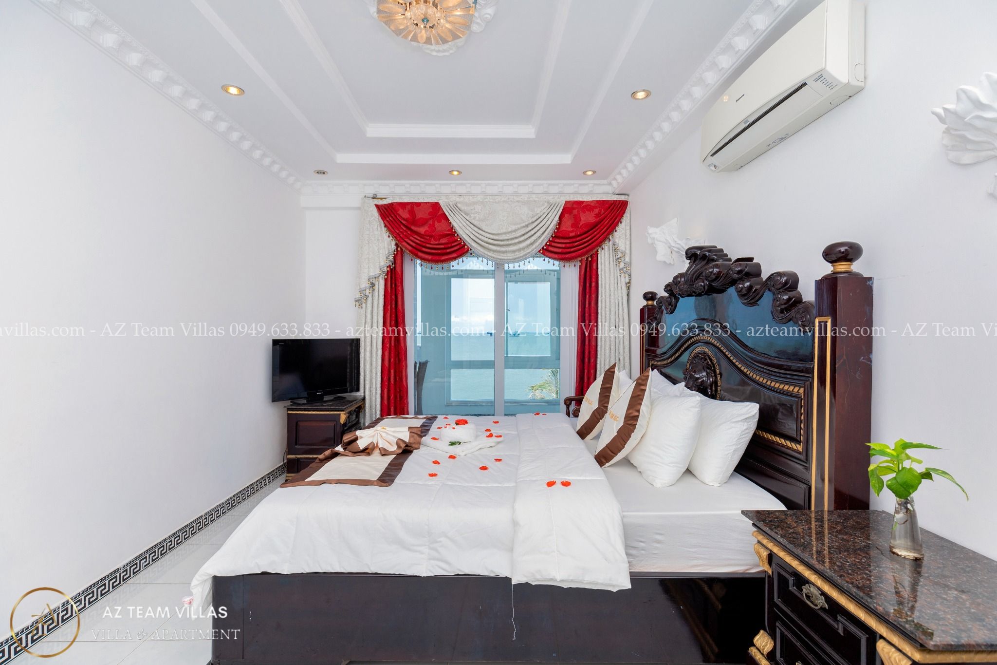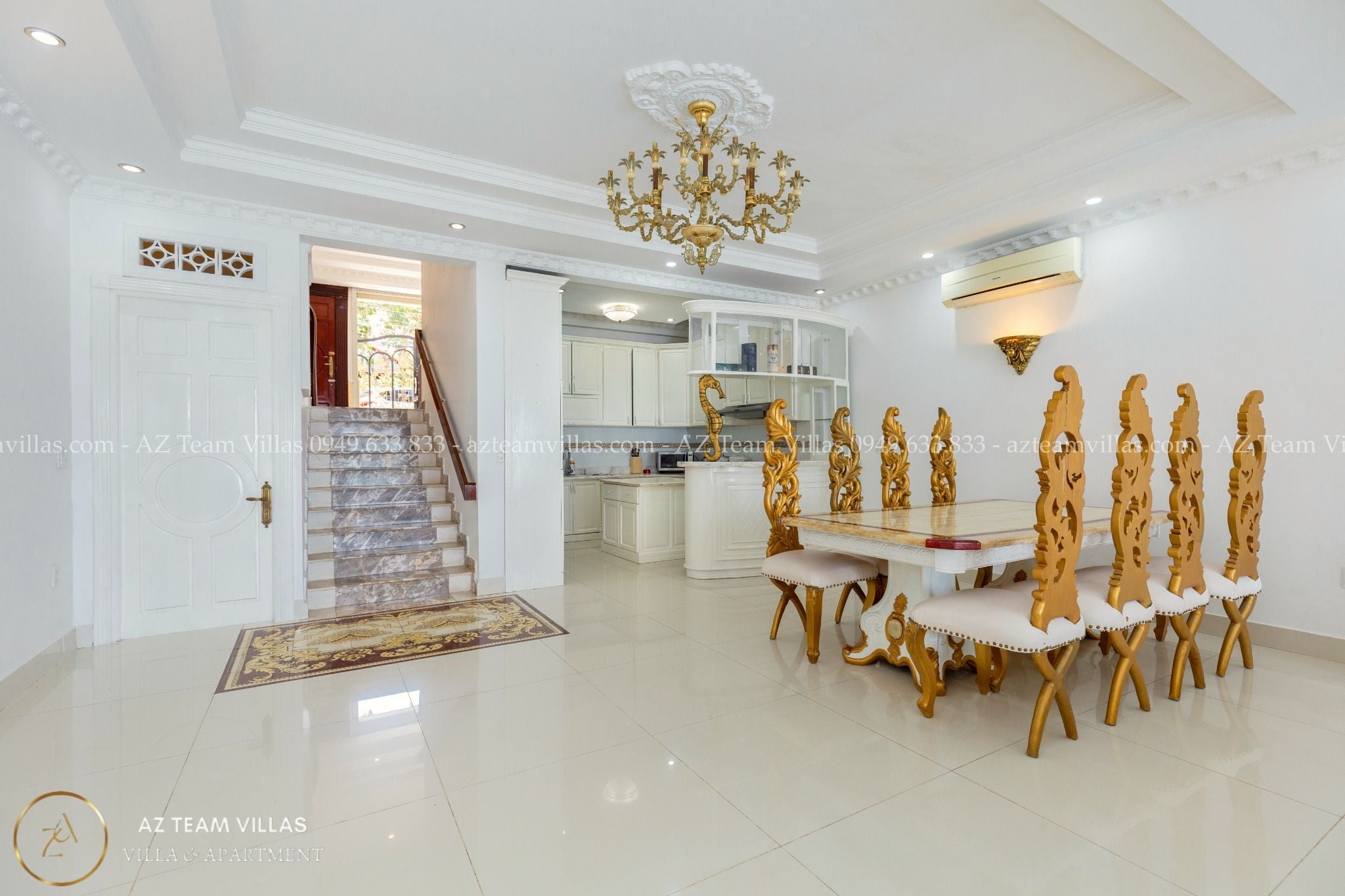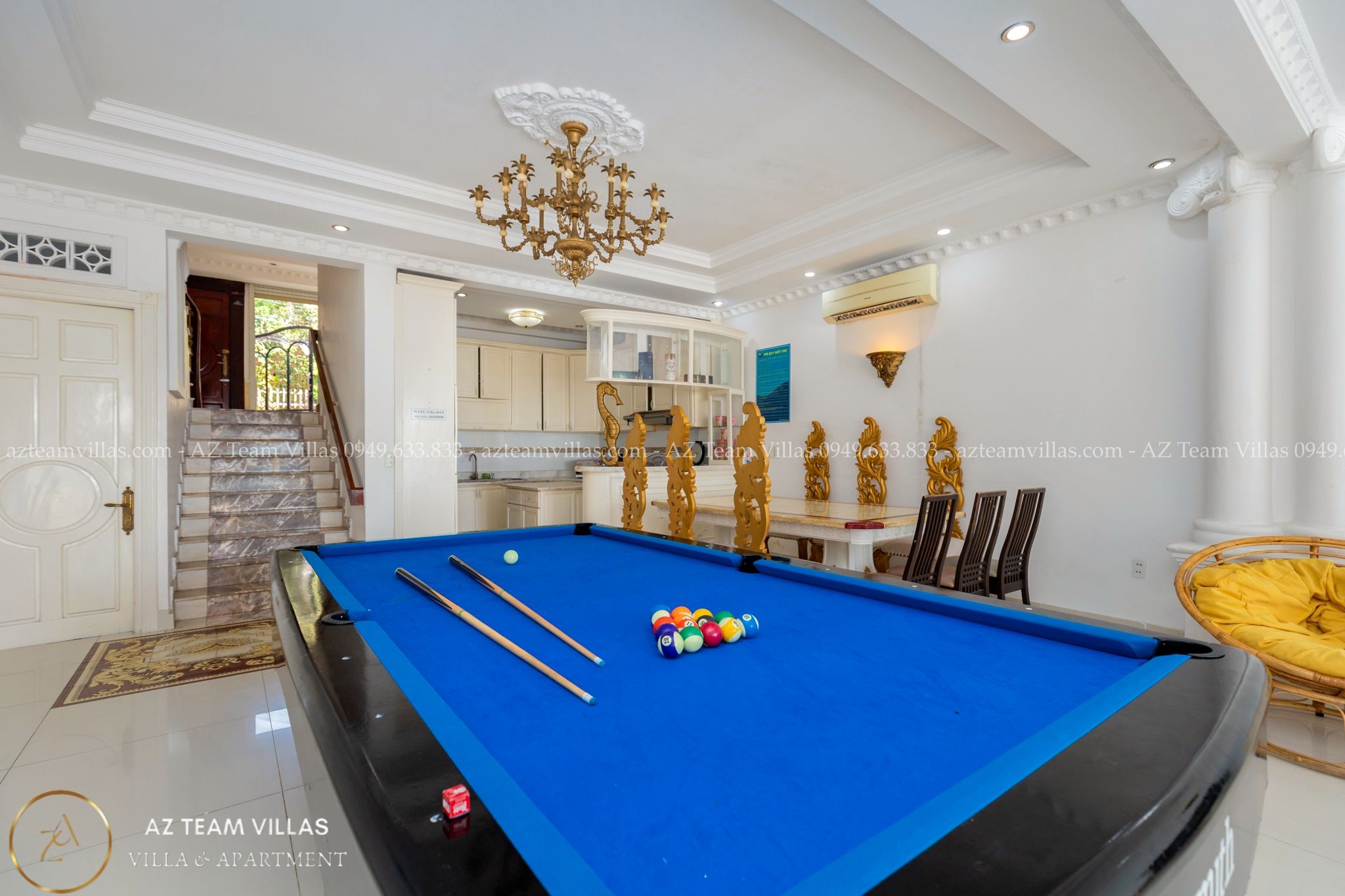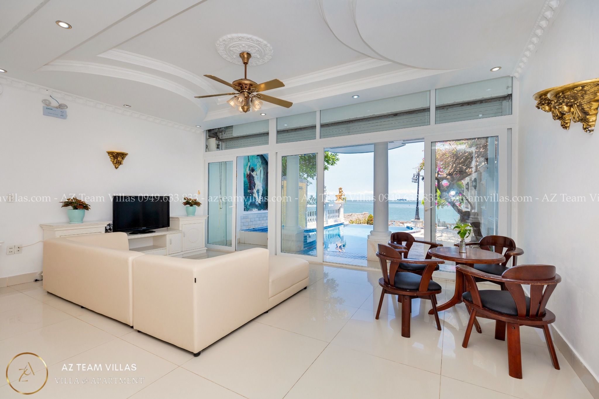 Là một Villa sang trọng và hiện đại, nằm ngay sát bãi biển Bãi Dâu, Vũng Tàu. Biệt thự có diện tích 300 m2, gồm 5 phòng ngủ, 6 nhà vệ sinh, phòng khách, nhà bếp và sân hiên. Mỗi phòng ngủ đều có giường đôi cực lớn, máy lạnh, tivi và phòng tắm riêng. Phòng khách rộng rãi và thoáng mát, có sofa, bàn ăn và cửa sổ lớn nhìn ra hồ bơi và biển. Nhà bếp được trang bị đầy đủ tiện nghi như tủ lạnh, bếp điện, lò vi sóng và máy pha cà phê. Sân hiên là nơi lý tưởng để thư giãn và thưởng thức không khí biển, có ghế đẩu, bàn ghế và máy nướng BBQ. Biệt thự còn có hồ bơi riêng rộng 30 m2, nằm trong khuôn viên xanh mát và yên tĩnh. Từ biệt thự, chỉ cần đi bộ vài bước là đến được bãi biển Bãi Dâu, nơi có cát trắng mịn và nước trong xanh. Đây là sự lựa chọn hoàn hảo cho những ai muốn tận hưởng kỳ nghỉ sang trọng và thoải mái tại Vũng Tàu