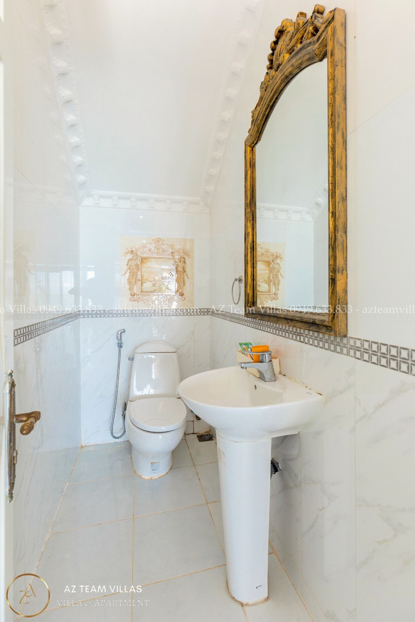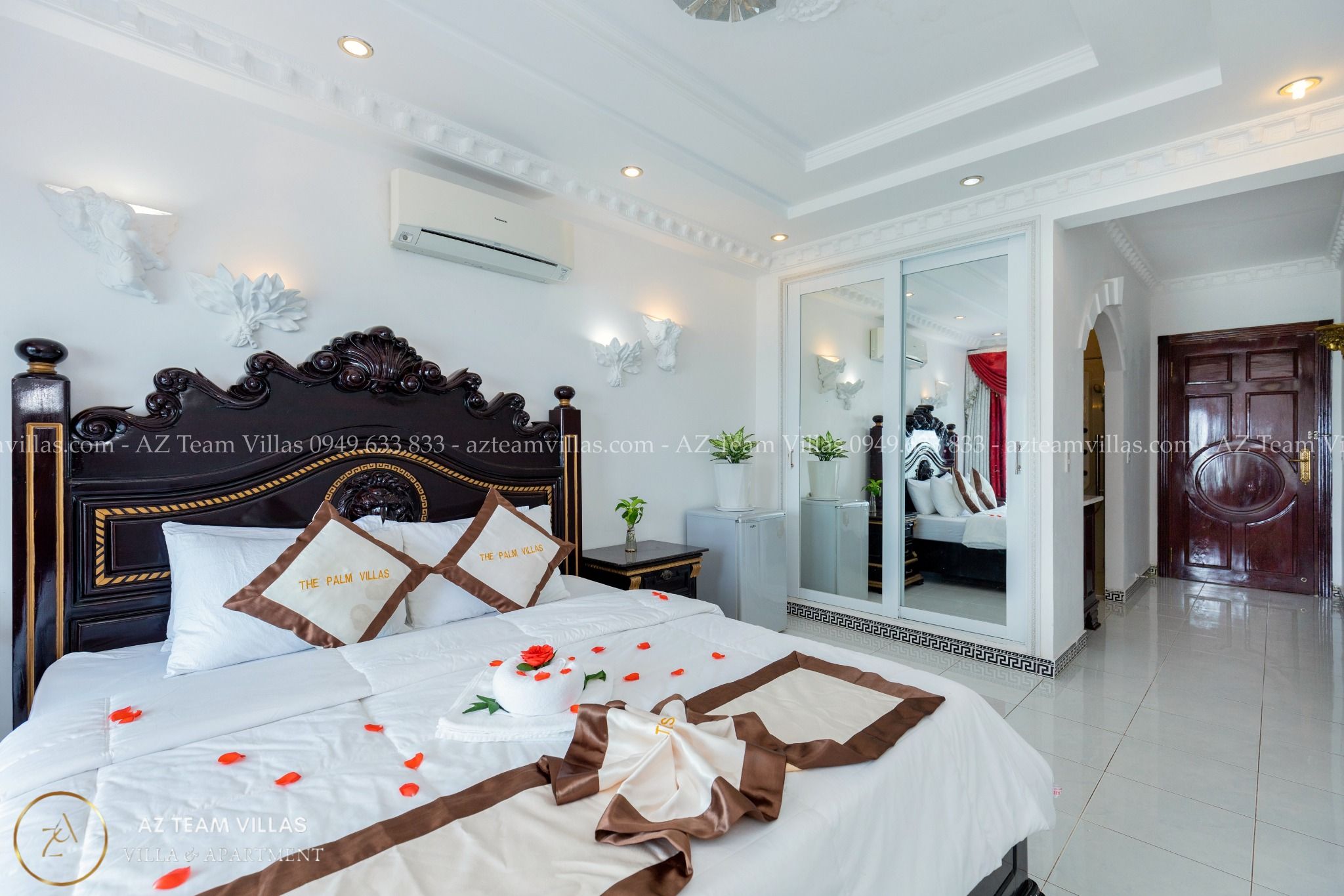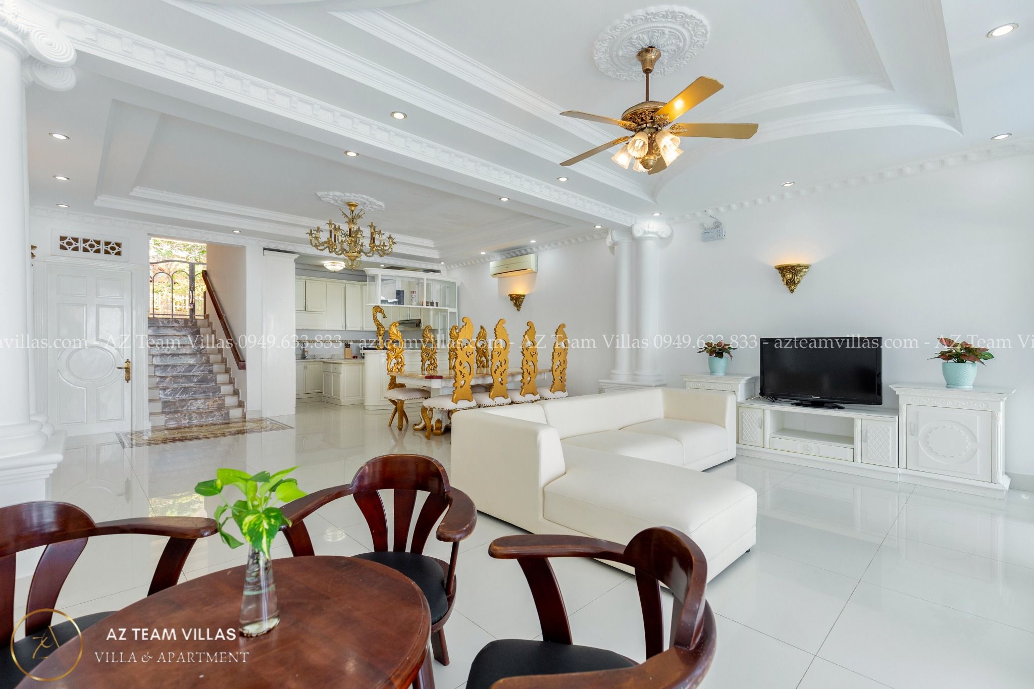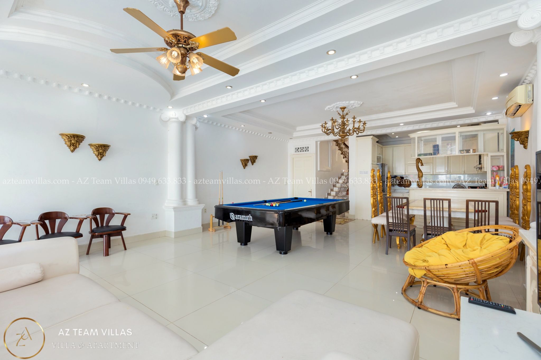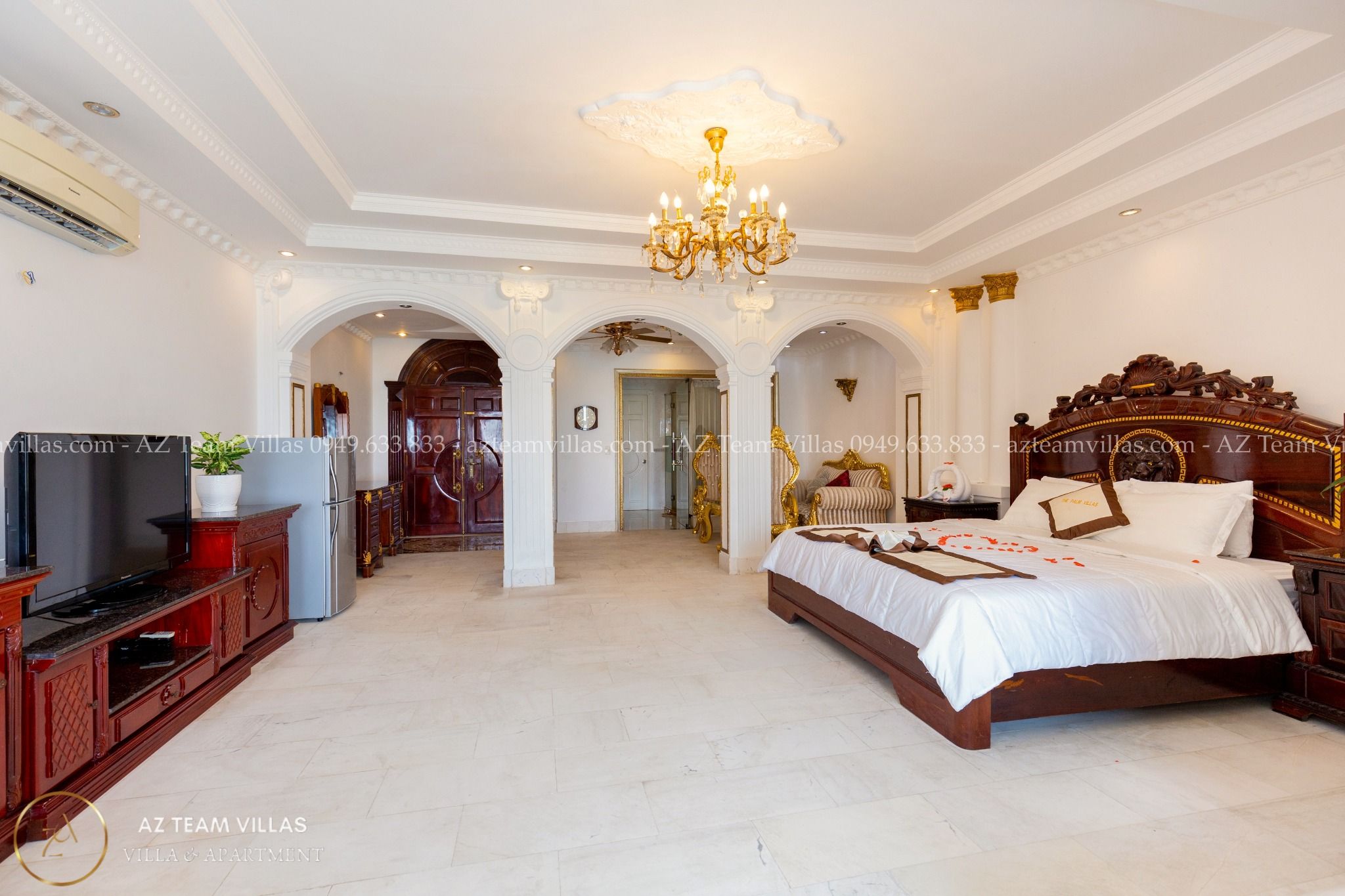 Là một Villa sang trọng và hiện đại, nằm ngay sát bãi biển Bãi Dâu, Vũng Tàu. Biệt thự có diện tích 300 m2, gồm 5 phòng ngủ, 6 nhà vệ sinh, phòng khách, nhà bếp và sân hiên. Mỗi phòng ngủ đều có giường đôi cực lớn, máy lạnh, tivi và phòng tắm riêng. Phòng khách rộng rãi và thoáng mát, có sofa, bàn ăn và cửa sổ lớn nhìn ra hồ bơi và biển. Nhà bếp được trang bị đầy đủ tiện nghi như tủ lạnh, bếp điện, lò vi sóng và máy pha cà phê. Sân hiên là nơi lý tưởng để thư giãn và thưởng thức không khí biển, có ghế đẩu, bàn ghế và máy nướng BBQ. Biệt thự còn có hồ bơi riêng rộng 30 m2, nằm trong khuôn viên xanh mát và yên tĩnh. Từ biệt thự, chỉ cần đi bộ vài bước là đến được bãi biển Bãi Dâu, nơi có cát trắng mịn và nước trong xanh. Đây là sự lựa chọn hoàn hảo cho những ai muốn tận hưởng kỳ nghỉ sang trọng và thoải mái tại Vũng Tàu