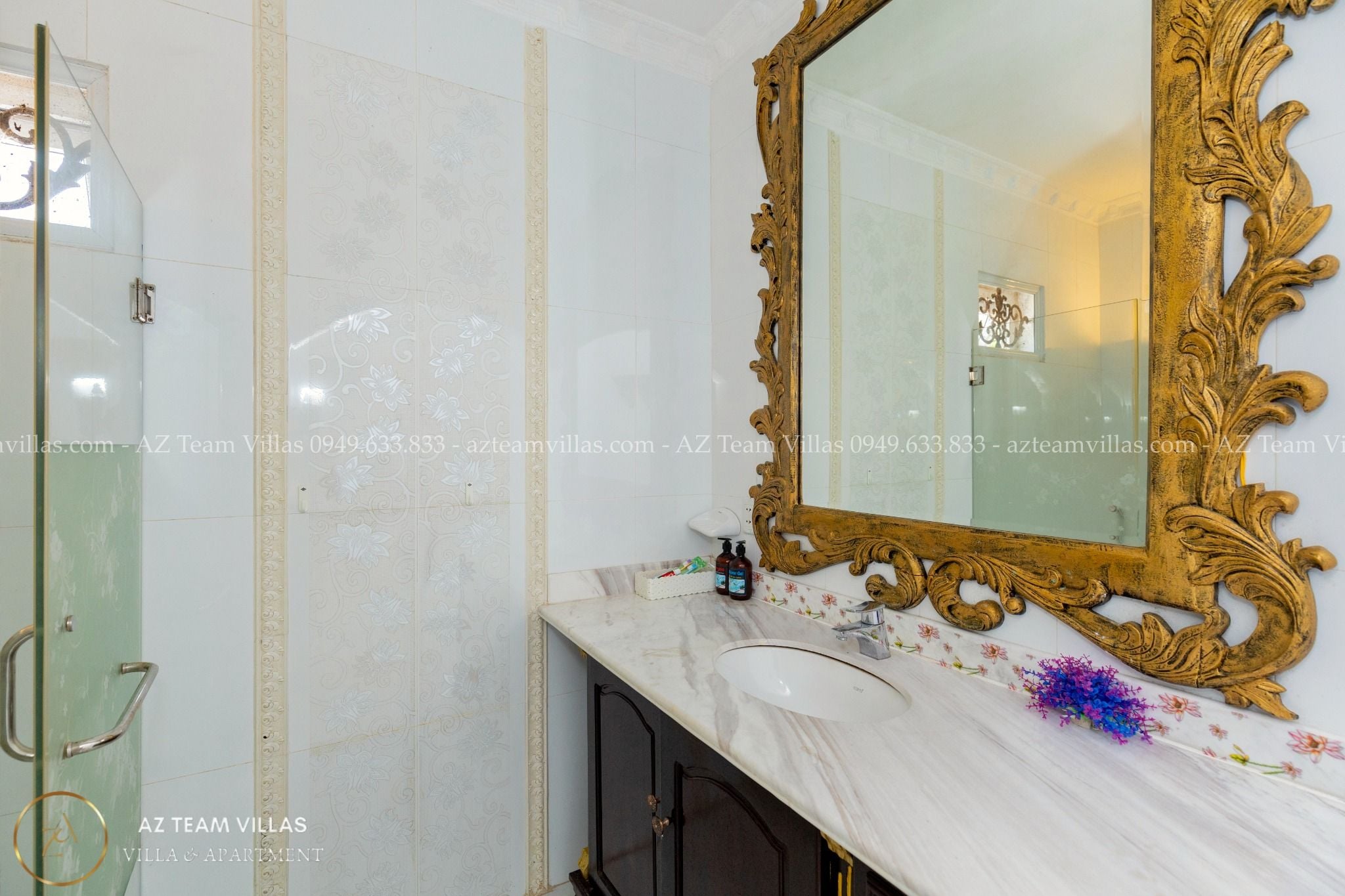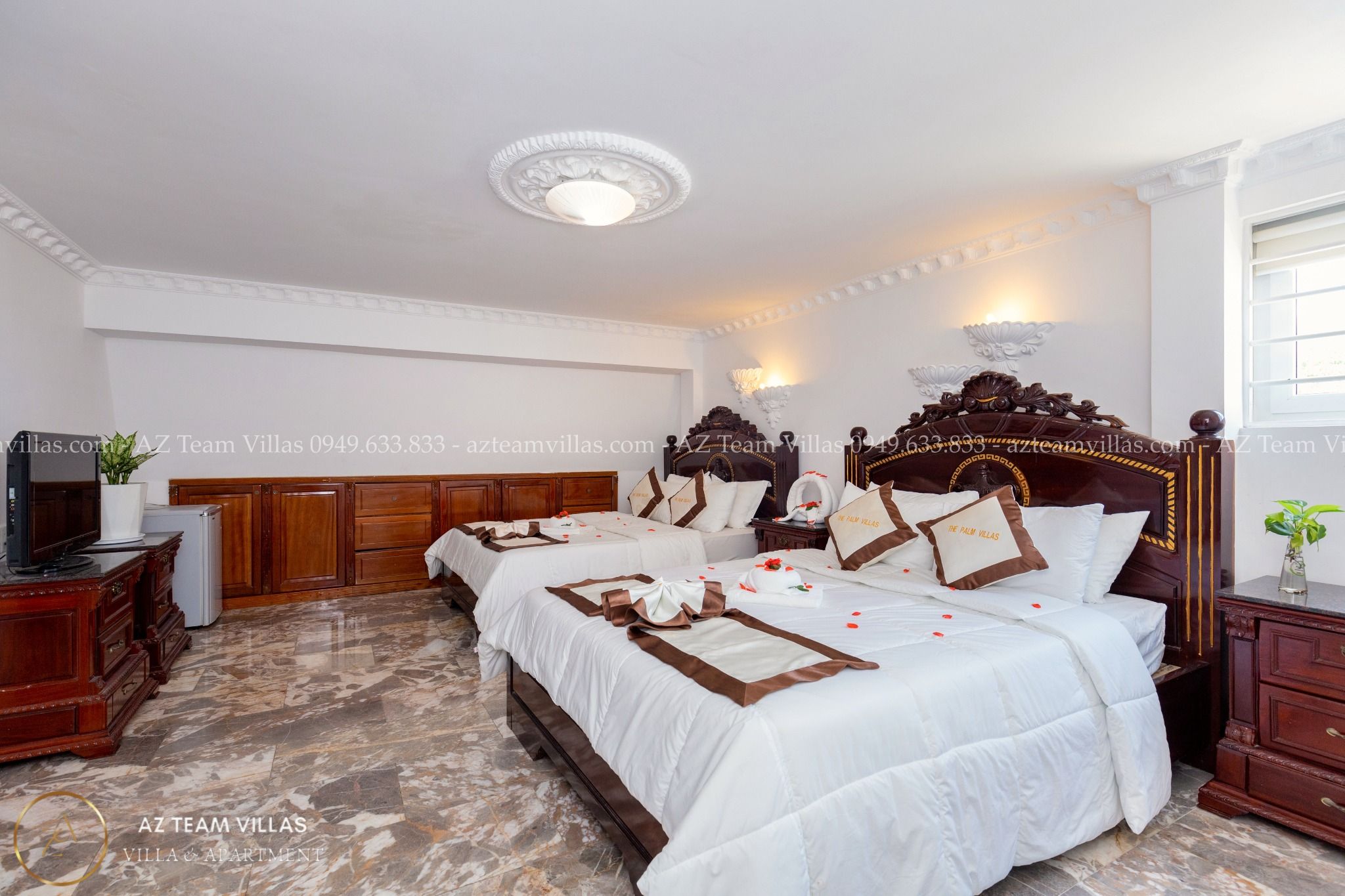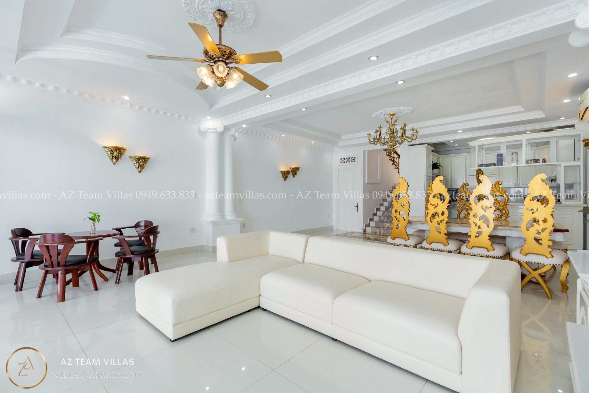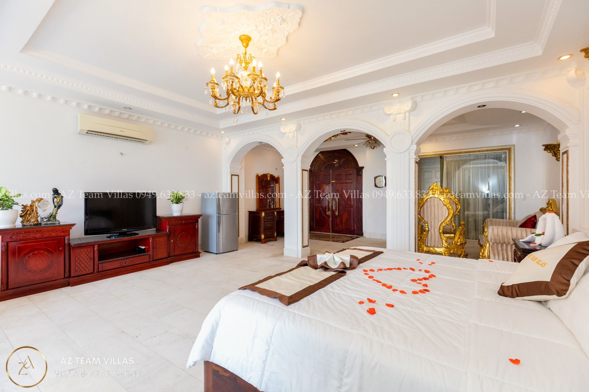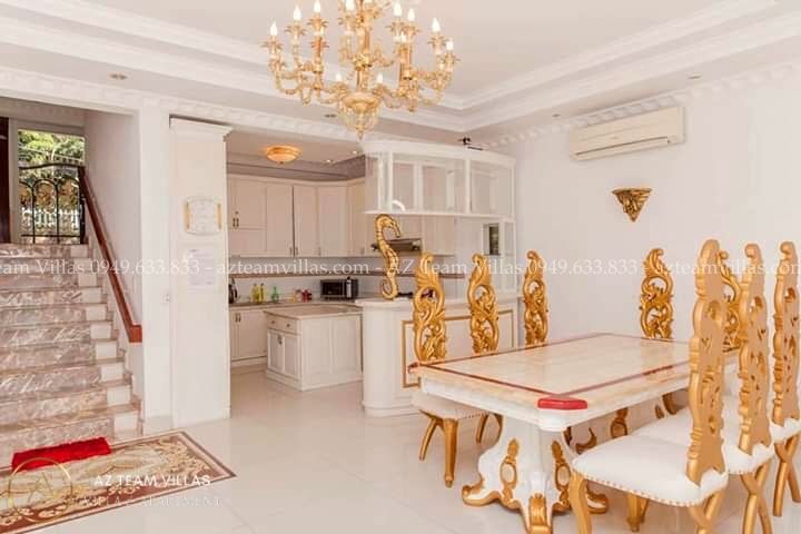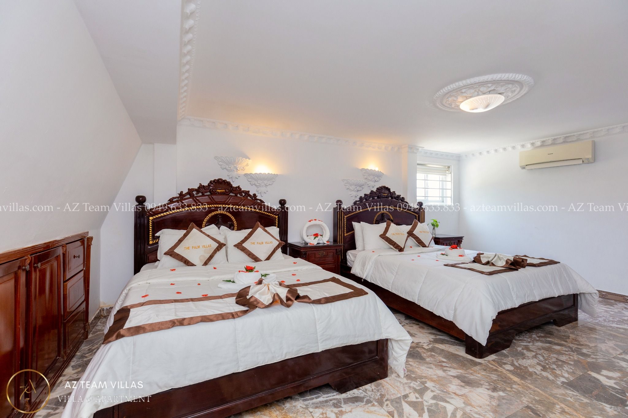Là một Villa sang trọng và hiện đại, nằm ngay sát bãi biển Bãi Dâu, Vũng Tàu. Biệt thự có diện tích 300 m2, gồm 5 phòng ngủ, 6 nhà vệ sinh, phòng khách, nhà bếp và sân hiên. Mỗi phòng ngủ đều có giường đôi cực lớn, máy lạnh, tivi và phòng tắm riêng. Phòng khách rộng rãi và thoáng mát, có sofa, bàn ăn và cửa sổ lớn nhìn ra hồ bơi và biển. Nhà bếp được trang bị đầy đủ tiện nghi như tủ lạnh, bếp điện, lò vi sóng và máy pha cà phê. Sân hiên là nơi lý tưởng để thư giãn và thưởng thức không khí biển, có ghế đẩu, bàn ghế và máy nướng BBQ. Biệt thự còn có hồ bơi riêng rộng 30 m2, nằm trong khuôn viên xanh mát và yên tĩnh. Từ biệt thự, chỉ cần đi bộ vài bước là đến được bãi biển Bãi Dâu, nơi có cát trắng mịn và nước trong xanh. Đây là sự lựa chọn hoàn hảo cho những ai muốn tận hưởng kỳ nghỉ sang trọng và thoải mái tại Vũng Tàu