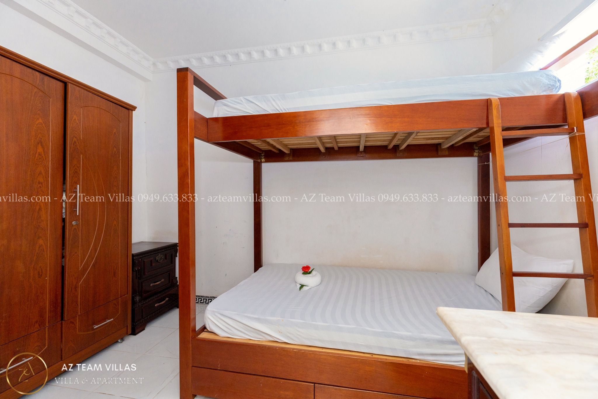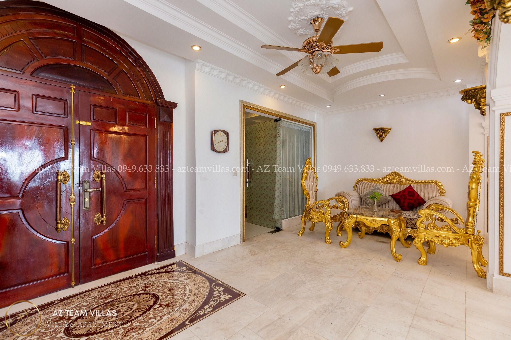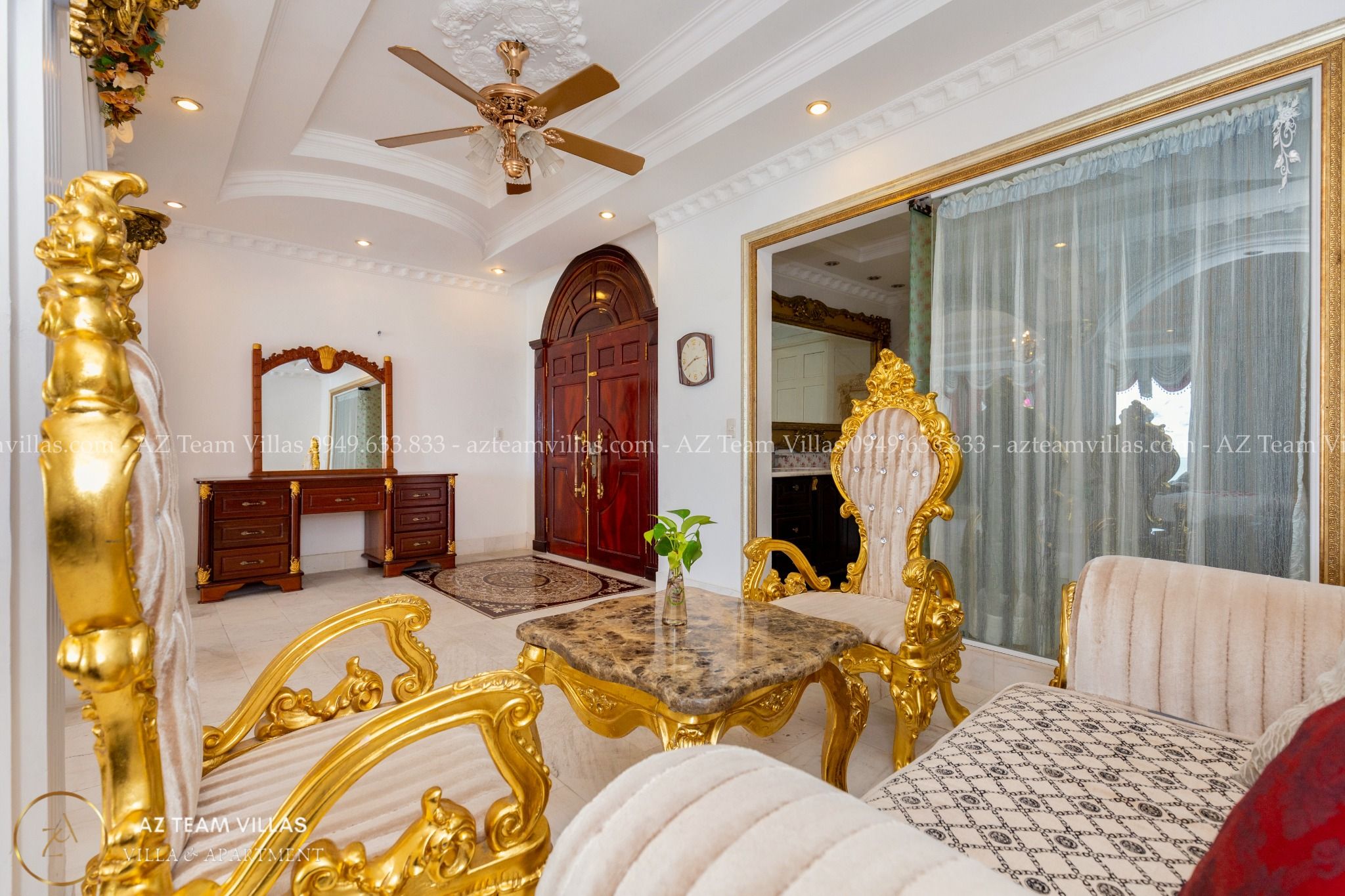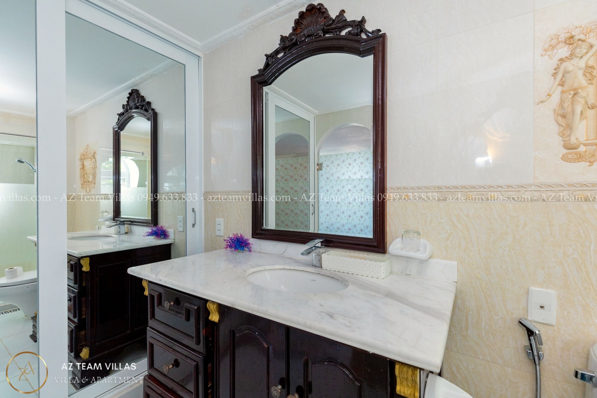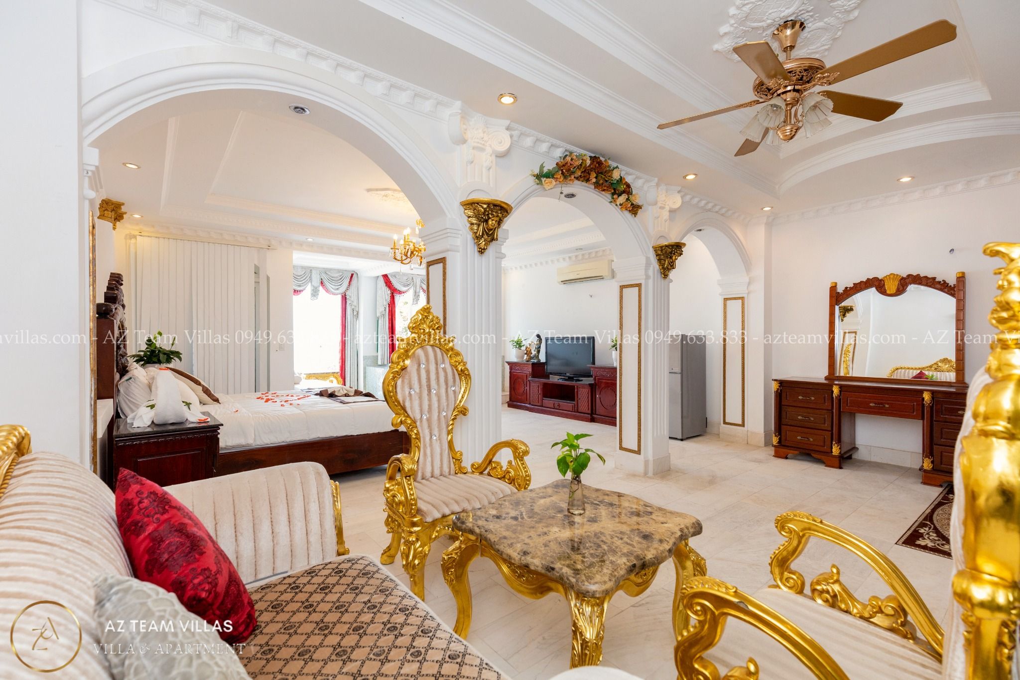 Là một Villa sang trọng và hiện đại, nằm ngay sát bãi biển Bãi Dâu, Vũng Tàu. Biệt thự có diện tích 300 m2, gồm 5 phòng ngủ, 6 nhà vệ sinh, phòng khách, nhà bếp và sân hiên. Mỗi phòng ngủ đều có giường đôi cực lớn, máy lạnh, tivi và phòng tắm riêng. Phòng khách rộng rãi và thoáng mát, có sofa, bàn ăn và cửa sổ lớn nhìn ra hồ bơi và biển. Nhà bếp được trang bị đầy đủ tiện nghi như tủ lạnh, bếp điện, lò vi sóng và máy pha cà phê. Sân hiên là nơi lý tưởng để thư giãn và thưởng thức không khí biển, có ghế đẩu, bàn ghế và máy nướng BBQ. Biệt thự còn có hồ bơi riêng rộng 30 m2, nằm trong khuôn viên xanh mát và yên tĩnh. Từ biệt thự, chỉ cần đi bộ vài bước là đến được bãi biển Bãi Dâu, nơi có cát trắng mịn và nước trong xanh. Đây là sự lựa chọn hoàn hảo cho những ai muốn tận hưởng kỳ nghỉ sang trọng và thoải mái tại Vũng Tàu