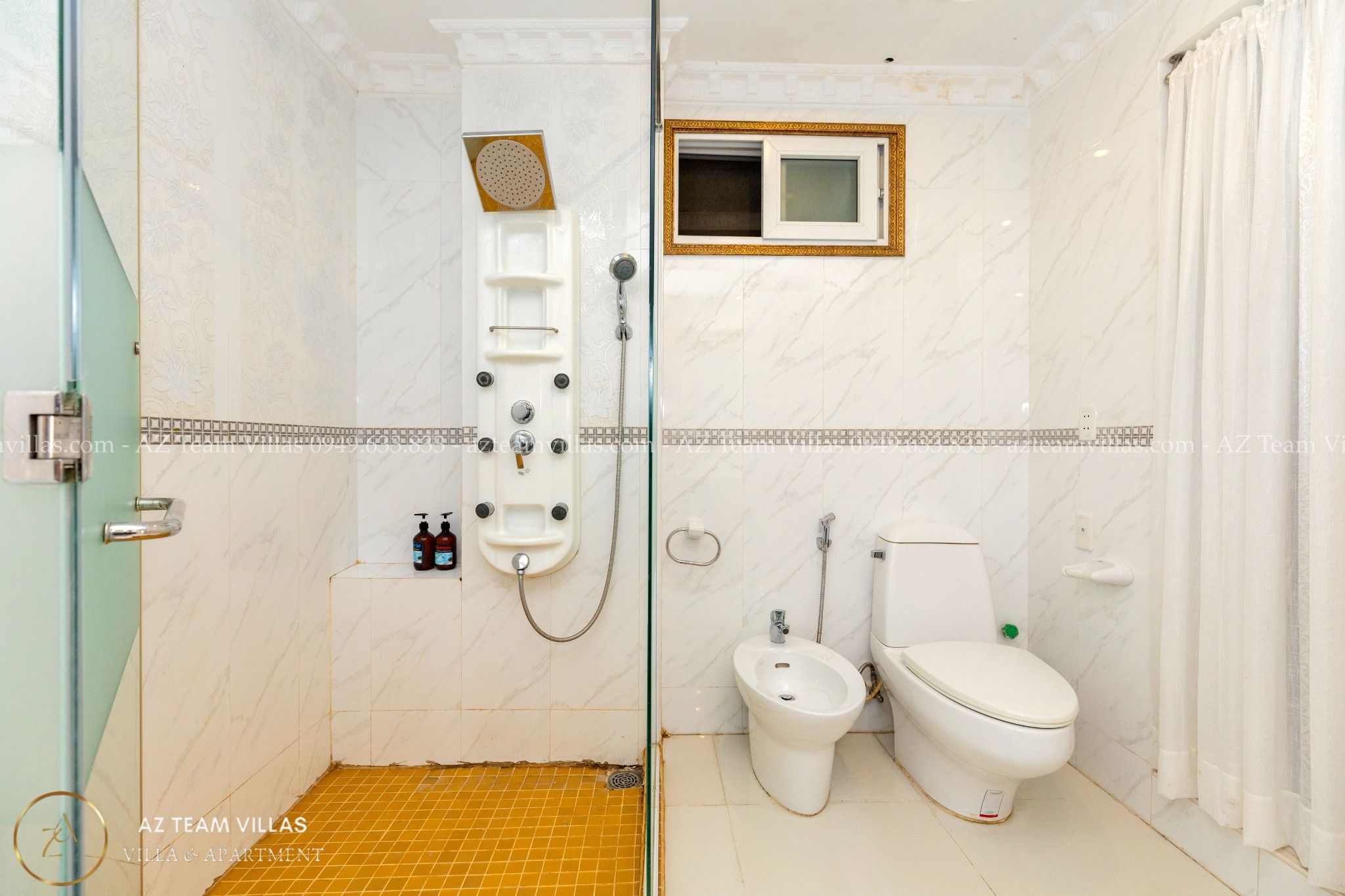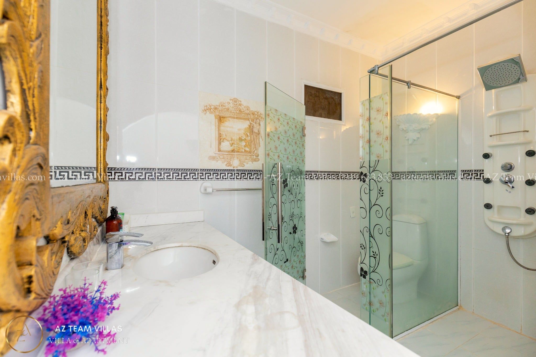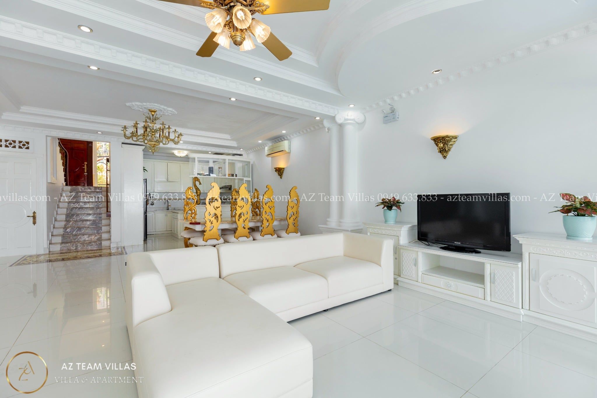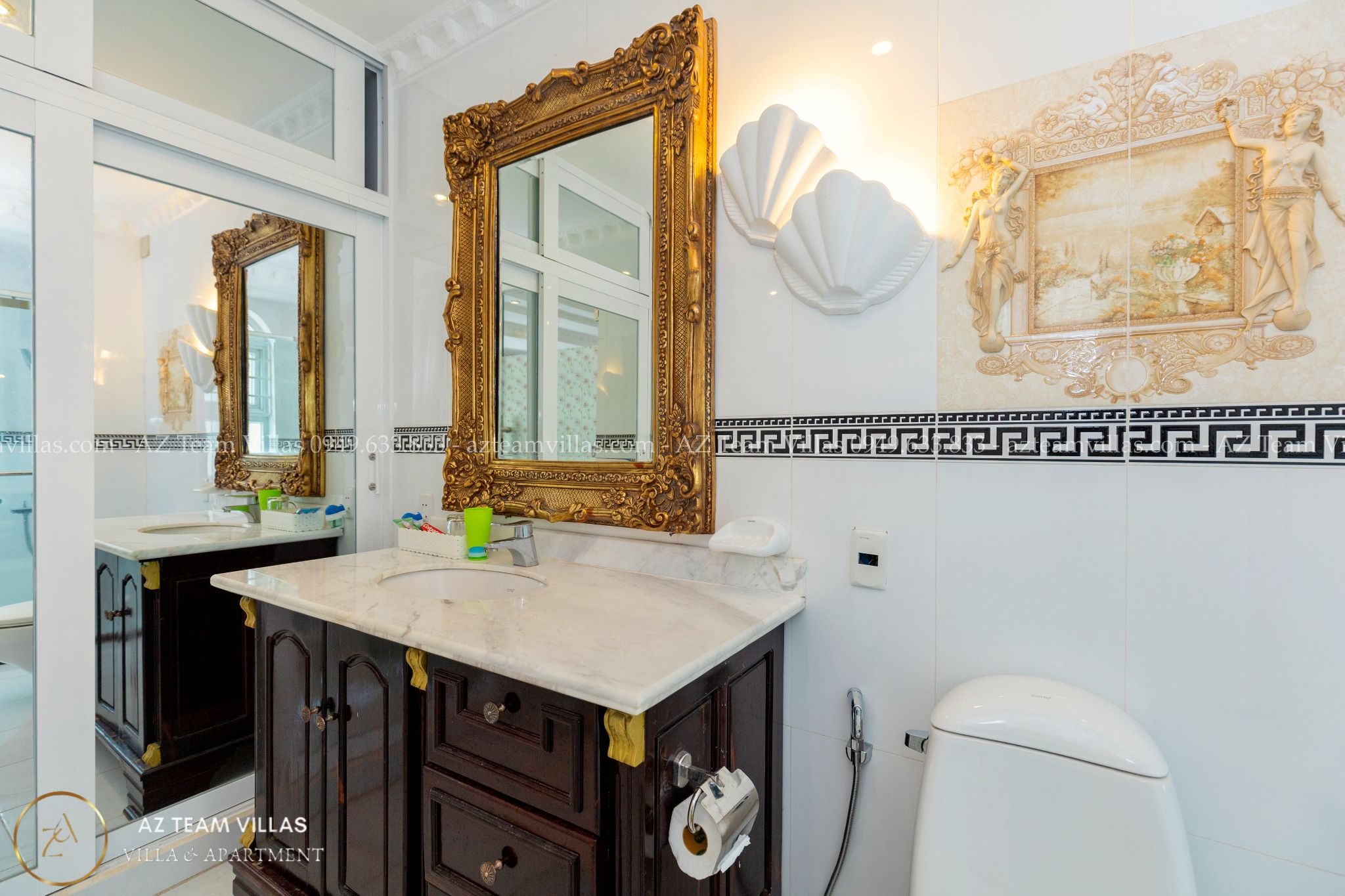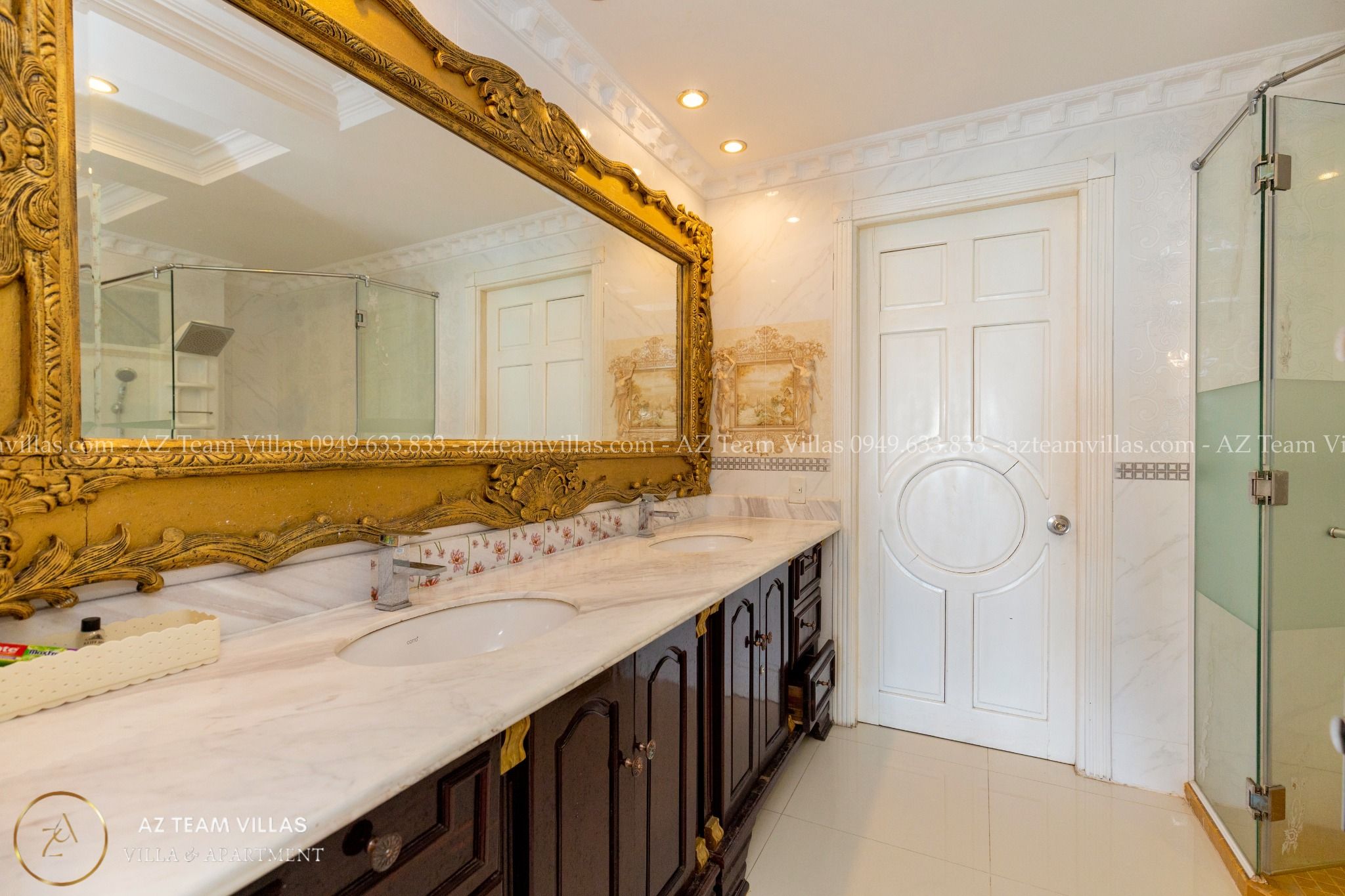 Là một Villa sang trọng và hiện đại, nằm ngay sát bãi biển Bãi Dâu, Vũng Tàu. Biệt thự có diện tích 300 m2, gồm 5 phòng ngủ, 6 nhà vệ sinh, phòng khách, nhà bếp và sân hiên. Mỗi phòng ngủ đều có giường đôi cực lớn, máy lạnh, tivi và phòng tắm riêng. Phòng khách rộng rãi và thoáng mát, có sofa, bàn ăn và cửa sổ lớn nhìn ra hồ bơi và biển. Nhà bếp được trang bị đầy đủ tiện nghi như tủ lạnh, bếp điện, lò vi sóng và máy pha cà phê. Sân hiên là nơi lý tưởng để thư giãn và thưởng thức không khí biển, có ghế đẩu, bàn ghế và máy nướng BBQ. Biệt thự còn có hồ bơi riêng rộng 30 m2, nằm trong khuôn viên xanh mát và yên tĩnh. Từ biệt thự, chỉ cần đi bộ vài bước là đến được bãi biển Bãi Dâu, nơi có cát trắng mịn và nước trong xanh. Đây là sự lựa chọn hoàn hảo cho những ai muốn tận hưởng kỳ nghỉ sang trọng và thoải mái tại Vũng Tàu