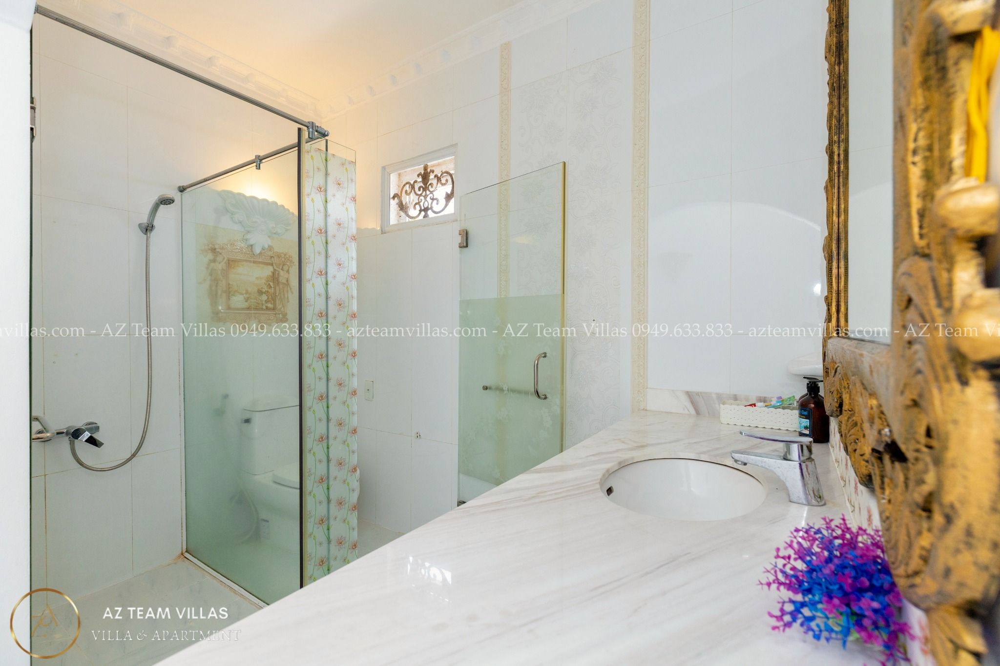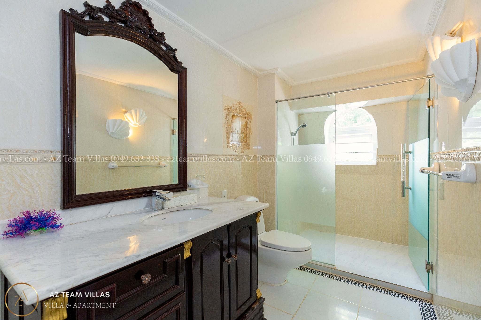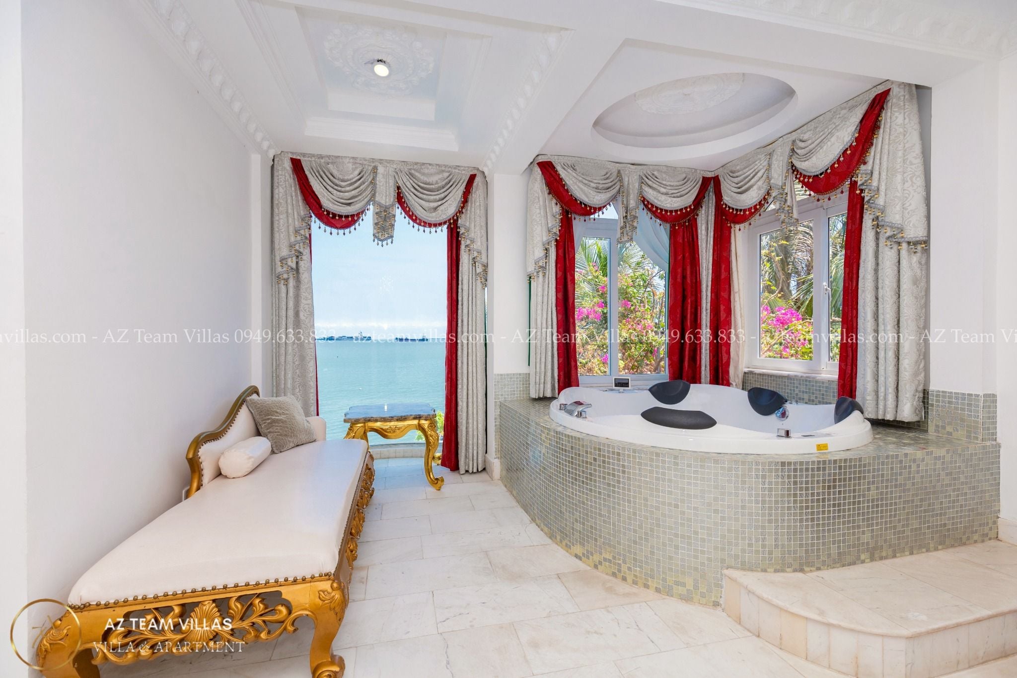 Nằm ngay bên cạnh bãi biển Bãi Dâu, Villa này là một ngôi nhà nghỉ dưỡng cao cấp và đẳng cấp. Villa có tổng diện tích 300 m2, bao gồm 5 phòng ngủ, 6 nhà vệ sinh, phòng khách, nhà bếp và sân hiên. Phòng ngủ đều rộng rãi và tiện nghi, có giường đôi to, máy lạnh, tivi và phòng tắm riêng. Phòng khách có không gian mở và thoáng đãng, có sofa hướng ra biển. Ngoài ra Villa còn có hồ bơi, bãi biển riêng biệt, phòng karaoke, Sân tổ chức tiệc BBQ...