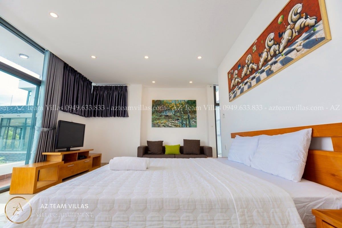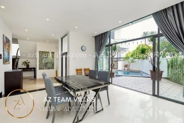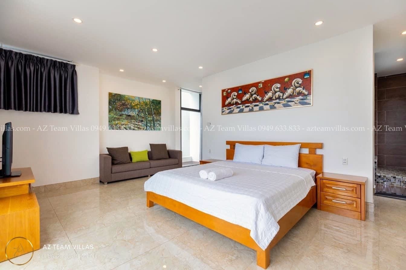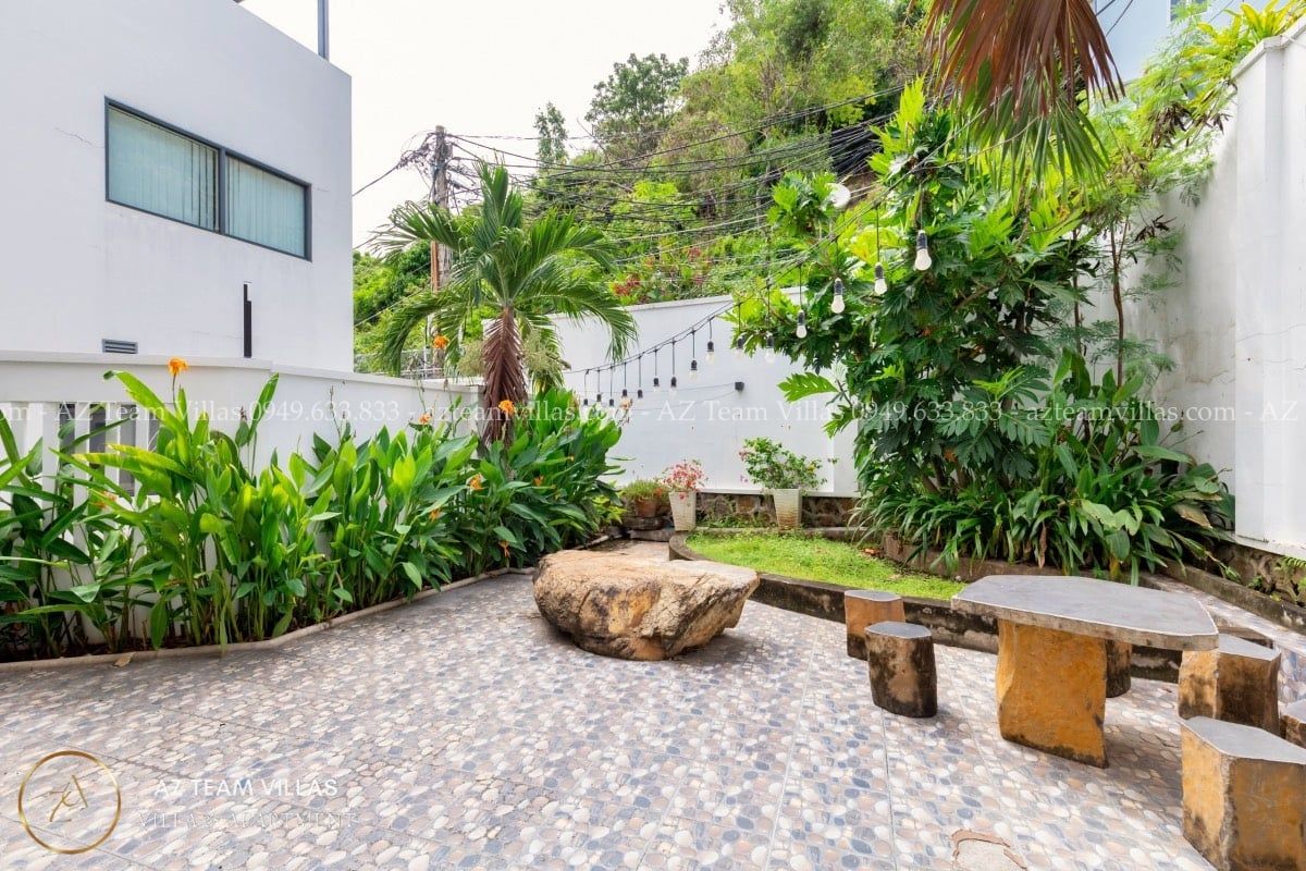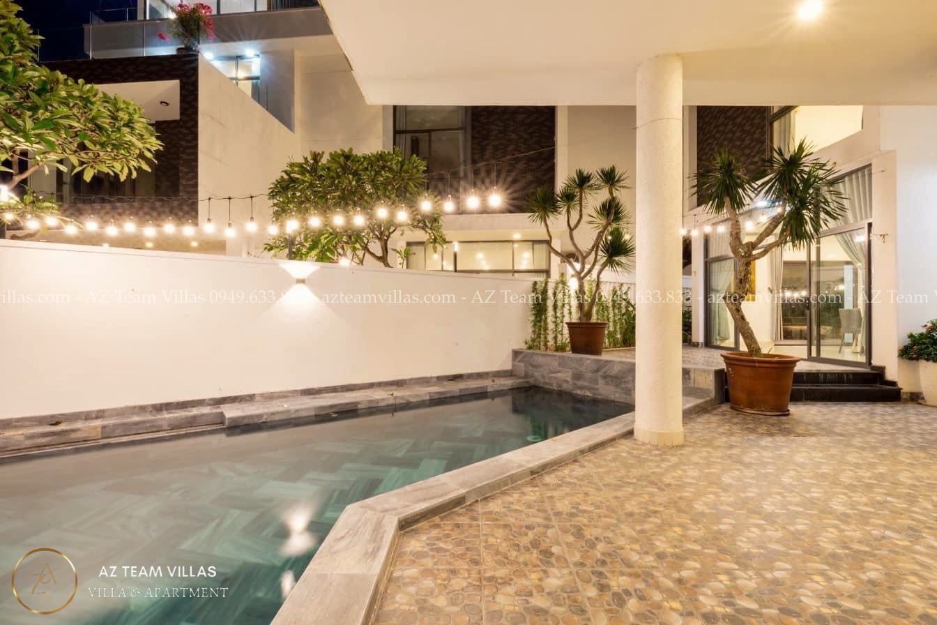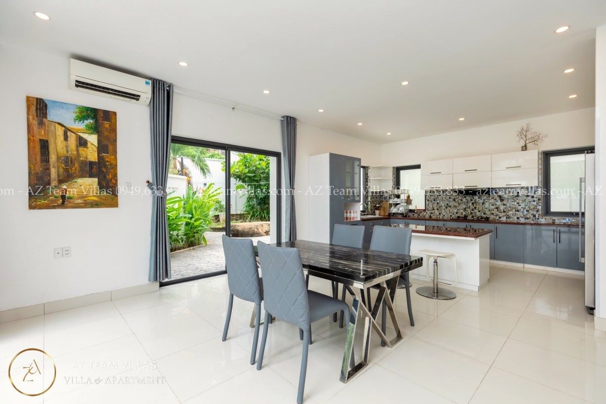 Là một Villa sang trọng và hiện đại, nằm ngay sát bãi biển Bãi Dâu, Vũng Tàu. Biệt thự có diện tích 300 m2, gồm 5 phòng ngủ, 6 nhà vệ sinh, phòng khách, nhà bếp và sân hiên. Mỗi phòng ngủ đều có giường đôi cực lớn, máy lạnh, tivi và phòng tắm riêng. Phòng khách rộng rãi và thoáng mát, có sofa, bàn ăn và cửa sổ lớn nhìn ra hồ bơi và biển. Nhà bếp được trang bị đầy đủ tiện nghi như tủ lạnh, bếp điện, lò vi sóng và máy pha cà phê. Sân hiên là nơi lý tưởng để thư giãn và thưởng thức không khí biển, có ghế đẩu, bàn ghế và máy nướng BBQ. Biệt thự còn có hồ bơi riêng rộng 30 m2, nằm trong khuôn viên xanh mát và yên tĩnh. Từ biệt thự, chỉ cần đi bộ vài bước là đến được bãi biển Bãi Dâu, nơi có cát trắng mịn và nước trong xanh. Đây là sự lựa chọn hoàn hảo cho những ai muốn tận hưởng kỳ nghỉ sang trọng và thoải mái tại Vũng Tàu