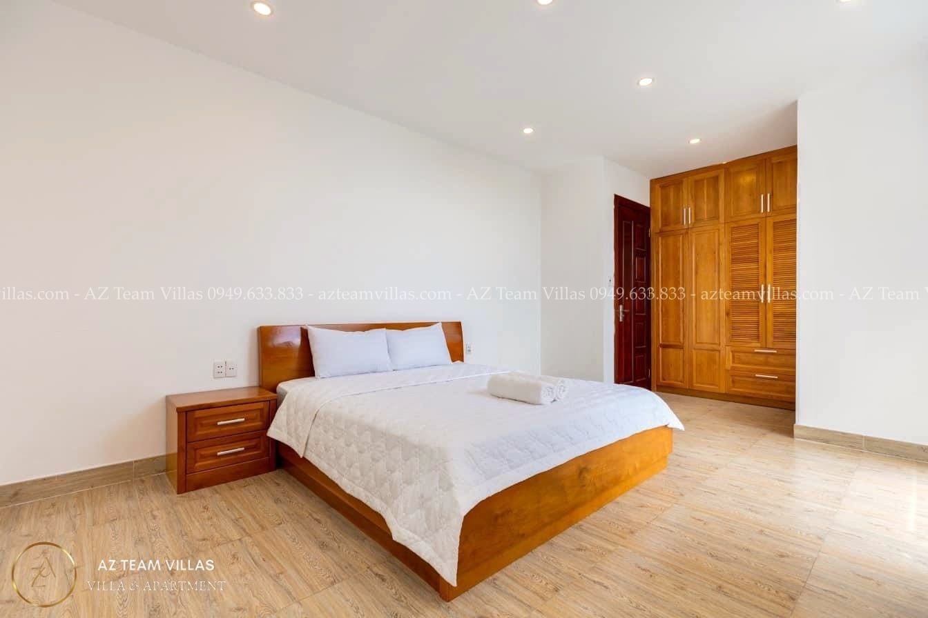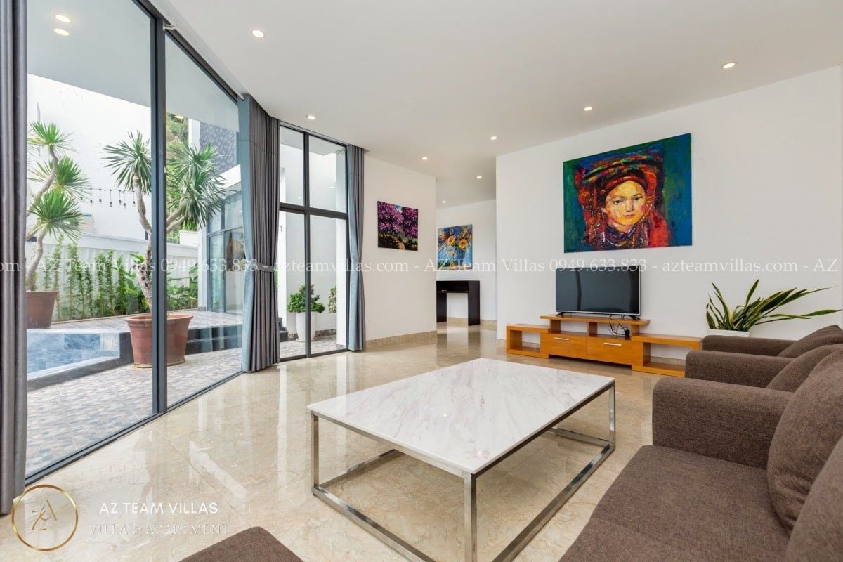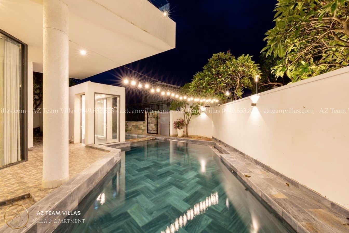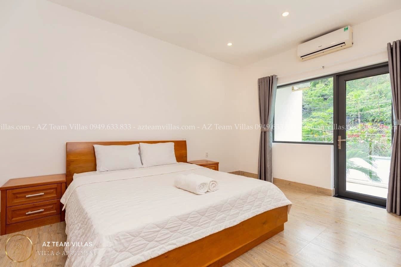 Là một Villa sang trọng và hiện đại, nằm ngay sát bãi biển Bãi Dâu, Vũng Tàu. Biệt thự có diện tích 300 m2, gồm 5 phòng ngủ, 6 nhà vệ sinh, phòng khách, nhà bếp và sân hiên. Mỗi phòng ngủ đều có giường đôi cực lớn, máy lạnh, tivi và phòng tắm riêng. Phòng khách rộng rãi và thoáng mát, có sofa, bàn ăn và cửa sổ lớn nhìn ra hồ bơi và biển. Nhà bếp được trang bị đầy đủ tiện nghi như tủ lạnh, bếp điện, lò vi sóng và máy pha cà phê. Sân hiên là nơi lý tưởng để thư giãn và thưởng thức không khí biển, có ghế đẩu, bàn ghế và máy nướng BBQ. Biệt thự còn có hồ bơi riêng rộng 30 m2, nằm trong khuôn viên xanh mát và yên tĩnh. Từ biệt thự, chỉ cần đi bộ vài bước là đến được bãi biển Bãi Dâu, nơi có cát trắng mịn và nước trong xanh. Đây là sự lựa chọn hoàn hảo cho những ai muốn tận hưởng kỳ nghỉ sang trọng và thoải mái tại Vũng Tàu