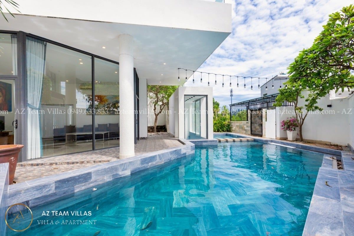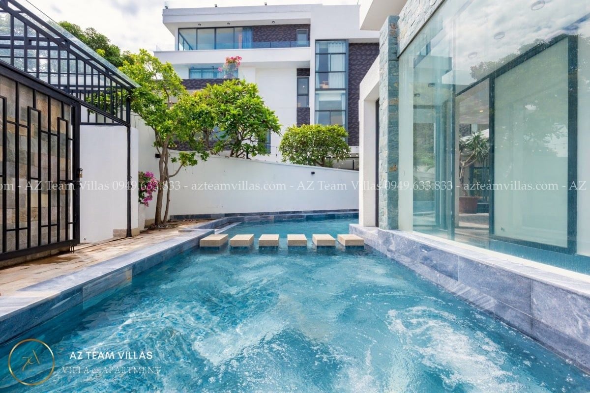 Nằm ngay bên cạnh bãi biển Bãi Dâu, Villa này là một ngôi nhà nghỉ dưỡng cao cấp và đẳng cấp. Villa có tổng diện tích 300 m2, bao gồm 5 phòng ngủ, 6 nhà vệ sinh, phòng khách, nhà bếp và sân hiên. Phòng ngủ đều rộng rãi và tiện nghi, có giường đôi to, máy lạnh, tivi và phòng tắm riêng. Phòng khách có không gian mở và thoáng đãng, có sofa hướng ra biển. Ngoài ra Villa còn có hồ bơi, bãi biển riêng biệt, phòng karaoke, Sân tổ chức tiệc BBQ...