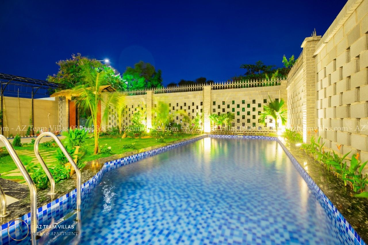 - Tiện Ích: Hồ bơi rộng 40m² nằm ngay trong khuôn viên villa, cùng với sân vườn thoáng mát và gara để xe, đảm bảo sự tiện nghi và thoải mái cho kỳ nghỉ của bạn.