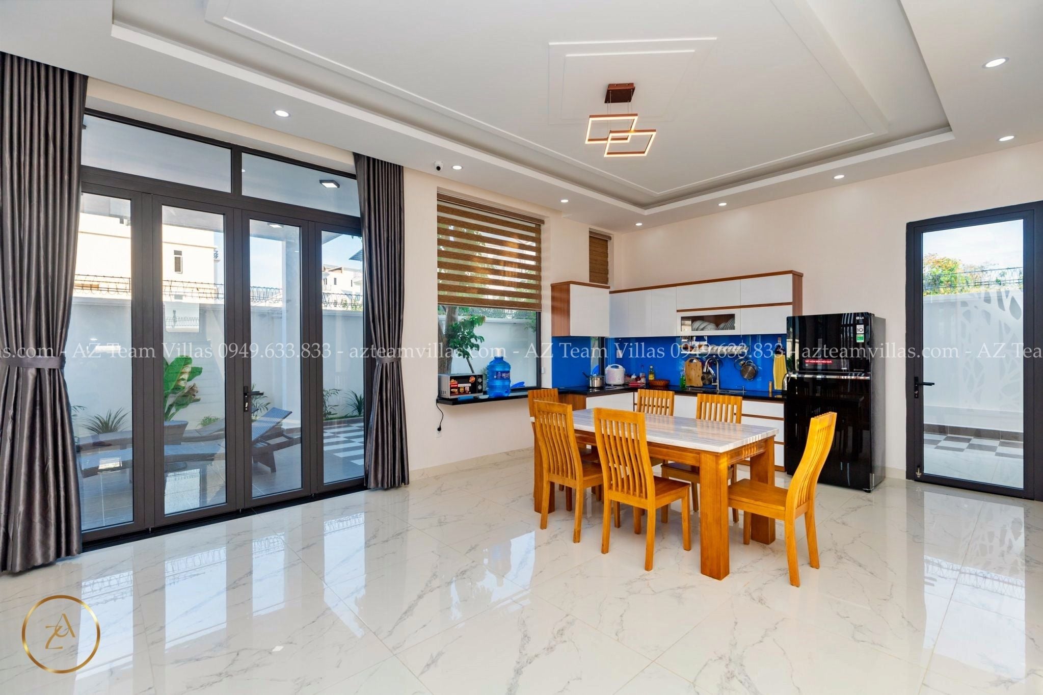 Villa với thiết kế tinh tế, hiện đại với 8 phòng ngủ phù hợp cho đoàn 15 - 30 khách. Villa nằm ở vị trí khu vực tổ hợp Villa Long Cung, gần bãi biển nên phù hợp để tổ chức team building, tiệc gia đình. Villa trang bị đầy đủ dụng cụ bếp, hồ bơi, hồ Jacuzzi, lò nướng BBQ để phục vụ quý khách.