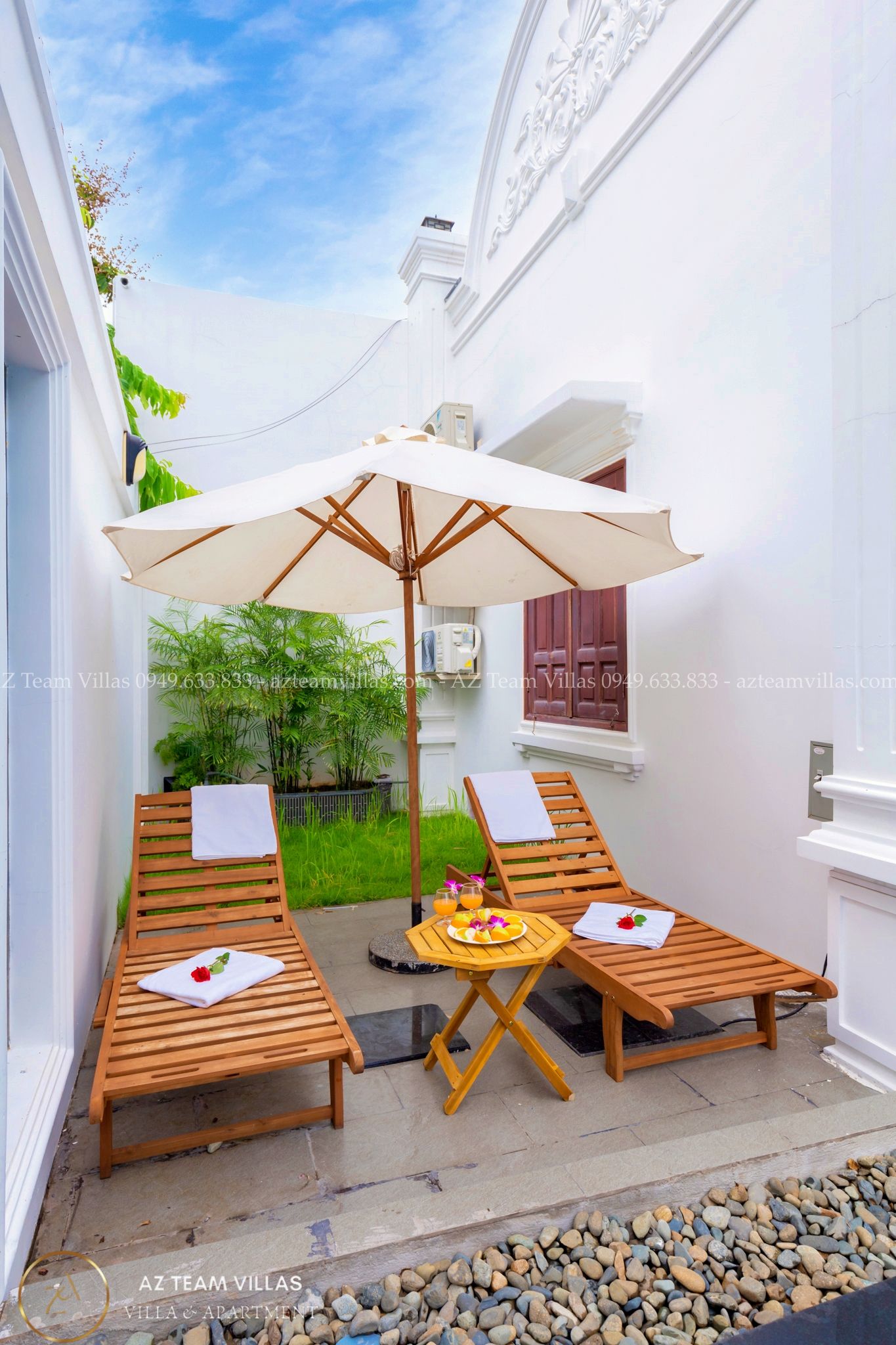 - Hồ bơi 40 m2 có ghế tắm nắng, dù che cỡ lớn