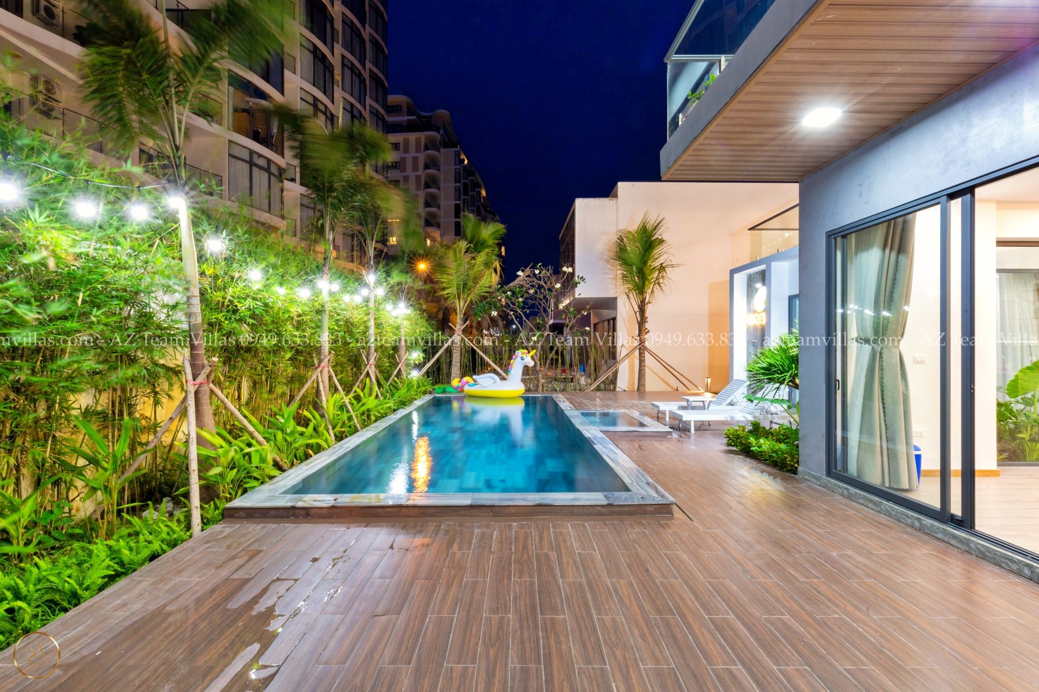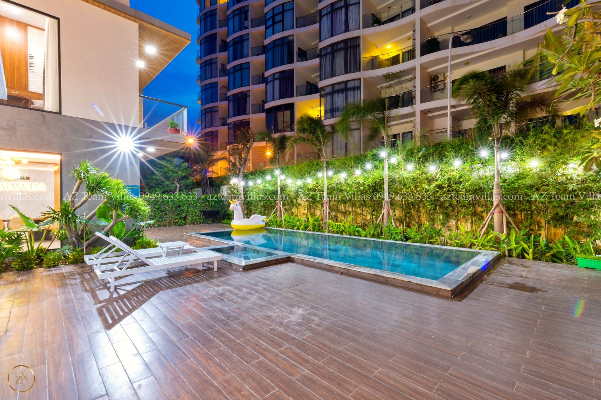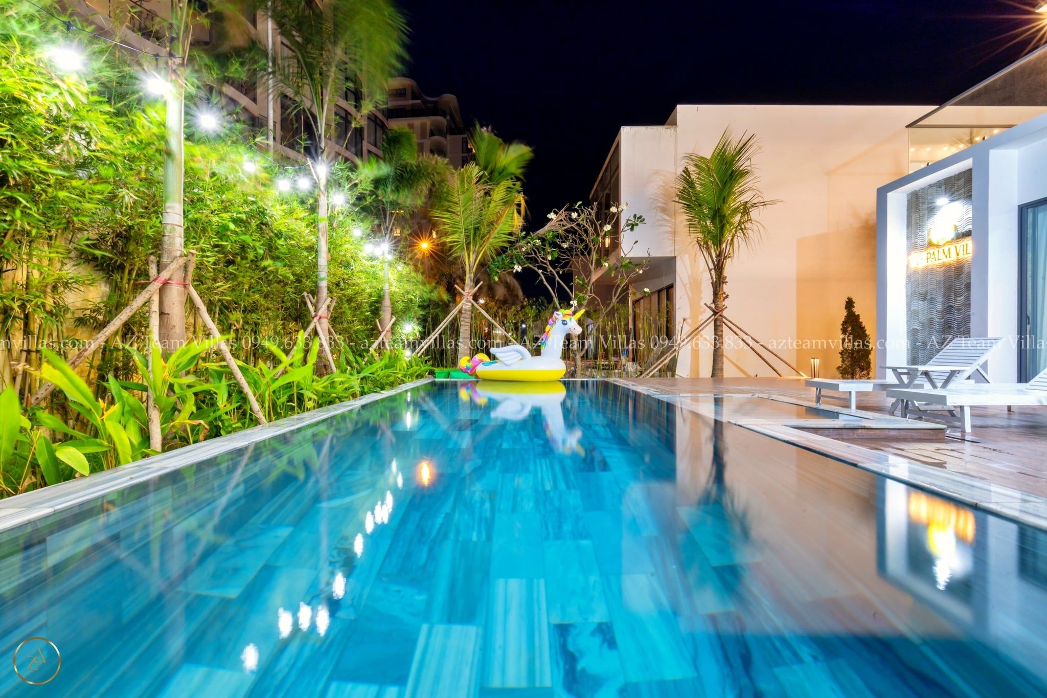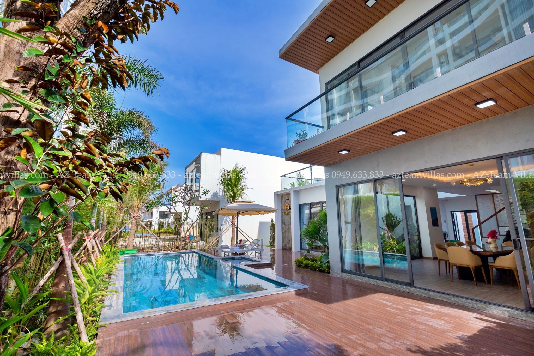 - Hồ bơi 40 m2 có ghế tắm nắng, dù che cỡ lớn