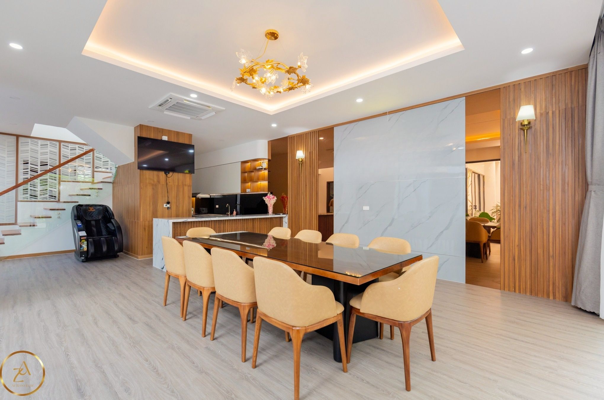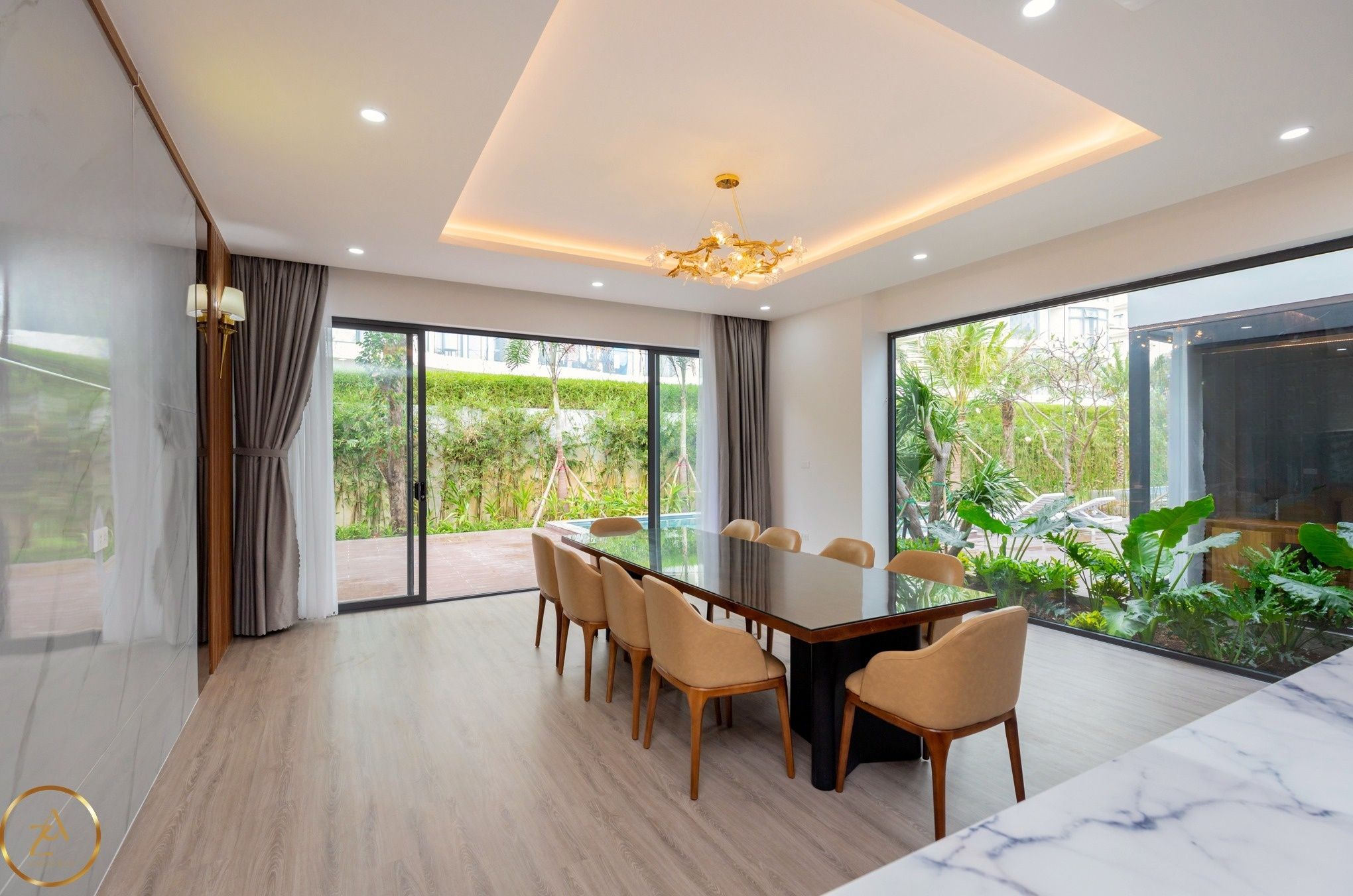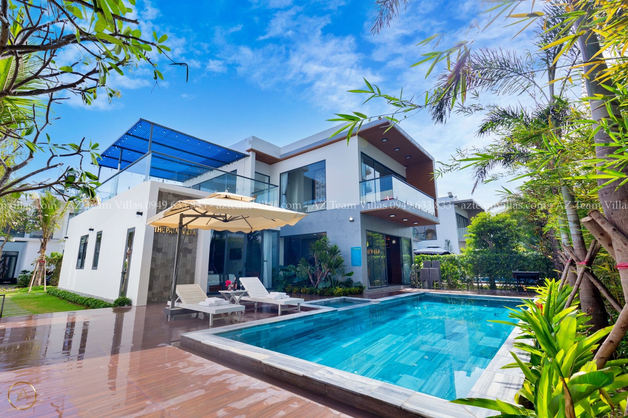 Là một biệt thự sang trọng và hiện đại, nằm trong khu nghỉ dưỡng cao cấp Aria Resort tại Vũng Tàu. Vị trí của villa là một ưu điểm lớn, vì nó nằm sát bãi biển Long Cung, một trong những bãi biển đẹp nhất Vũng Tàu. Từ villa, bạn chỉ cần đi bộ vài bước là có thể tận hưởng cảnh biển xanh mát, cát trắng mịn và nắng ấm áp. Bạn cũng có thể ngắm nhìn hoàng hôn tuyệt đẹp trên biển từ sân thượng của villa.