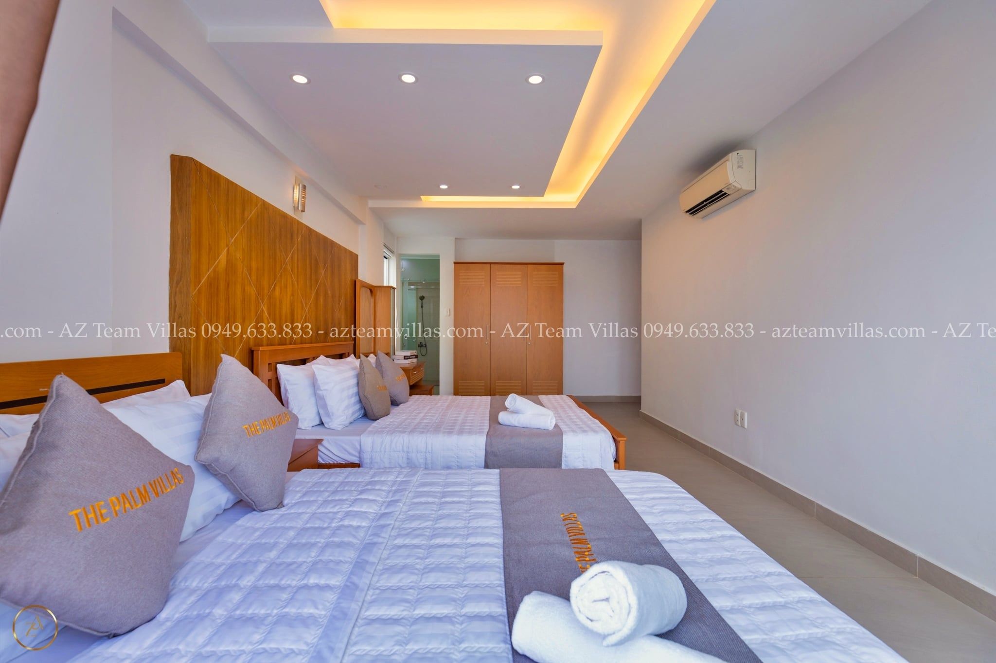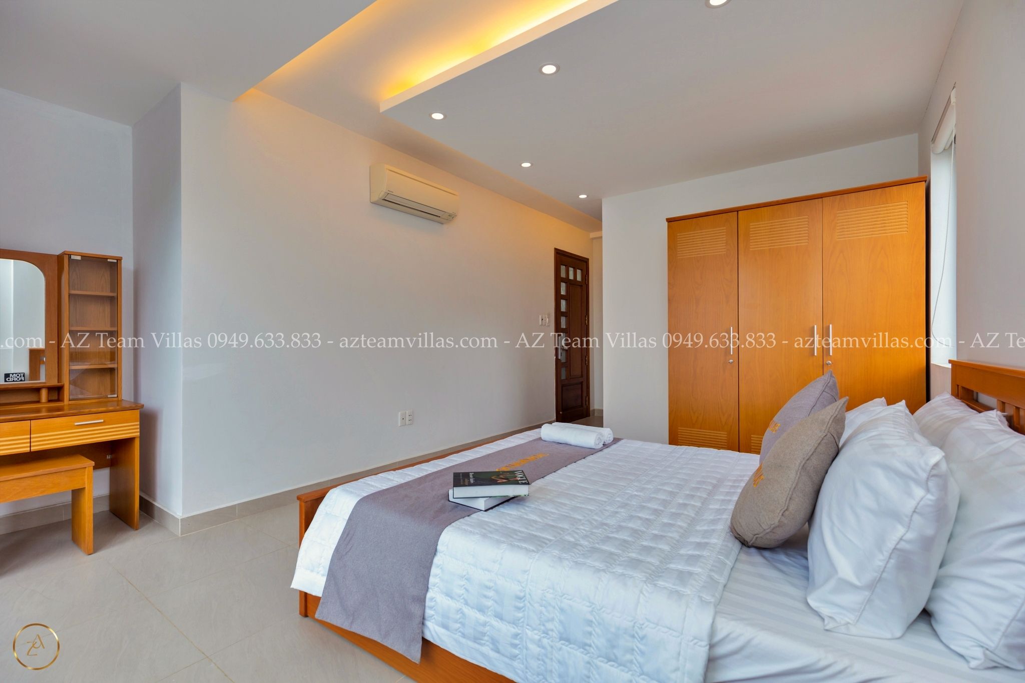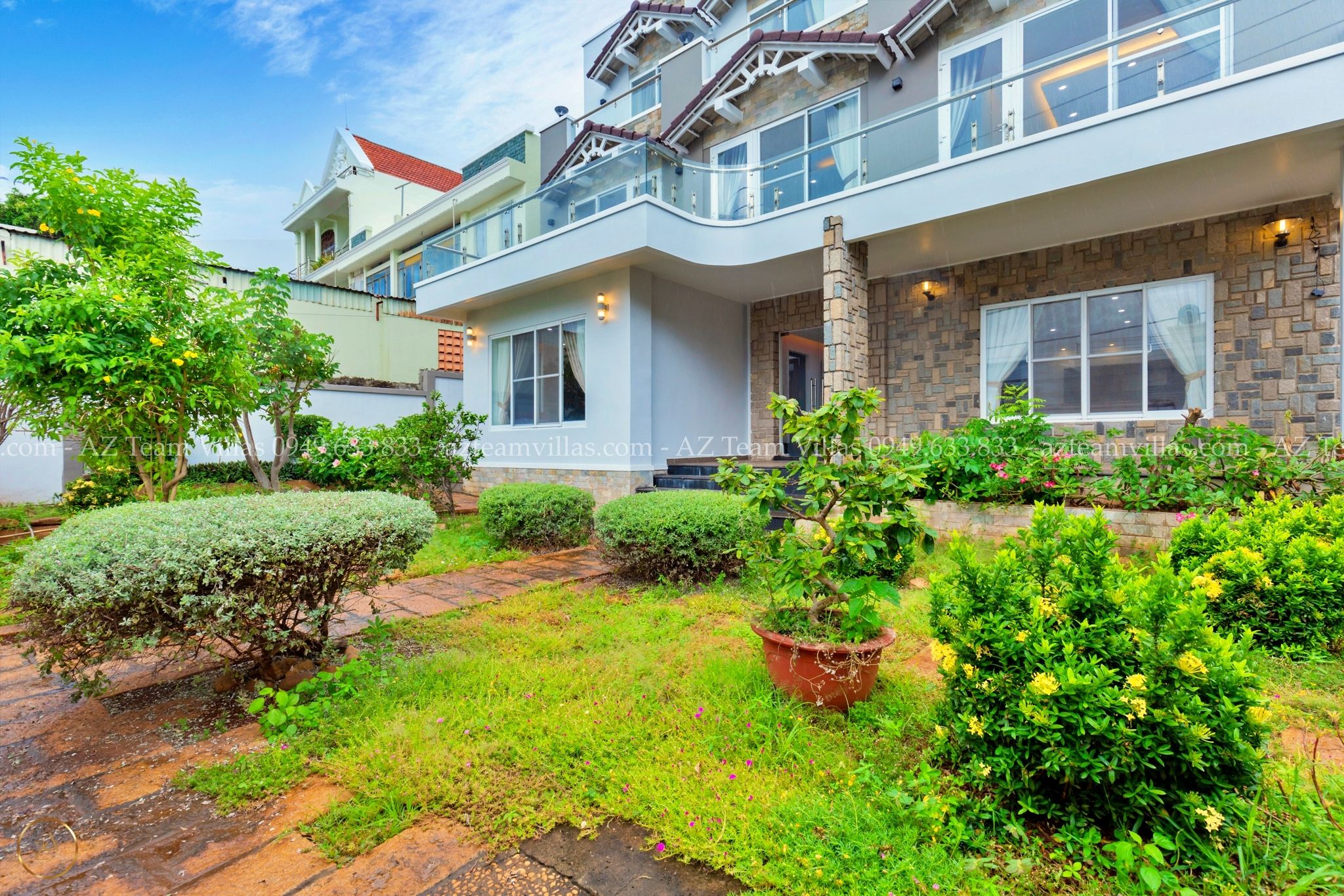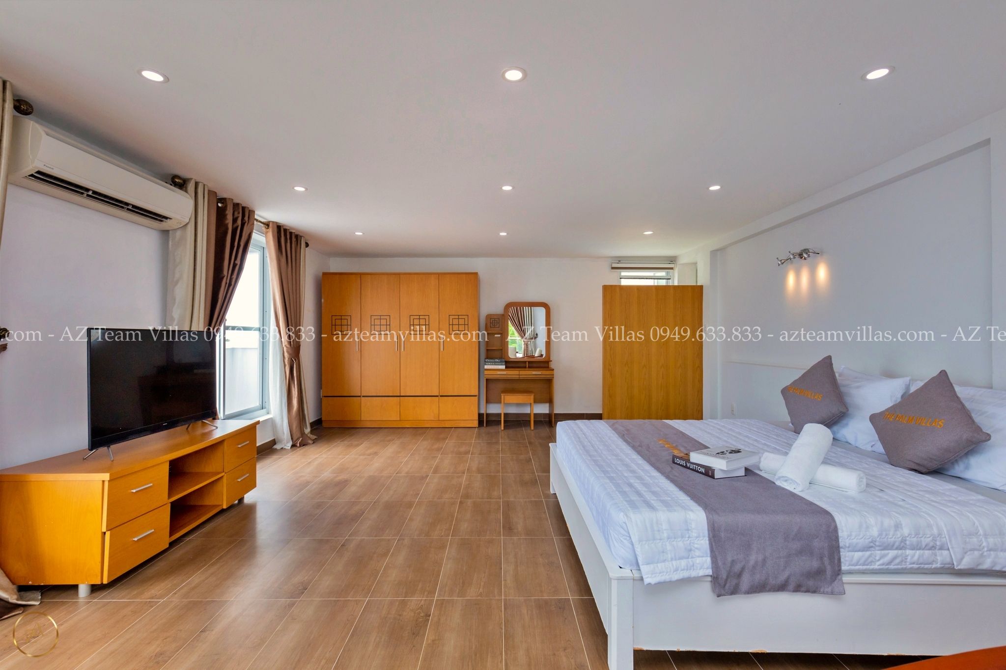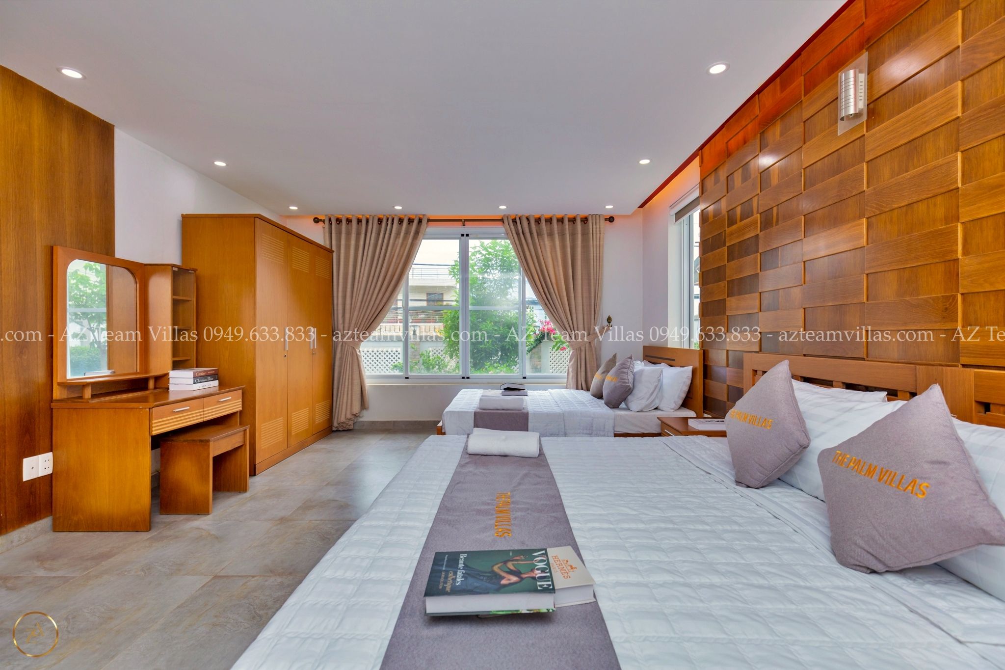 Là một biệt thự sang trọng và hiện đại, nằm ngay sát bãi biển Bãi Dâu, Vũng Tàu. Biệt thự có diện tích 450 m2, gồm 5 phòng ngủ, 6 nhà vệ sinh, phòng khách, nhà bếp và sân hiên. Mỗi phòng ngủ đều có giường đôi cực lớn, máy lạnh, tivi và phòng tắm riêng. Phòng khách rộng rãi và thoáng mát, có sofa, bàn ăn và cửa sổ lớn nhìn ra hồ bơi và biển. Nhà bếp được trang bị đầy đủ tiện nghi như tủ lạnh, bếp điện, lò vi sóng và máy pha cà phê. Sân hiên là nơi lý tưởng để thư giãn và thưởng thức không khí biển, có ghế đẩu, bàn ghế và máy nướng BBQ. Biệt thự còn có hồ bơi riêng rộng 50 m2, nằm trong khuôn viên xanh mát và yên tĩnh. Từ biệt thự, chỉ cần đi bộ vài bước là đến được bãi biển Bãi Dâu, nơi có cát trắng mịn và nước trong xanh. Đây là sự lựa chọn hoàn hảo cho những ai muốn tận hưởng kỳ nghỉ sang trọng và thoải mái tại Vũng Tàu.