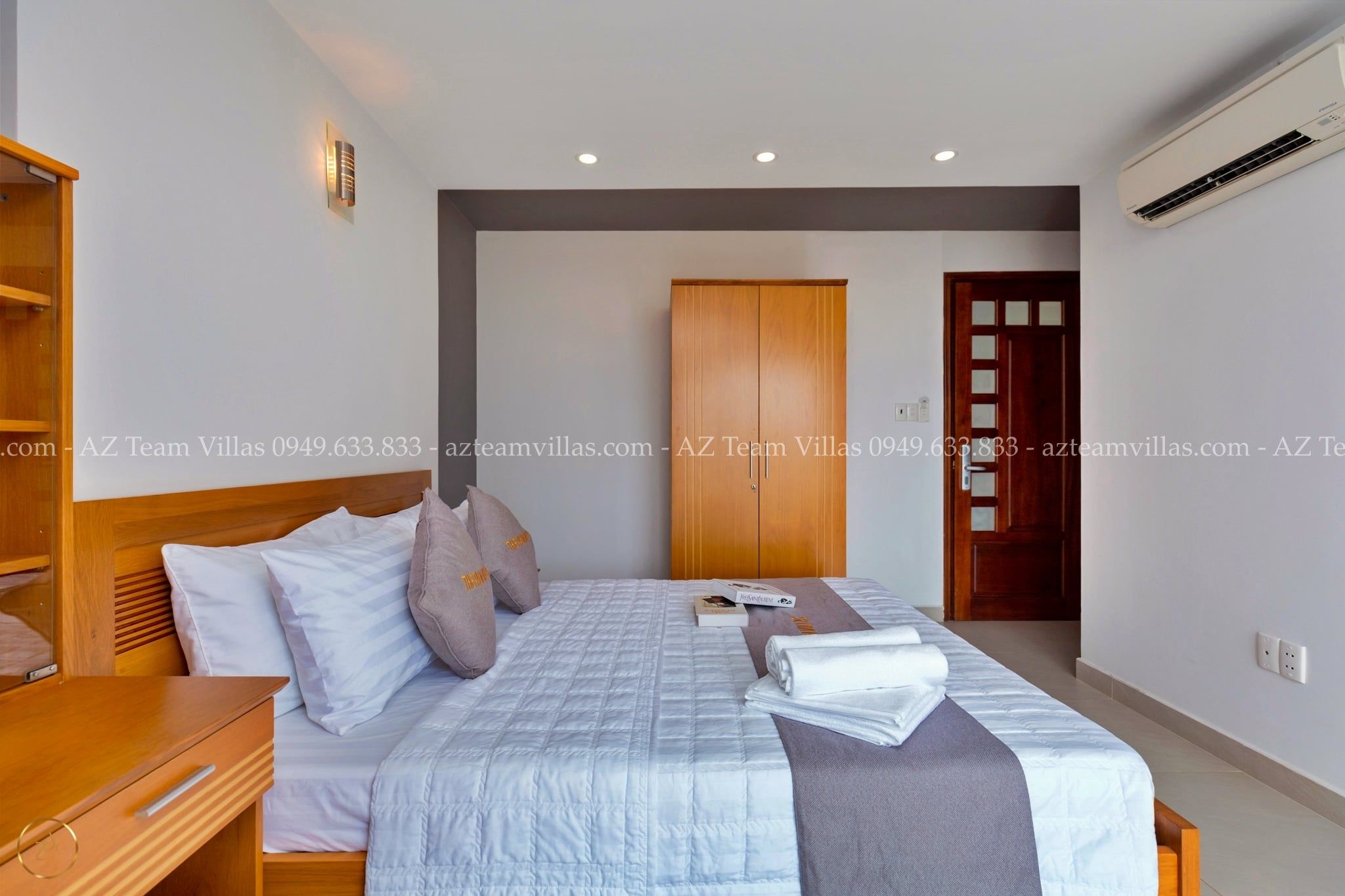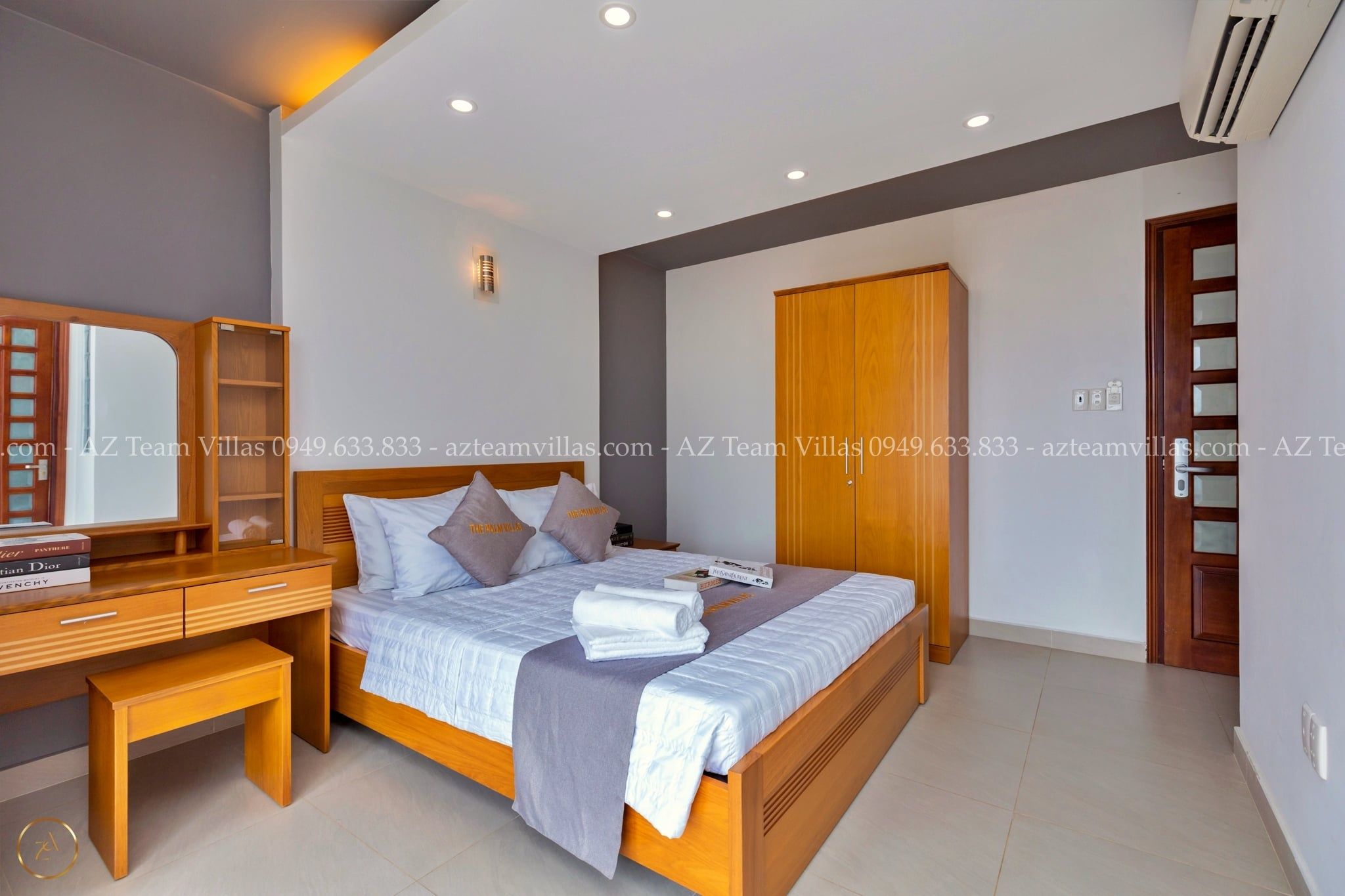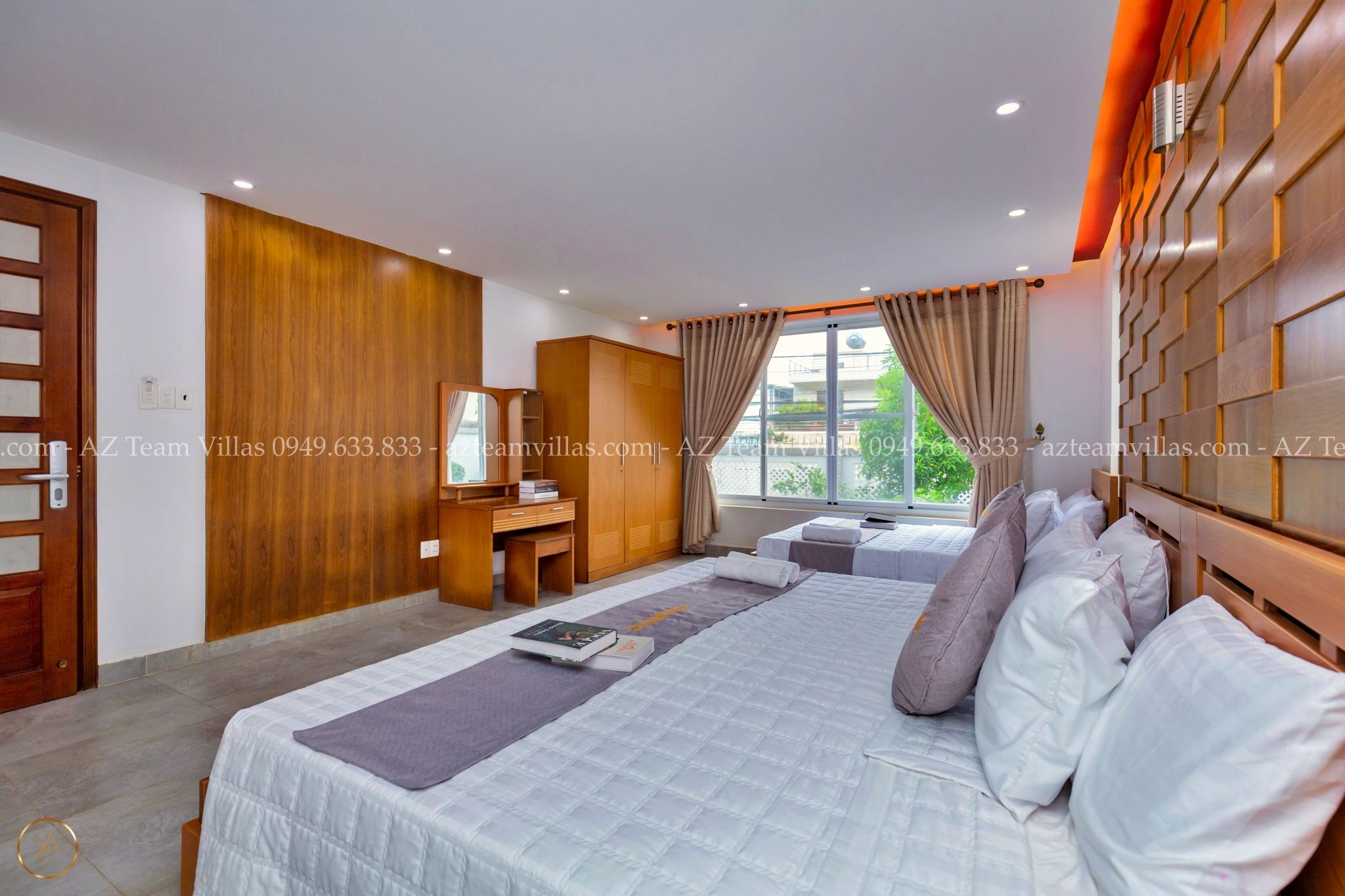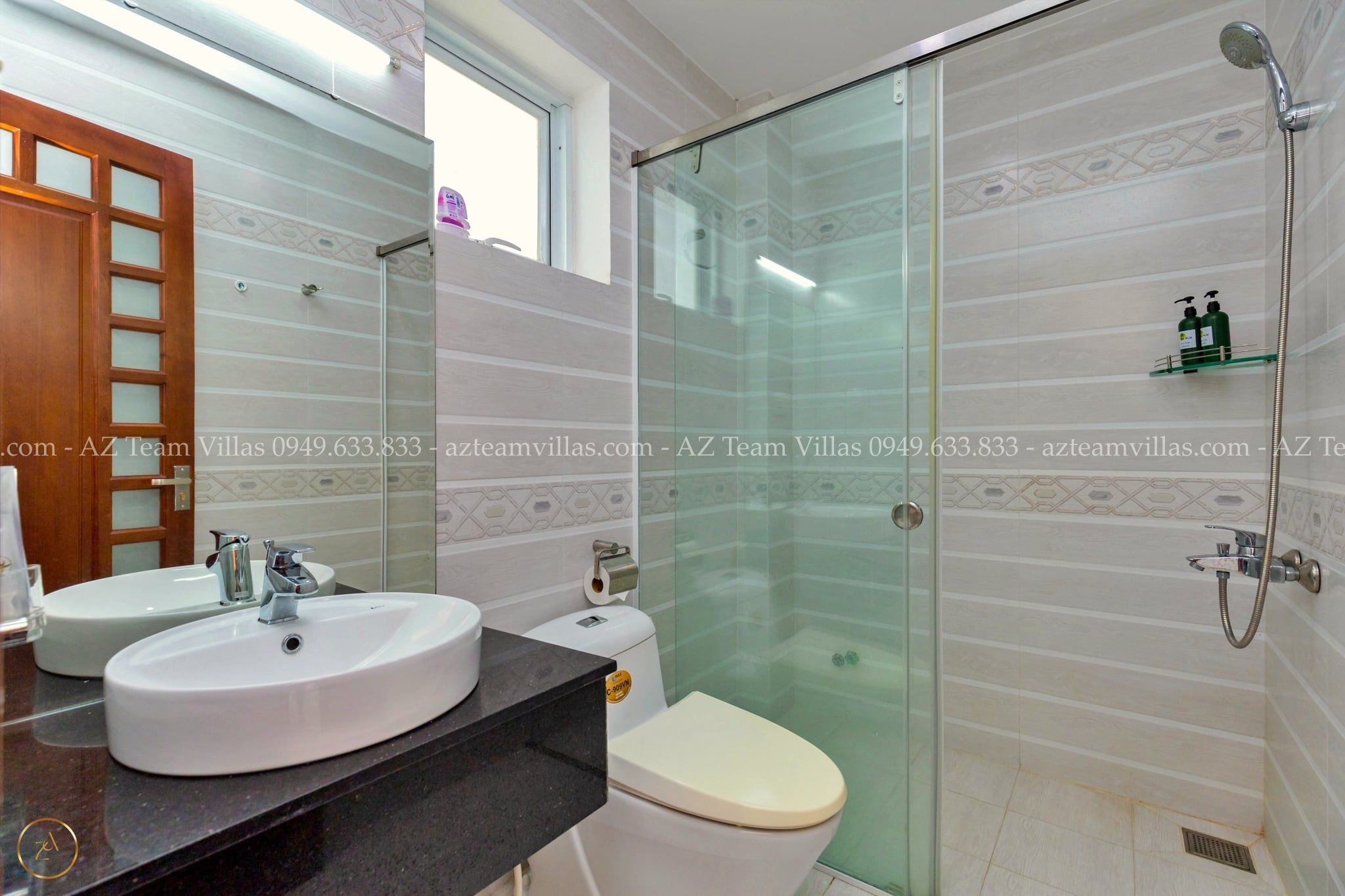 Là một biệt thự sang trọng và hiện đại, nằm ngay sát bãi biển Bãi Dâu, Vũng Tàu. Biệt thự có diện tích 450 m2, gồm 5 phòng ngủ, 6 nhà vệ sinh, phòng khách, nhà bếp và sân hiên. Mỗi phòng ngủ đều có giường đôi cực lớn, máy lạnh, tivi và phòng tắm riêng. Phòng khách rộng rãi và thoáng mát, có sofa, bàn ăn và cửa sổ lớn nhìn ra hồ bơi và biển. Nhà bếp được trang bị đầy đủ tiện nghi như tủ lạnh, bếp điện, lò vi sóng và máy pha cà phê. Sân hiên là nơi lý tưởng để thư giãn và thưởng thức không khí biển, có ghế đẩu, bàn ghế và máy nướng BBQ. Biệt thự còn có hồ bơi riêng rộng 50 m2, nằm trong khuôn viên xanh mát và yên tĩnh. Từ biệt thự, chỉ cần đi bộ vài bước là đến được bãi biển Bãi Dâu, nơi có cát trắng mịn và nước trong xanh. Đây là sự lựa chọn hoàn hảo cho những ai muốn tận hưởng kỳ nghỉ sang trọng và thoải mái tại Vũng Tàu.