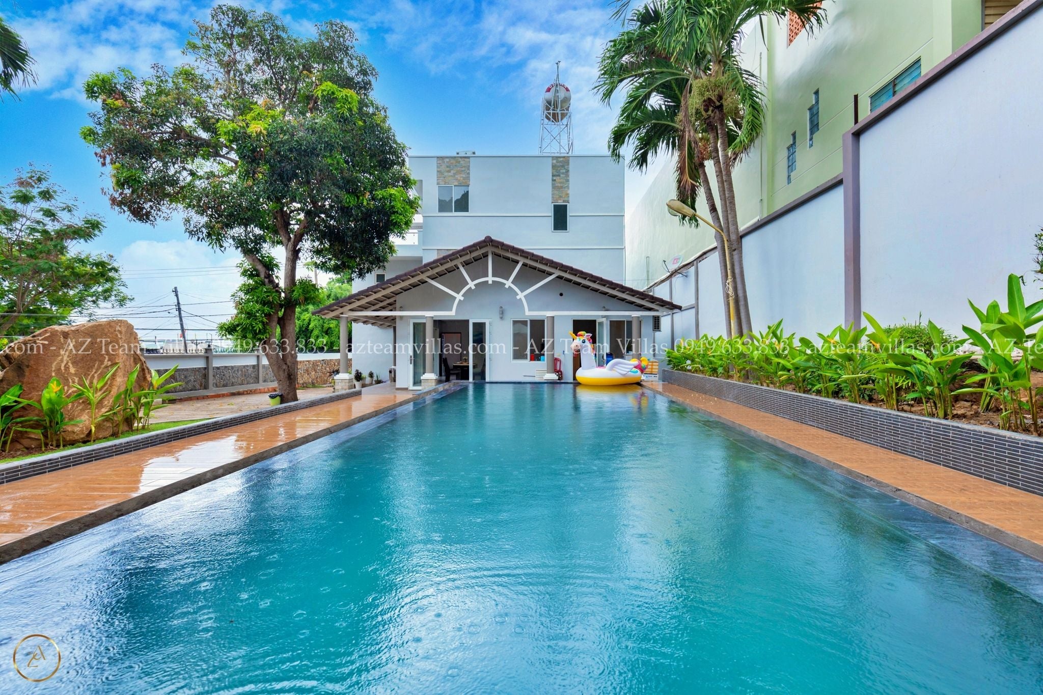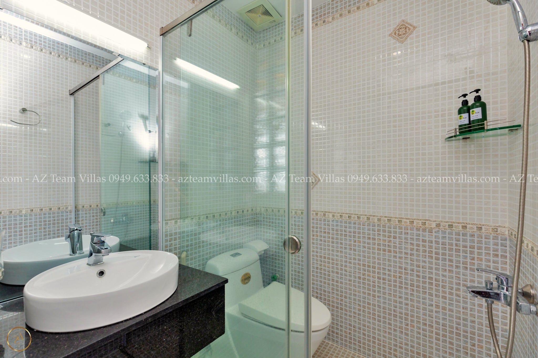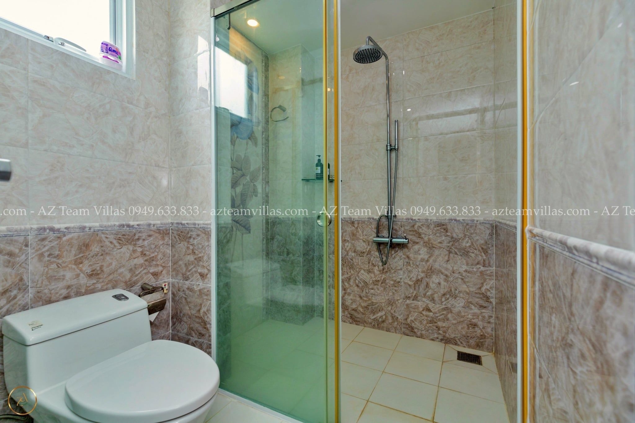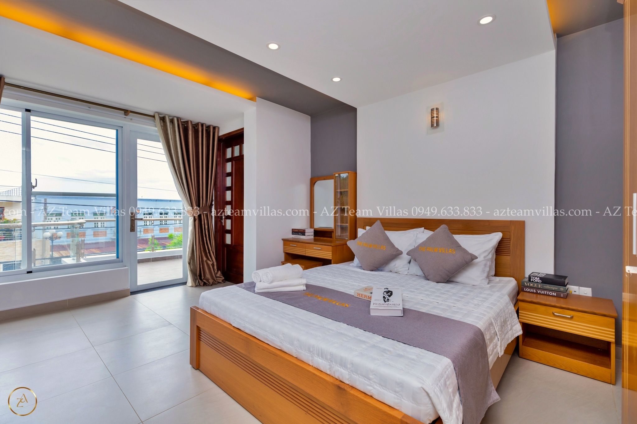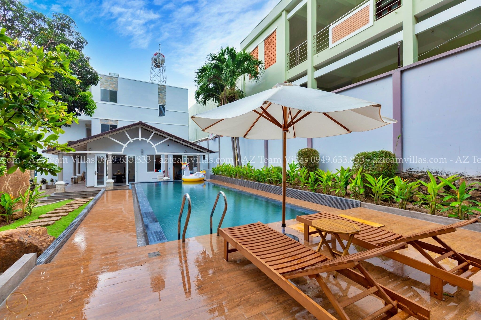 Là một biệt thự sang trọng và hiện đại, nằm ngay sát bãi biển Bãi Dâu, Vũng Tàu. Biệt thự có diện tích 450 m2, gồm 5 phòng ngủ, 6 nhà vệ sinh, phòng khách, nhà bếp và sân hiên. Mỗi phòng ngủ đều có giường đôi cực lớn, máy lạnh, tivi và phòng tắm riêng. Phòng khách rộng rãi và thoáng mát, có sofa, bàn ăn và cửa sổ lớn nhìn ra hồ bơi và biển. Nhà bếp được trang bị đầy đủ tiện nghi như tủ lạnh, bếp điện, lò vi sóng và máy pha cà phê. Sân hiên là nơi lý tưởng để thư giãn và thưởng thức không khí biển, có ghế đẩu, bàn ghế và máy nướng BBQ. Biệt thự còn có hồ bơi riêng rộng 50 m2, nằm trong khuôn viên xanh mát và yên tĩnh. Từ biệt thự, chỉ cần đi bộ vài bước là đến được bãi biển Bãi Dâu, nơi có cát trắng mịn và nước trong xanh. Đây là sự lựa chọn hoàn hảo cho những ai muốn tận hưởng kỳ nghỉ sang trọng và thoải mái tại Vũng Tàu.