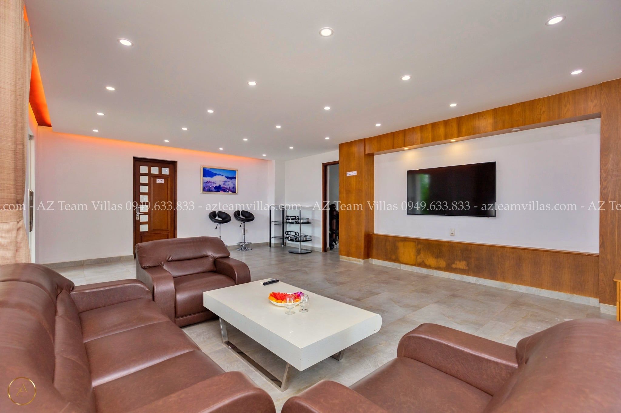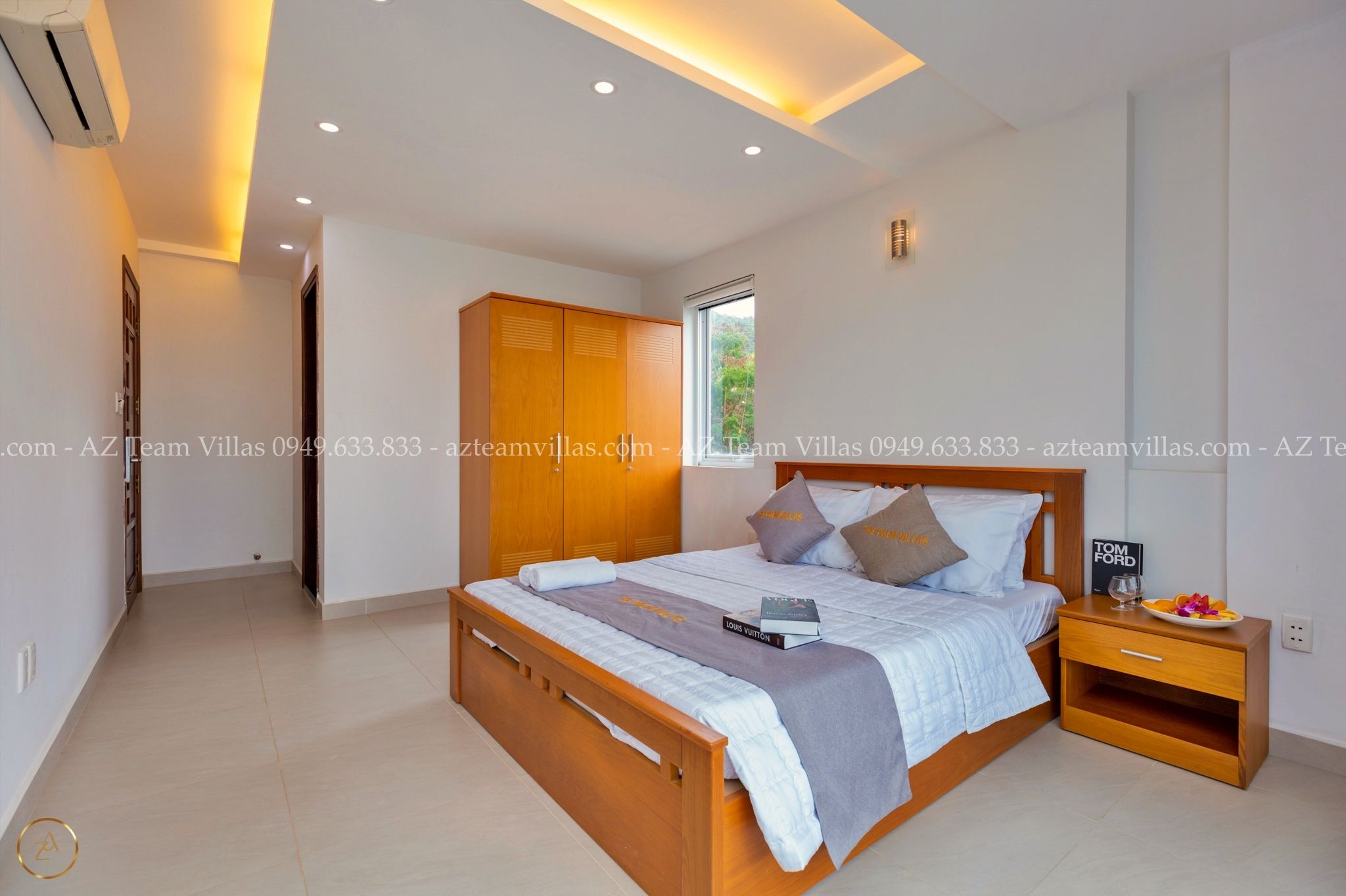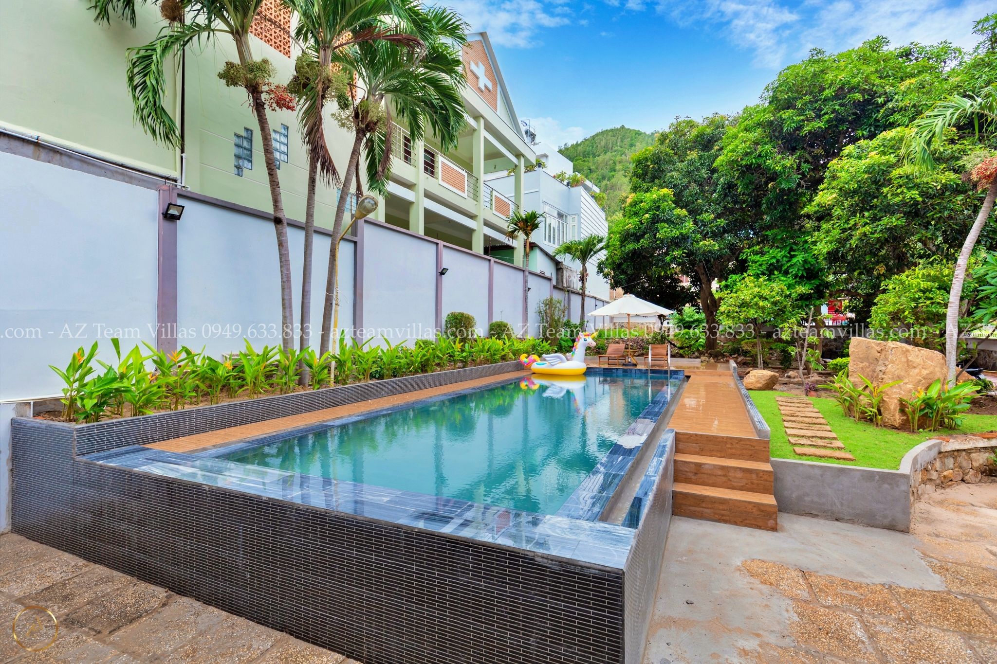 Tọa lạc tại khu vực biển Bãi Dâu, Căn villa này là một ngôi nhà nghỉ dưỡng cao cấp và đẳng cấp. Villa có tổng diện tích 900 m2, bao gồm 6 phòng ngủ, 7 nhà vệ sinh, phòng khách, nhà bếp và sân hiên. Phòng ngủ đều rộng rãi và tiện nghi, có giường đôi to, máy lạnh, tivi và phòng tắm riêng. Phòng khách có không gian mở và thoáng đãng, có sofa hướng ra biển. Ngoài ra Villa còn có hồ bơi, bãi biển riêng biệt, phòng karaoke, Sân tổ chức tiệc BBQ...