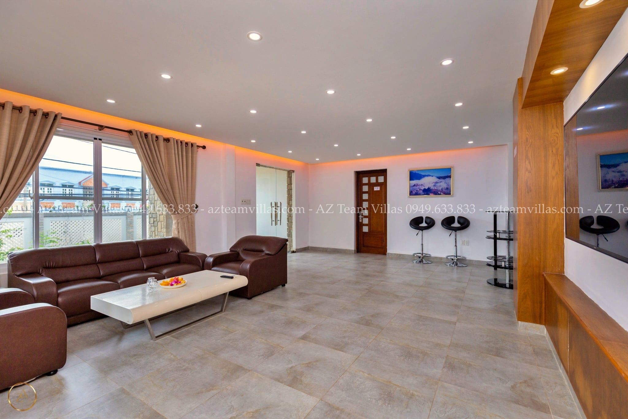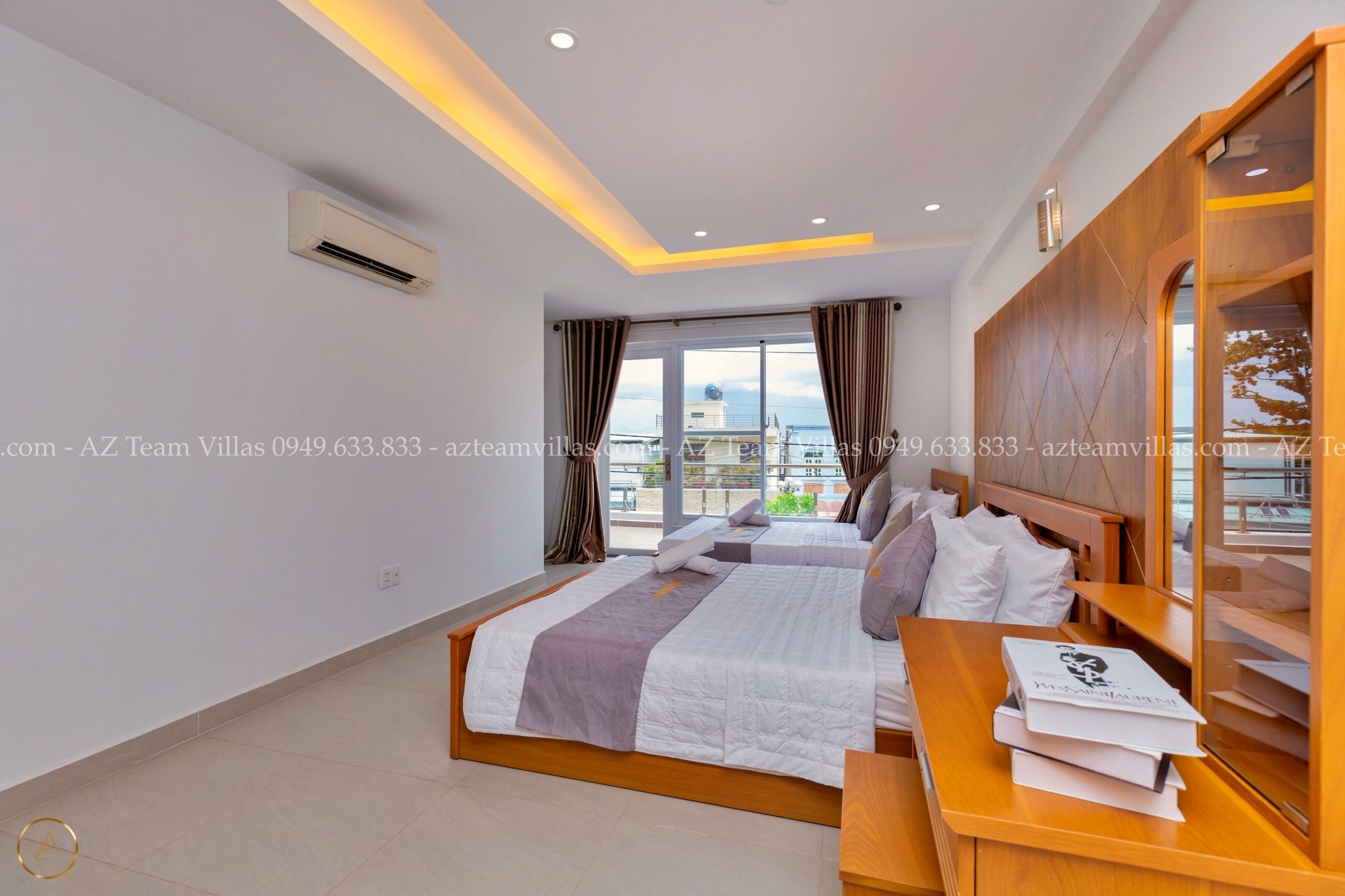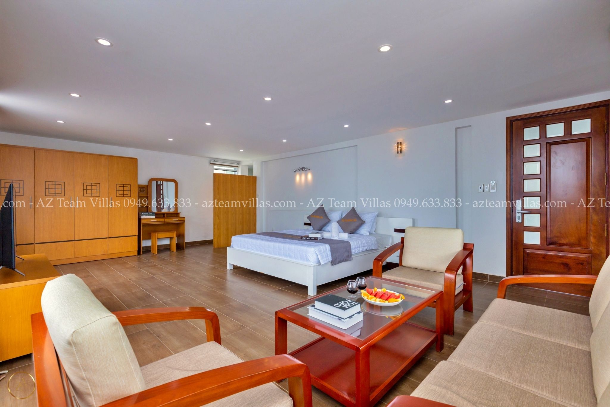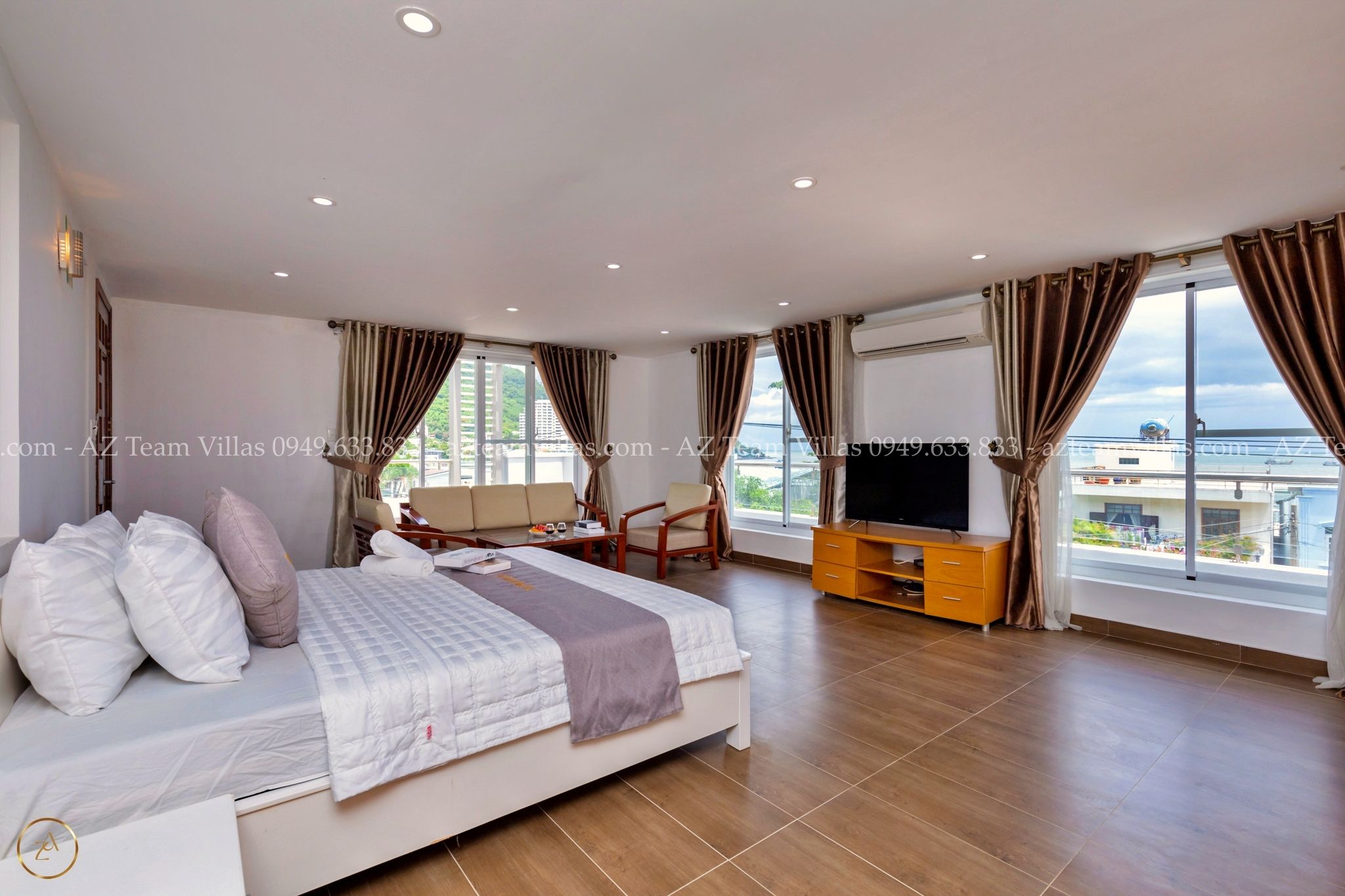 Tọa lạc tại khu vực biển Bãi Dâu, Căn villa này là một ngôi nhà nghỉ dưỡng cao cấp và đẳng cấp. Villa có tổng diện tích 900 m2, bao gồm 6 phòng ngủ, 7 nhà vệ sinh, phòng khách, nhà bếp và sân hiên. Phòng ngủ đều rộng rãi và tiện nghi, có giường đôi to, máy lạnh, tivi và phòng tắm riêng. Phòng khách có không gian mở và thoáng đãng, có sofa hướng ra biển. Ngoài ra Villa còn có hồ bơi, bãi biển riêng biệt, phòng karaoke, Sân tổ chức tiệc BBQ...