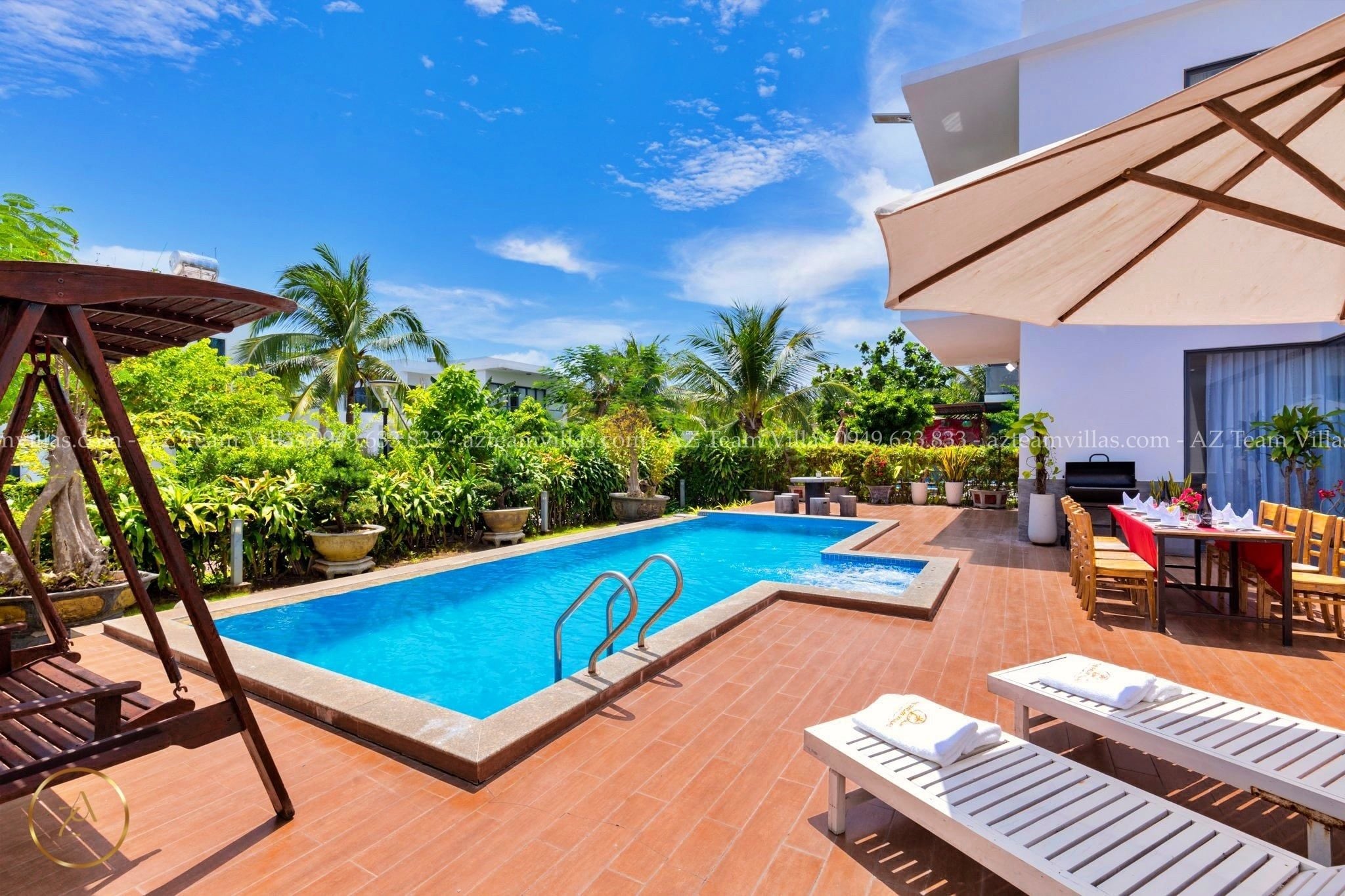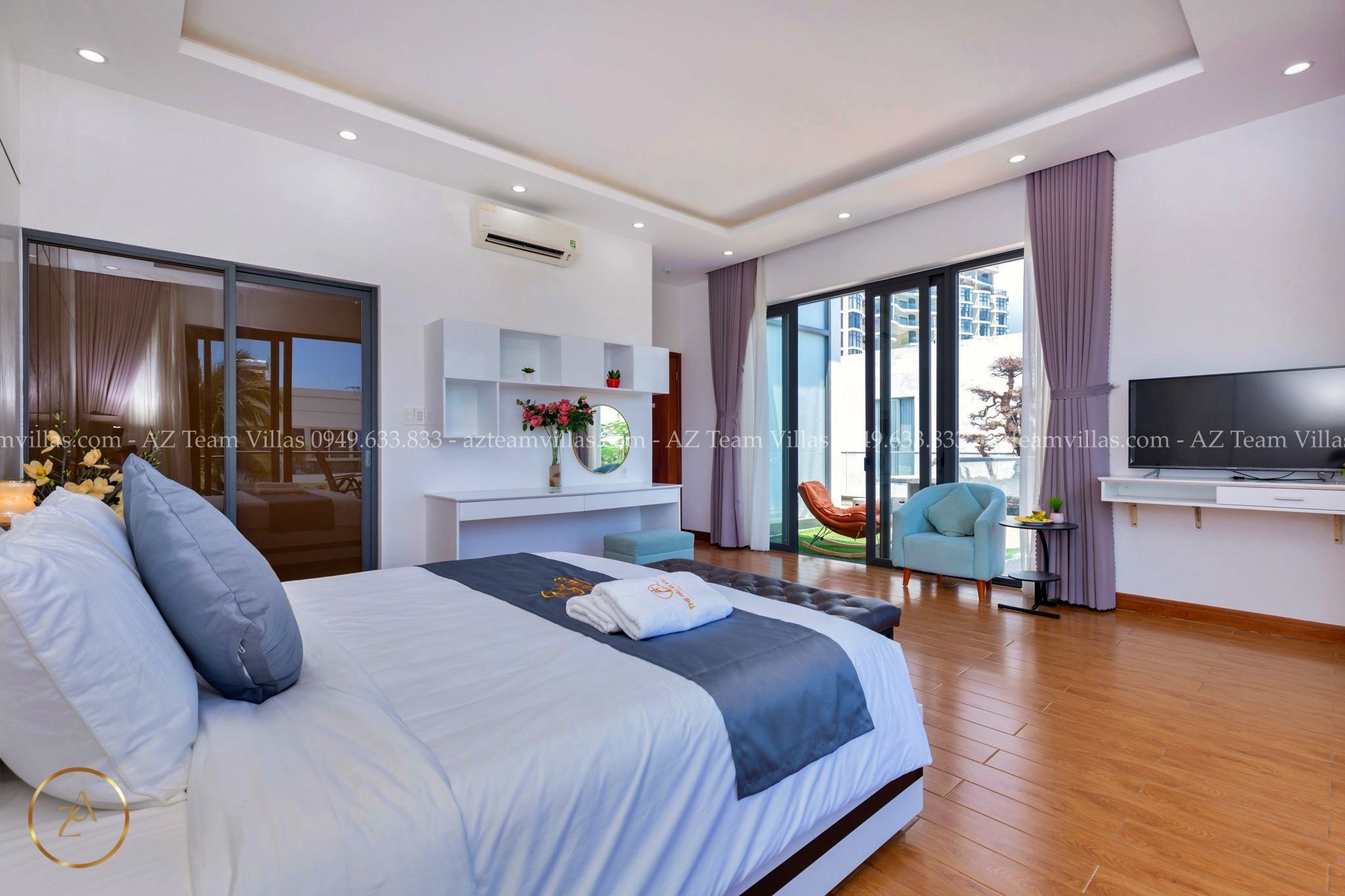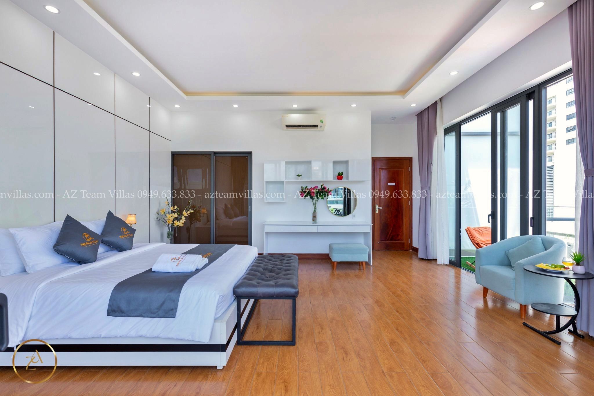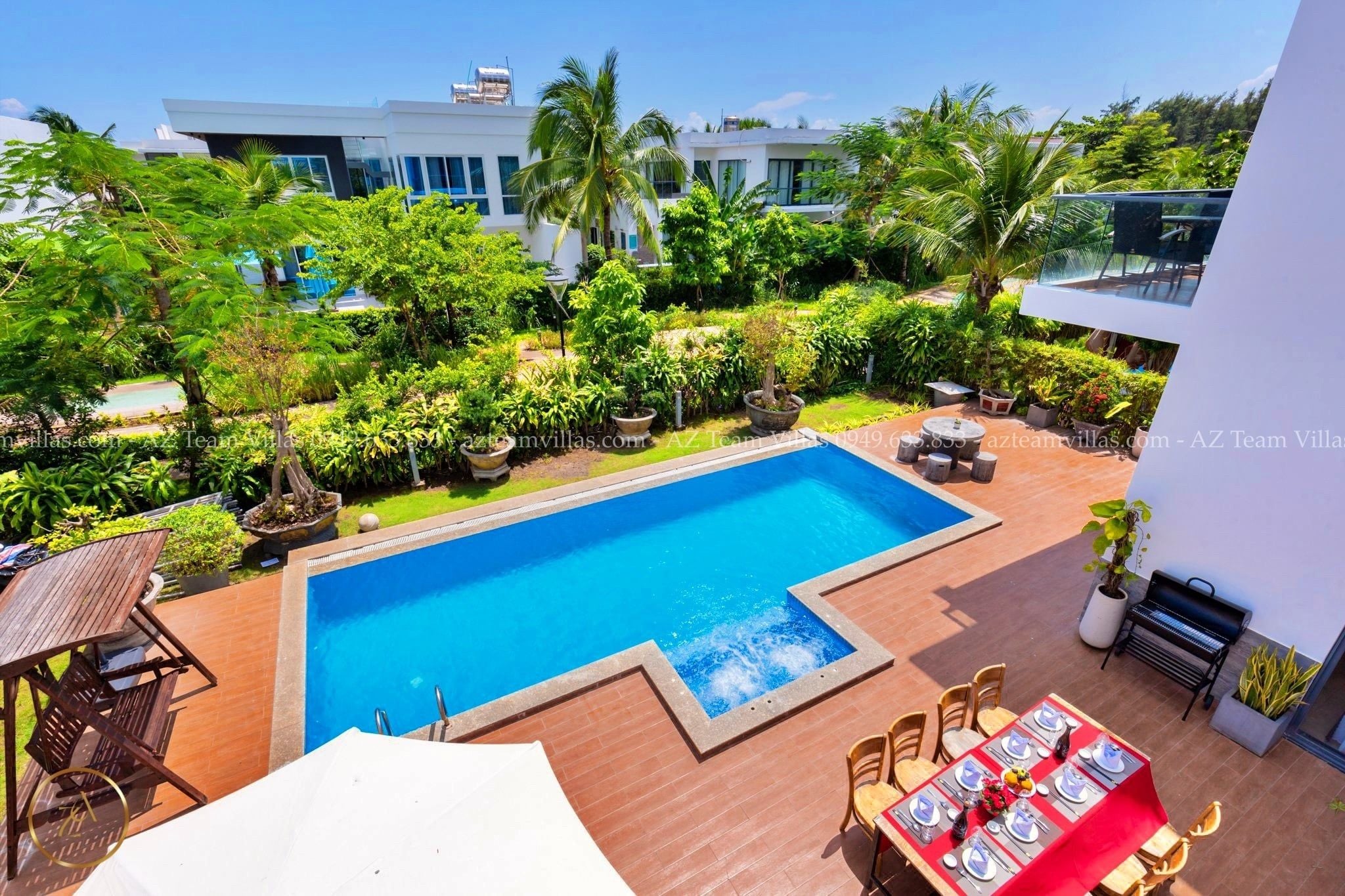 Là một biệt thự sang trọng và hiện đại, nằm trong khu nghỉ dưỡng cao cấp Aria Resort tại Vũng Tàu. Vị trí của villa là một ưu điểm lớn, vì nó nằm sát bãi biển Long Cung, một trong những bãi biển đẹp nhất Vũng Tàu. Từ villa, bạn chỉ cần đi bộ vài bước là có thể tận hưởng cảnh biển xanh mát, cát trắng mịn và nắng ấm áp. Bạn cũng có thể ngắm nhìn hoàng hôn tuyệt đẹp trên biển từ sân thượng của villa.