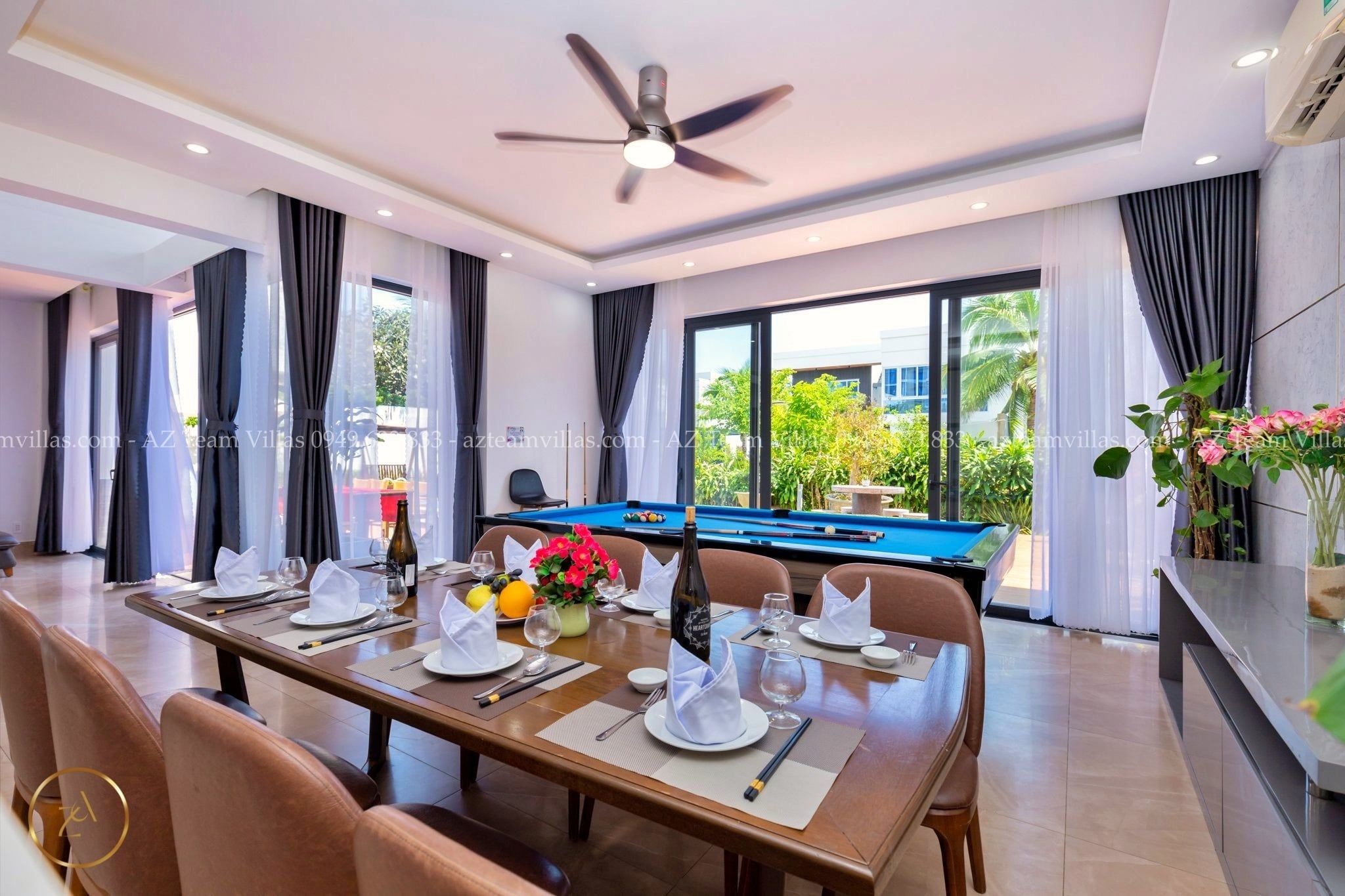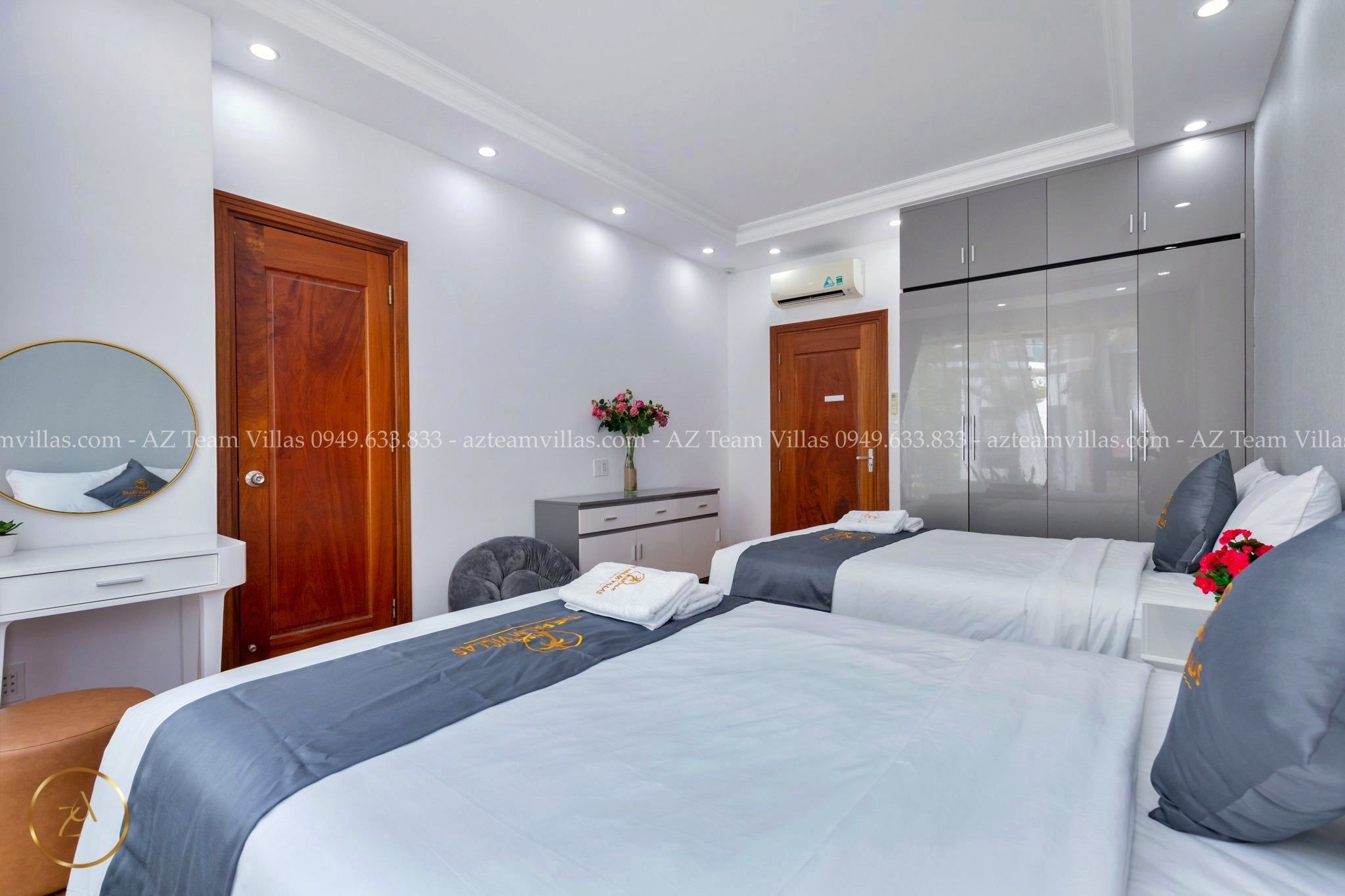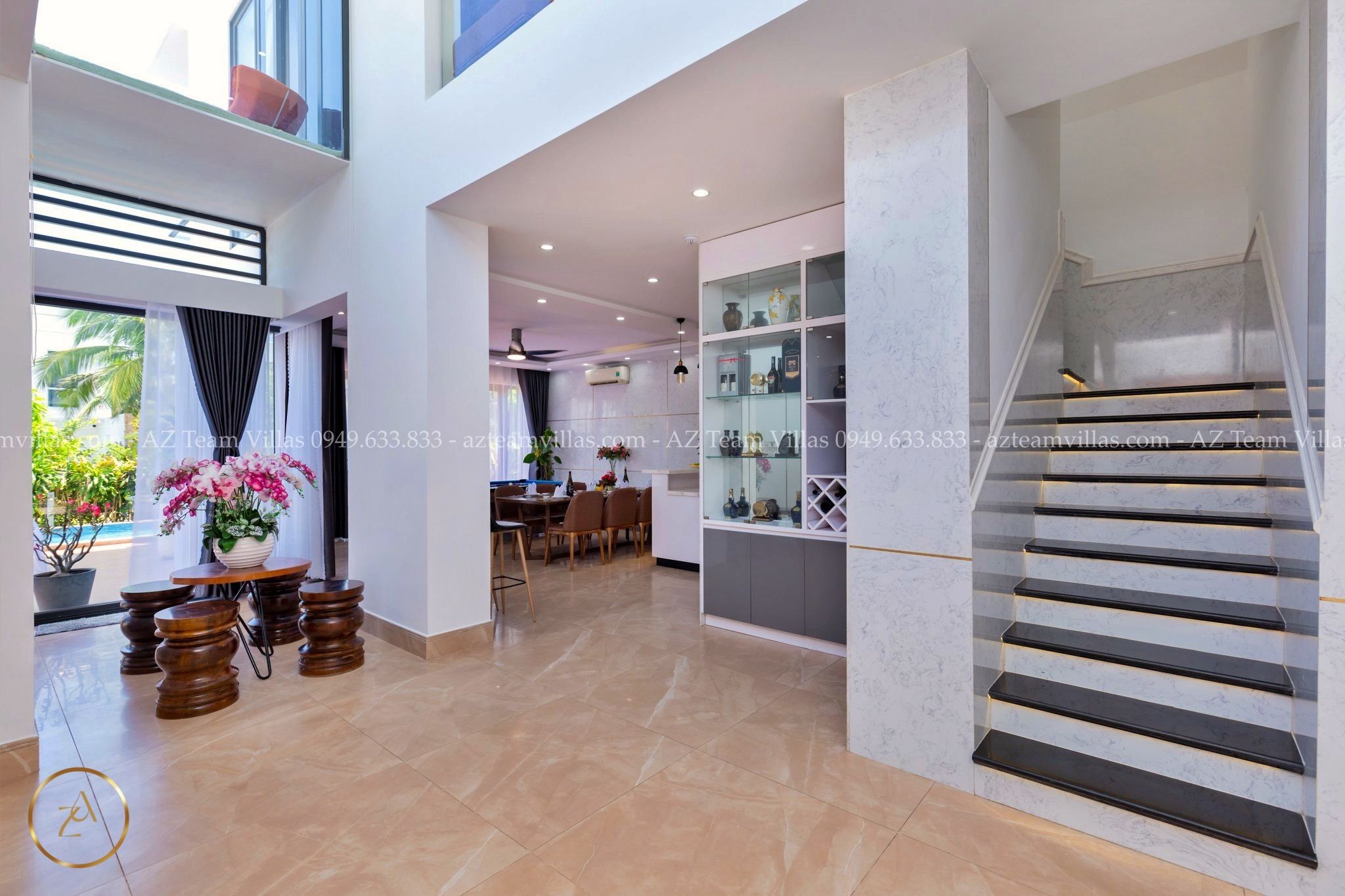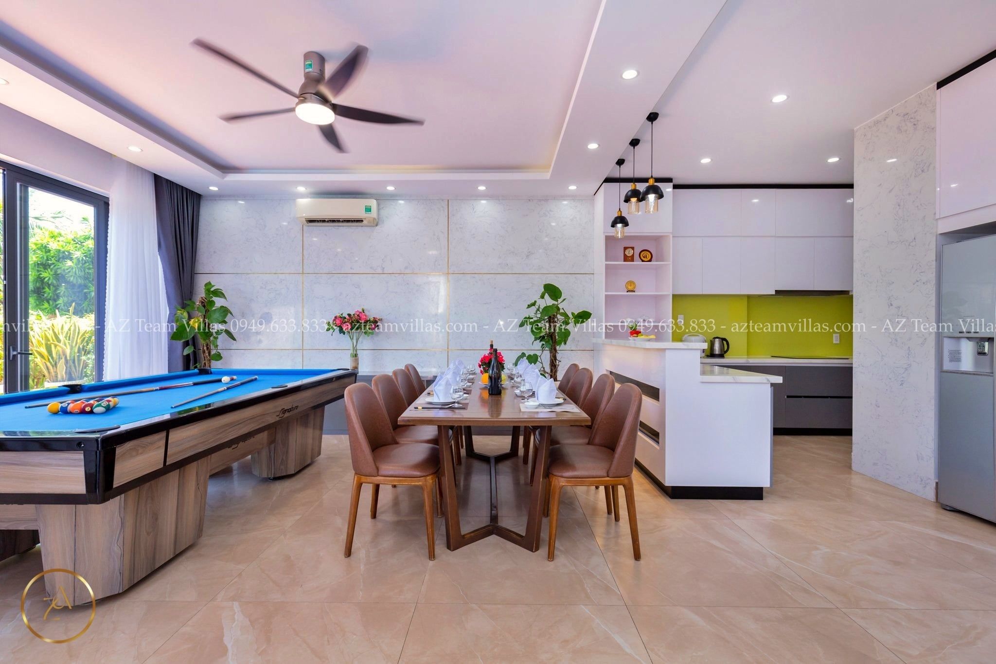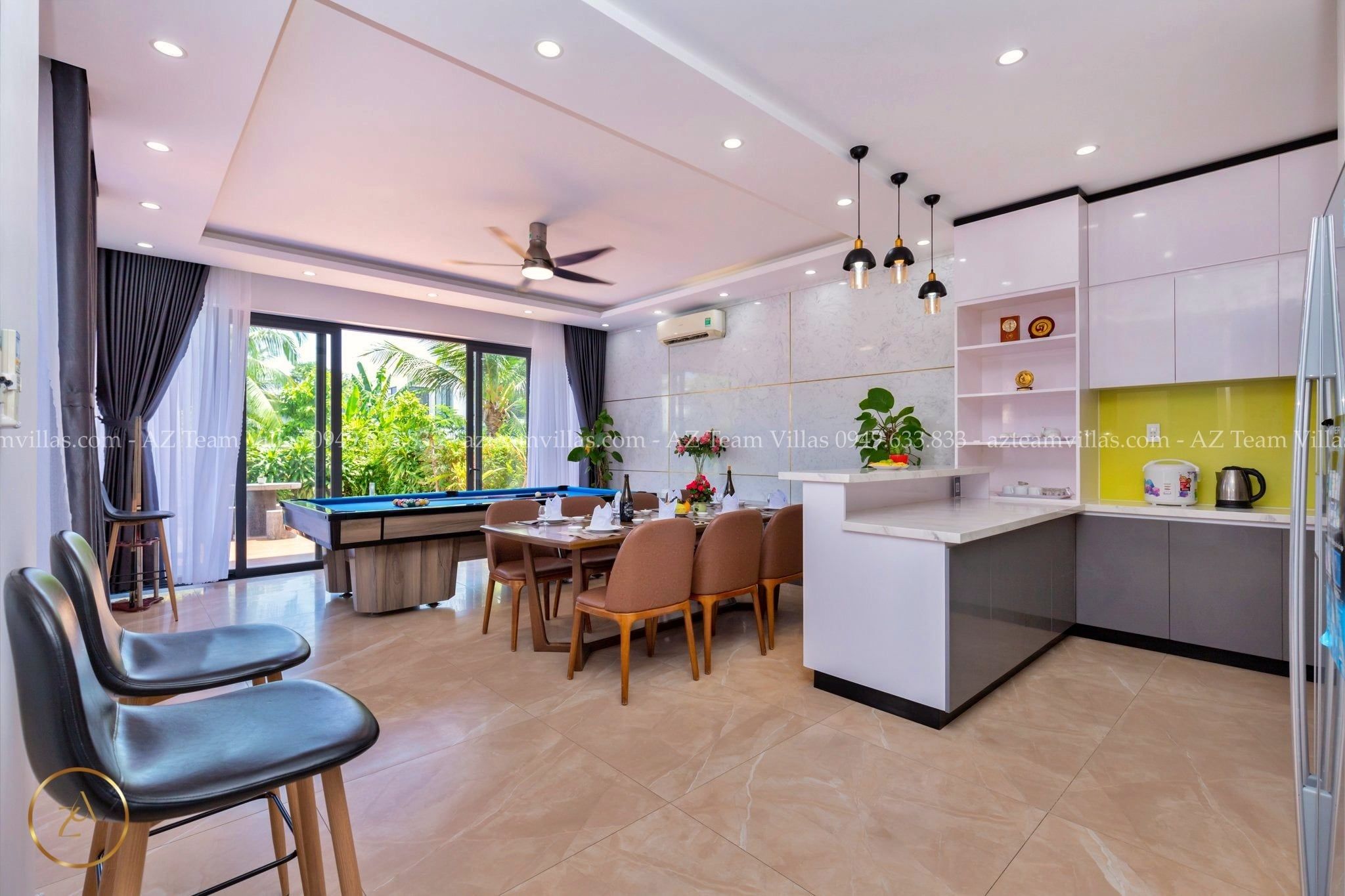 Là một biệt thự sang trọng và hiện đại, nằm trong khu nghỉ dưỡng cao cấp Aria Resort tại Vũng Tàu. Vị trí của villa là một ưu điểm lớn, vì nó nằm sát bãi biển Long Cung, một trong những bãi biển đẹp nhất Vũng Tàu. Từ villa, bạn chỉ cần đi bộ vài bước là có thể tận hưởng cảnh biển xanh mát, cát trắng mịn và nắng ấm áp. Bạn cũng có thể ngắm nhìn hoàng hôn tuyệt đẹp trên biển từ sân thượng của villa.