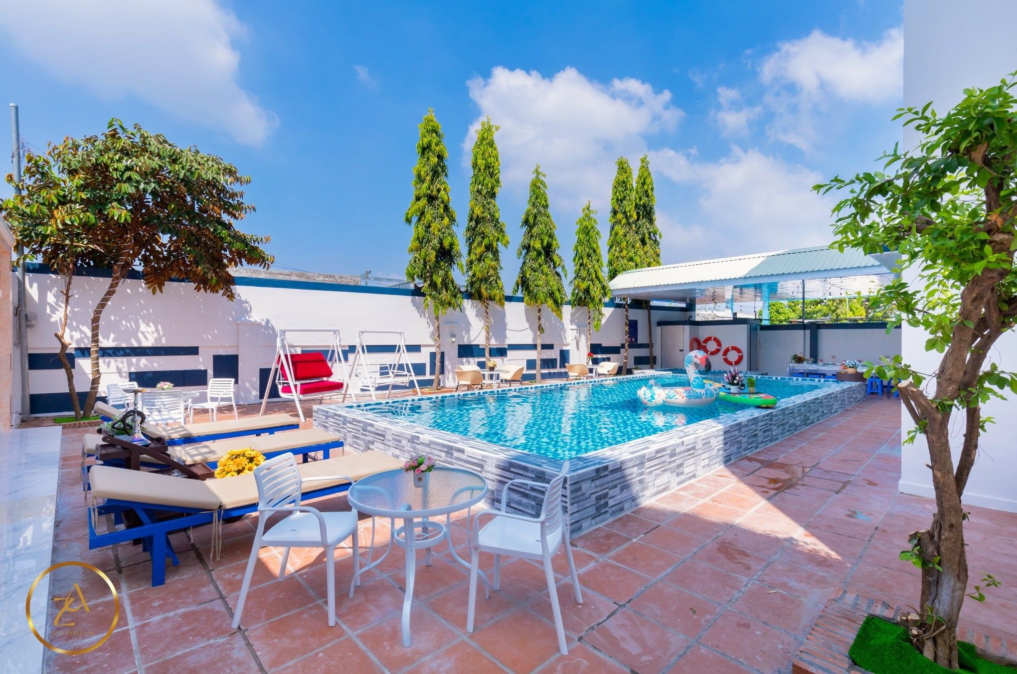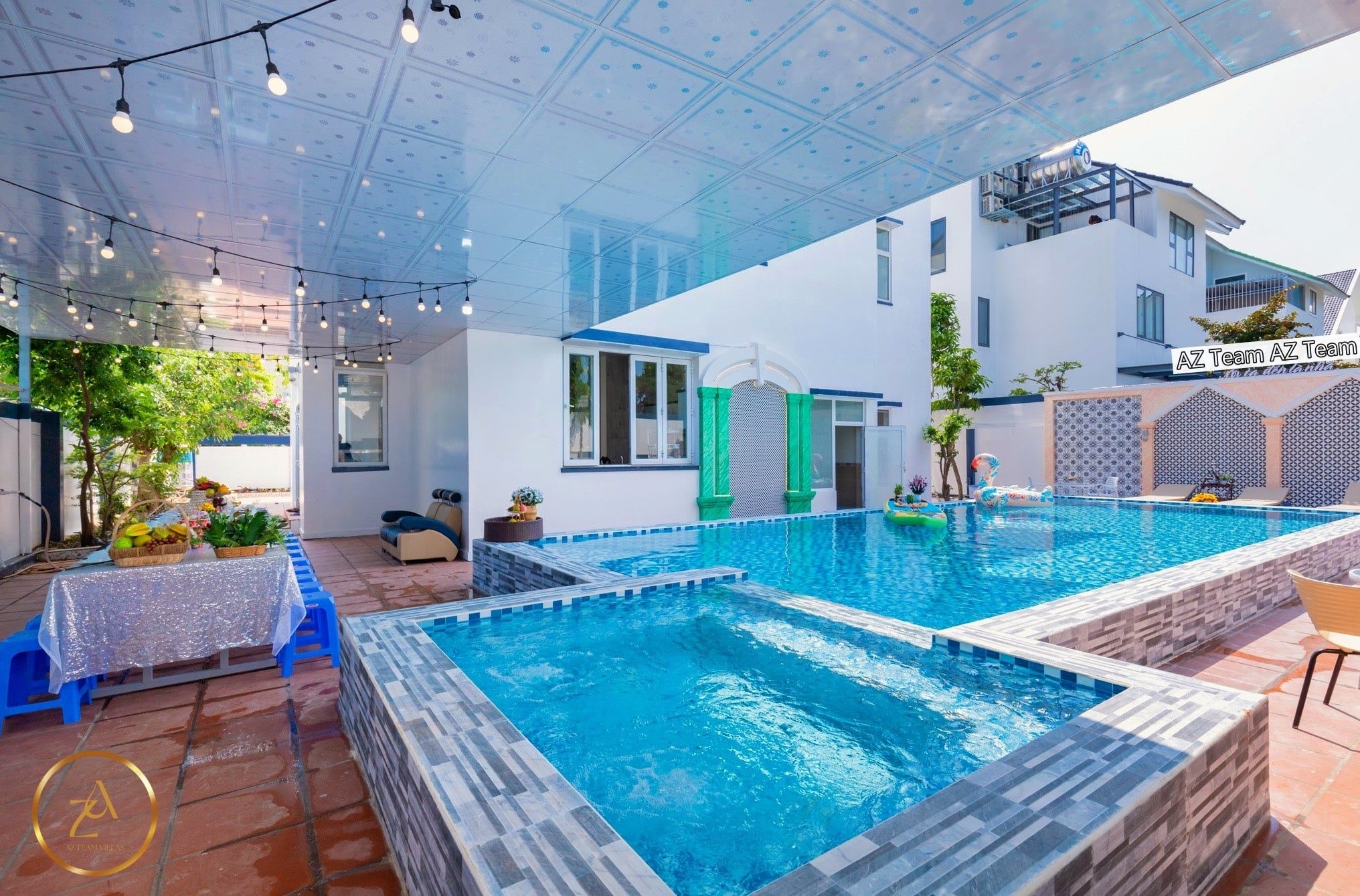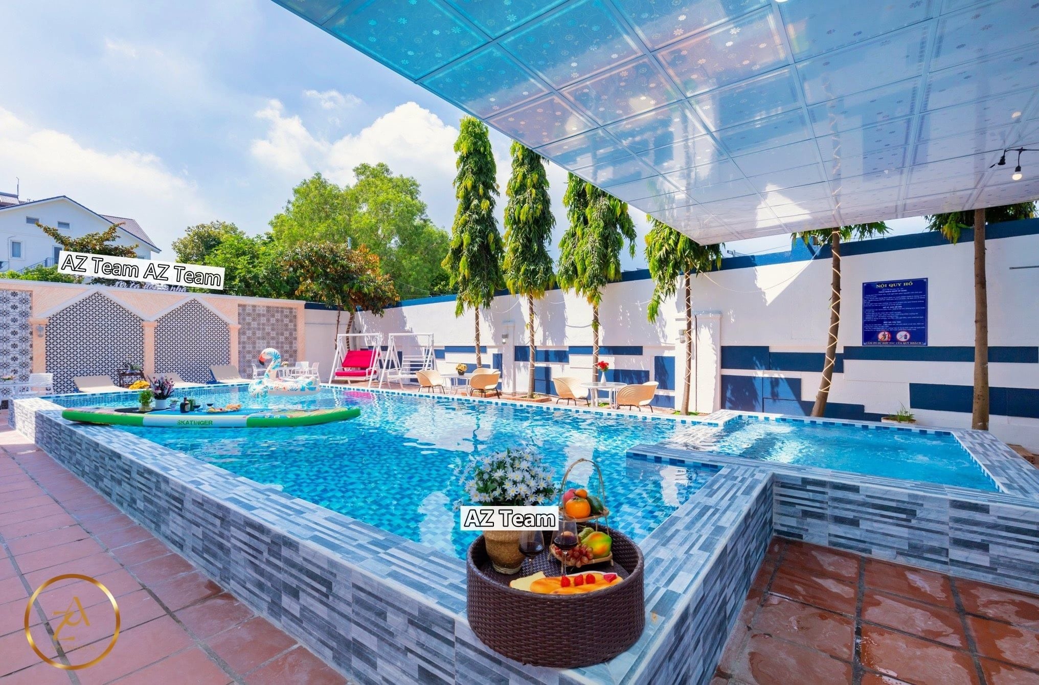 - Hồ bơi rộng 35m2 và không gian vui chơi thoáng mát