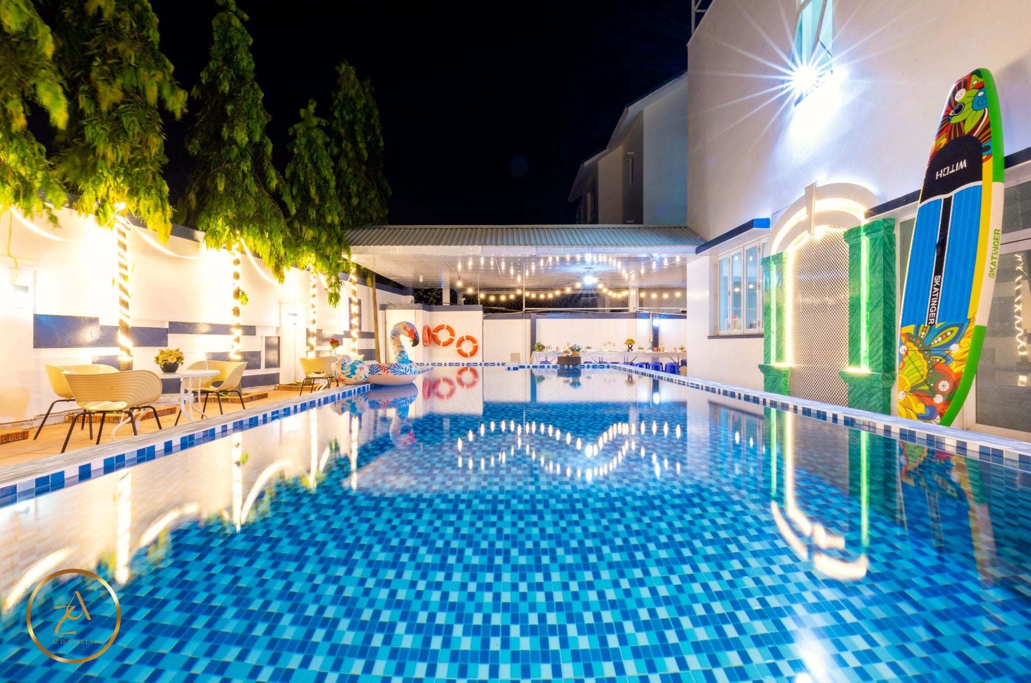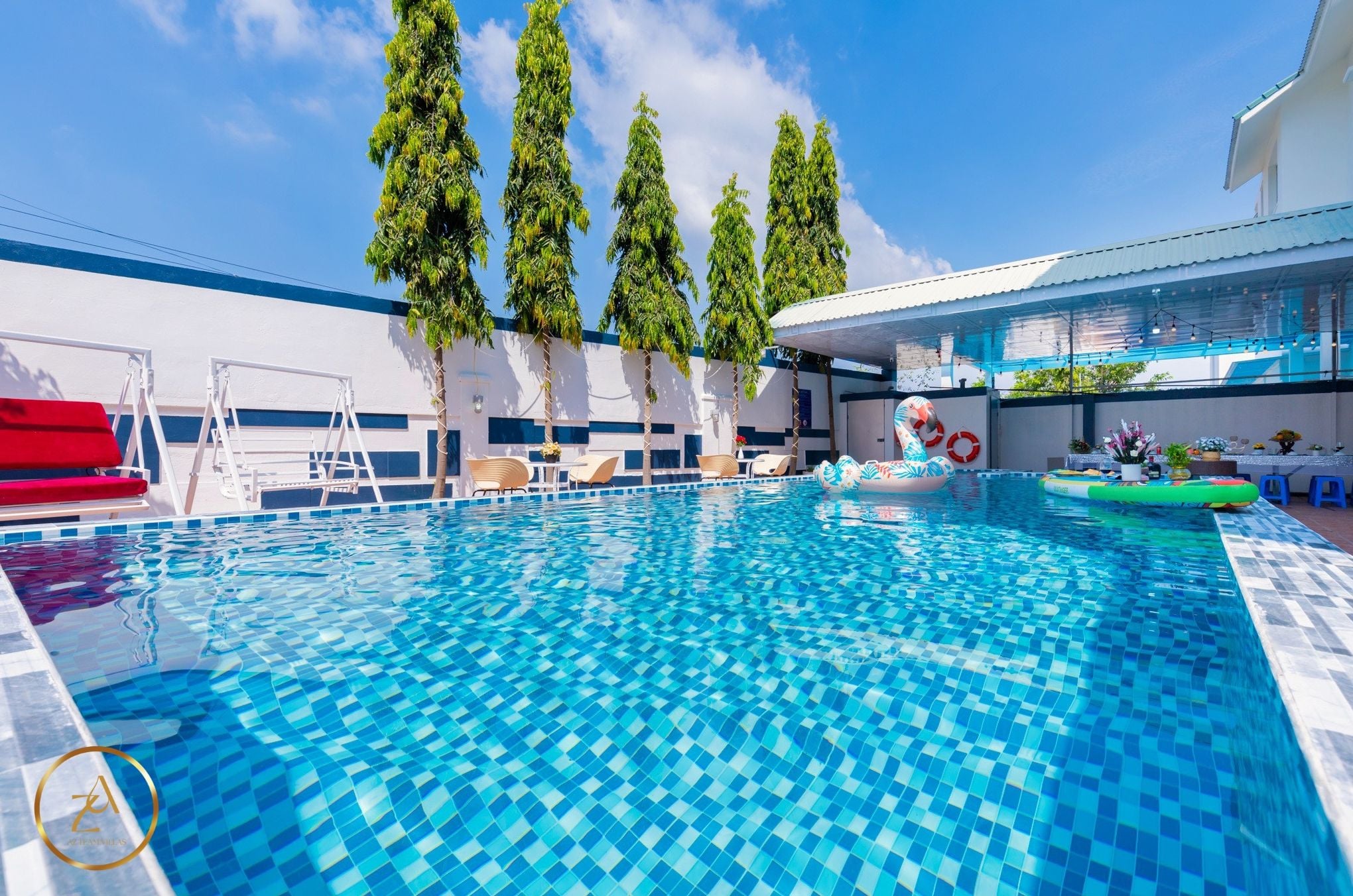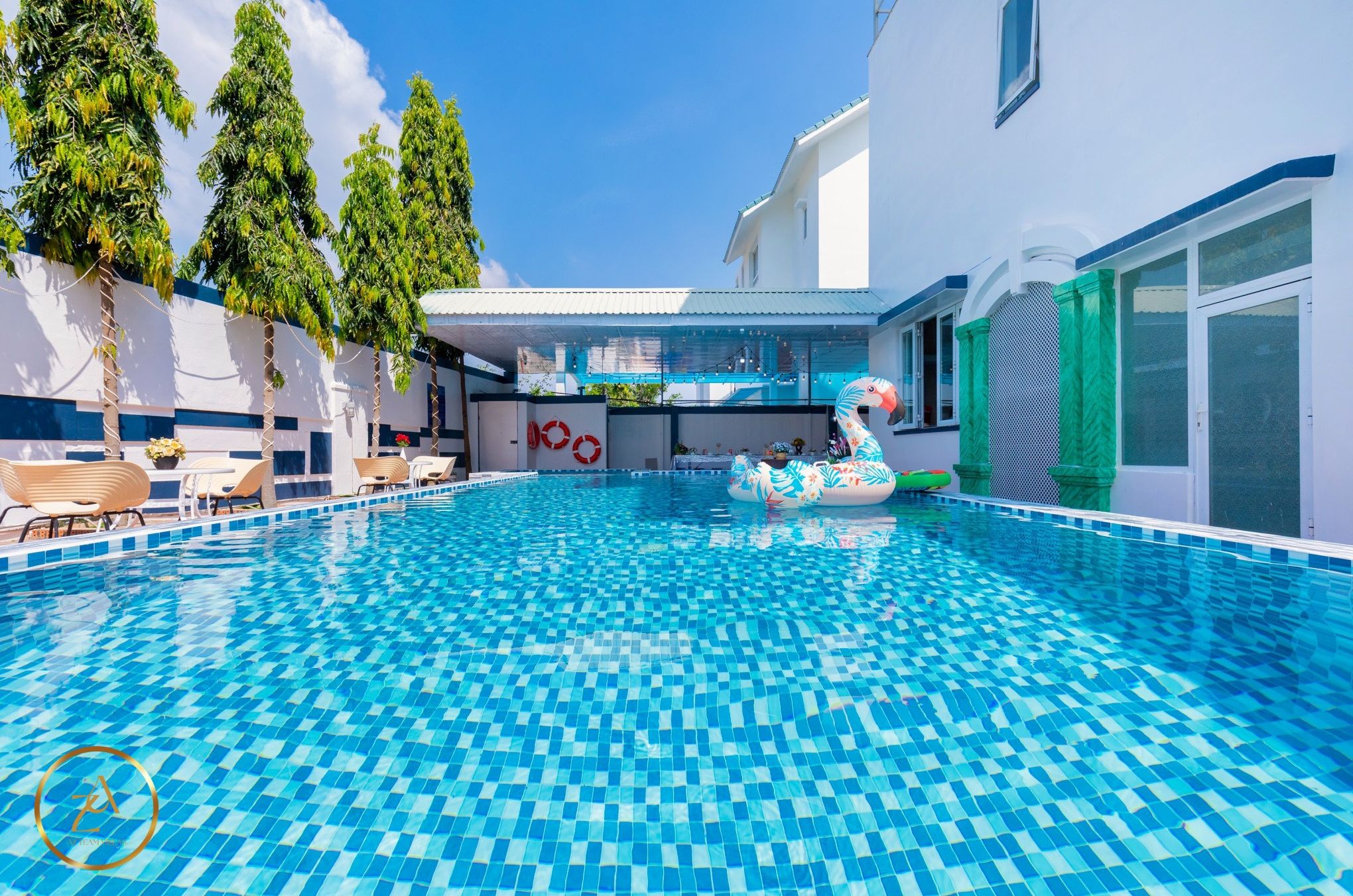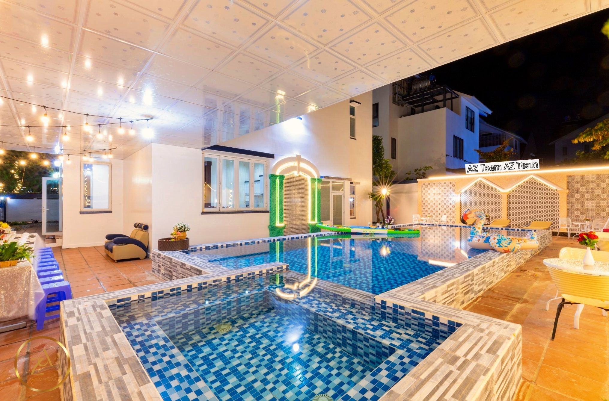 - Hồ bơi rộng 35m2 và không gian vui chơi thoáng mát