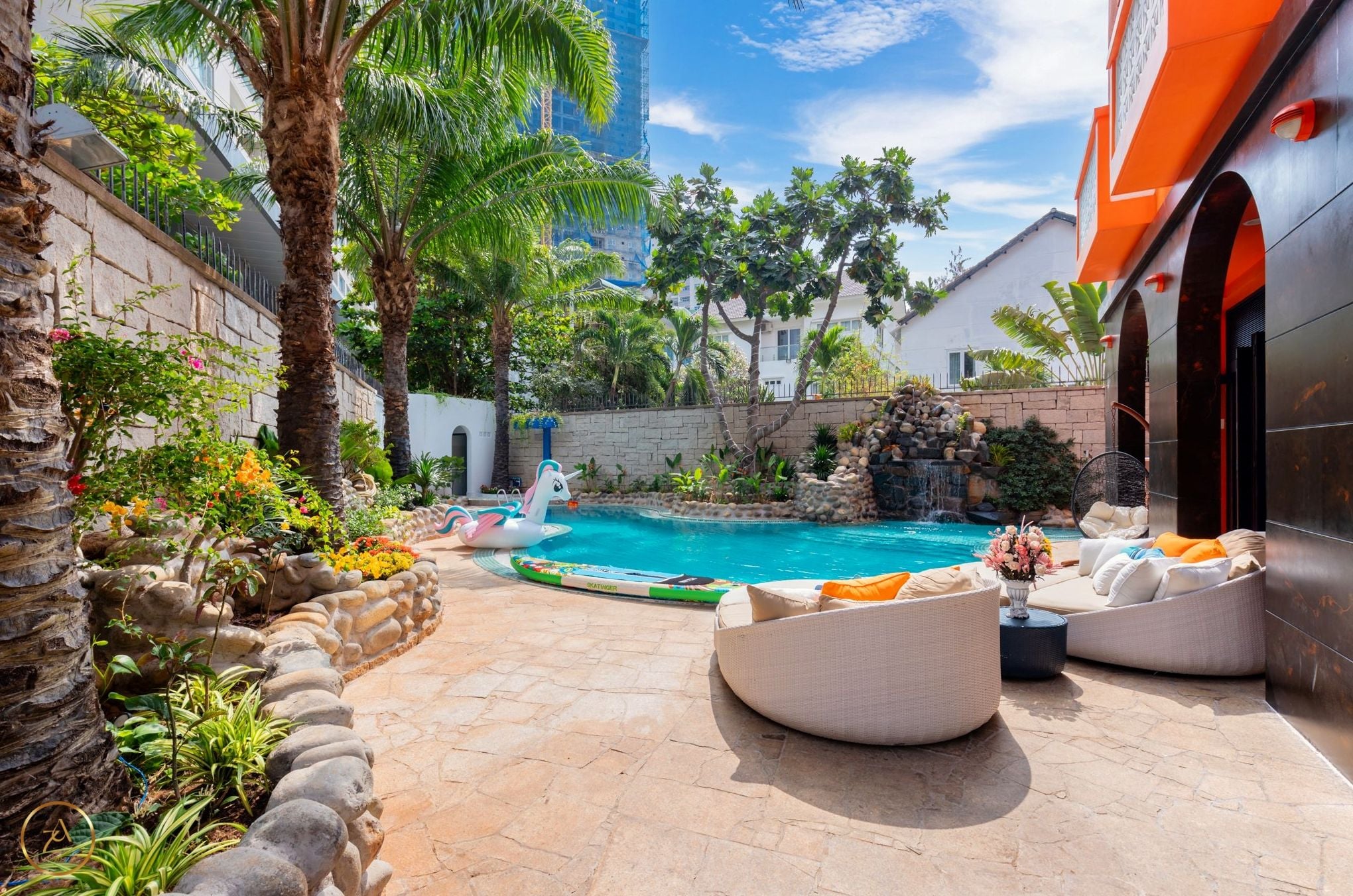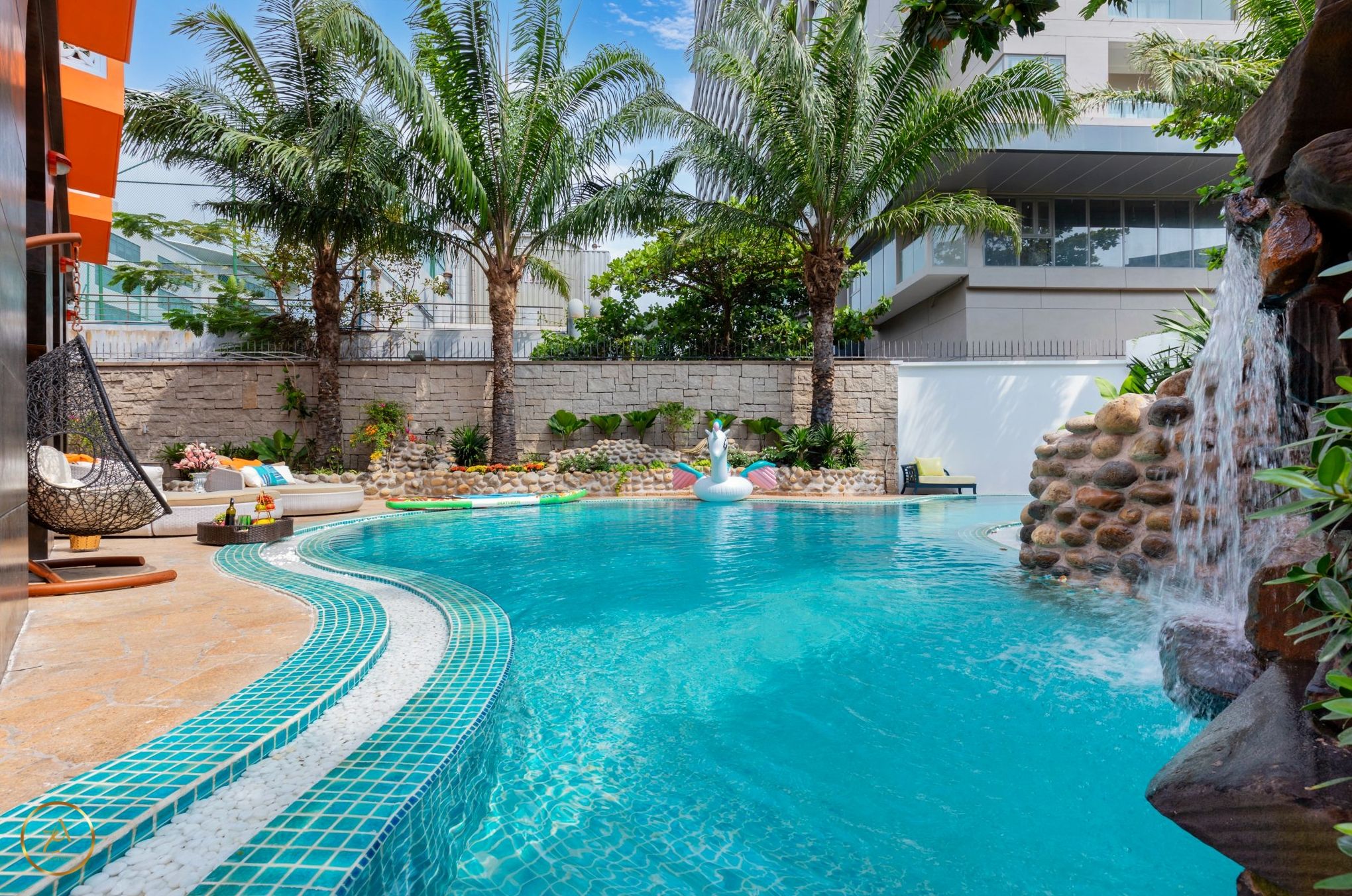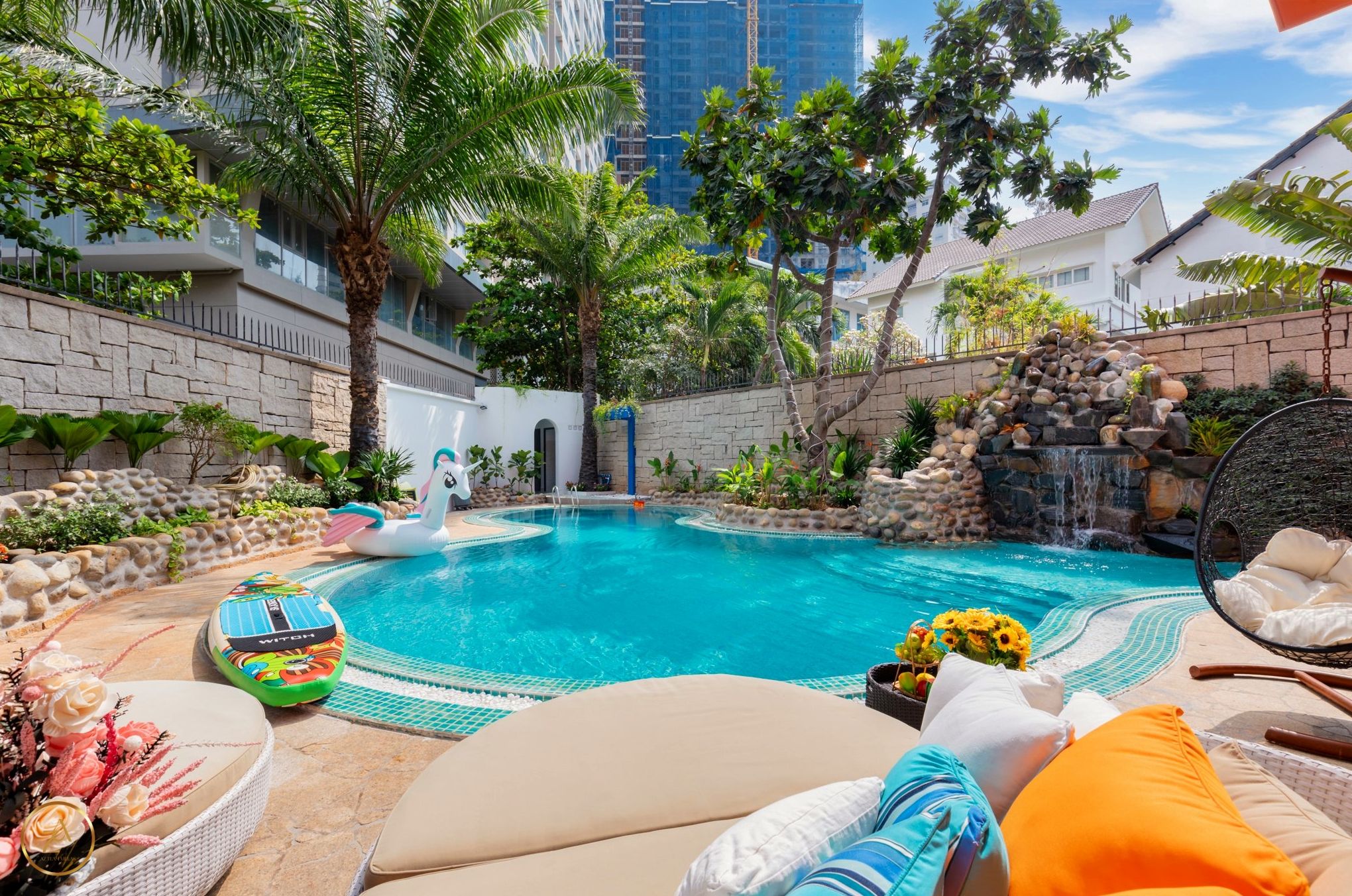 - Hồ bơi rộng 35m2 và không gian vui chơi thoáng mát