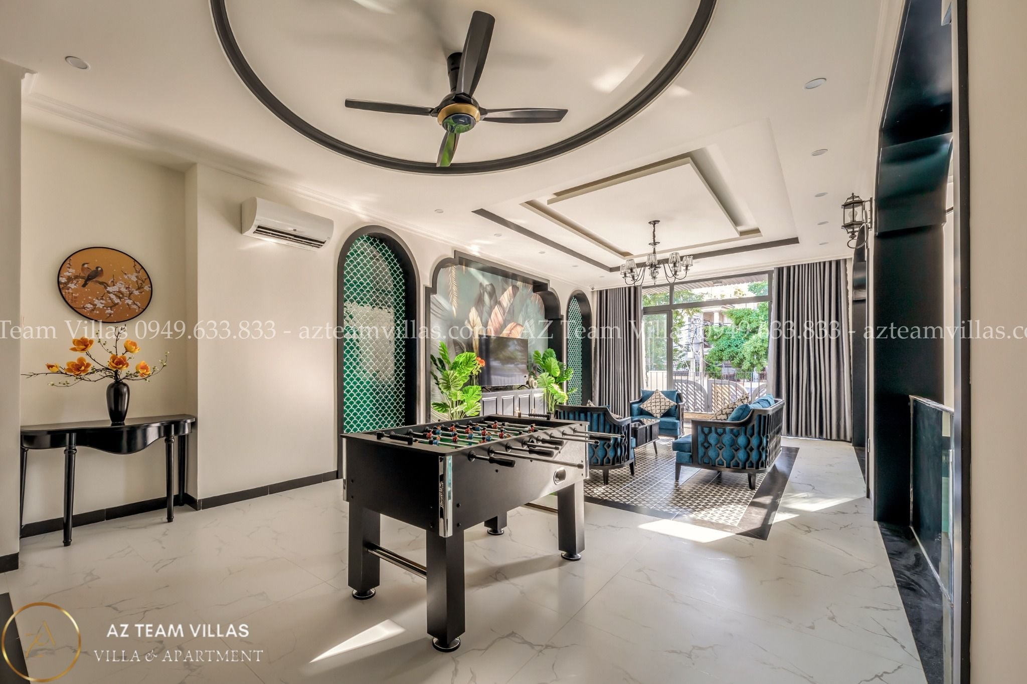 Điểm độc đáo của Villa là phòng giải trí, nơi sở hữu dàn karaoke đỉnh cao và bàn bida, hứa hẹn những khoảnh khắc giải trí không thể quên. Với tổng cộng 12 phòng tắm, kèm theo các tiện nghi như bồn tắm và máy lạnh công suất cao, mọi khía cạnh của Villa đều được chăm sóc tỉ mỉ.