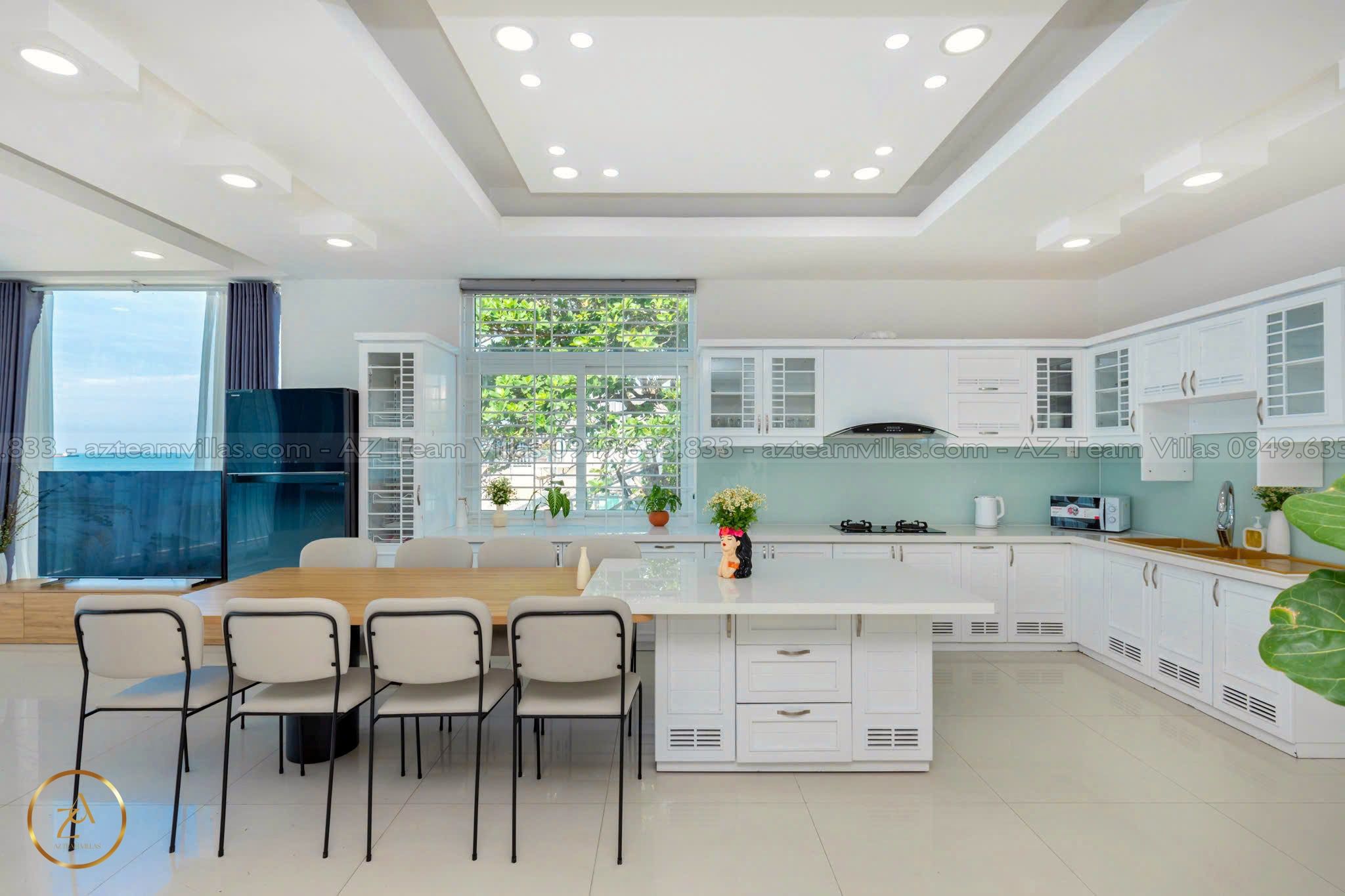 - Nhà bếp hiện đại: Đầy đủ tiện nghi như tủ lạnh, lò vi sóng, máy pha cà phê.