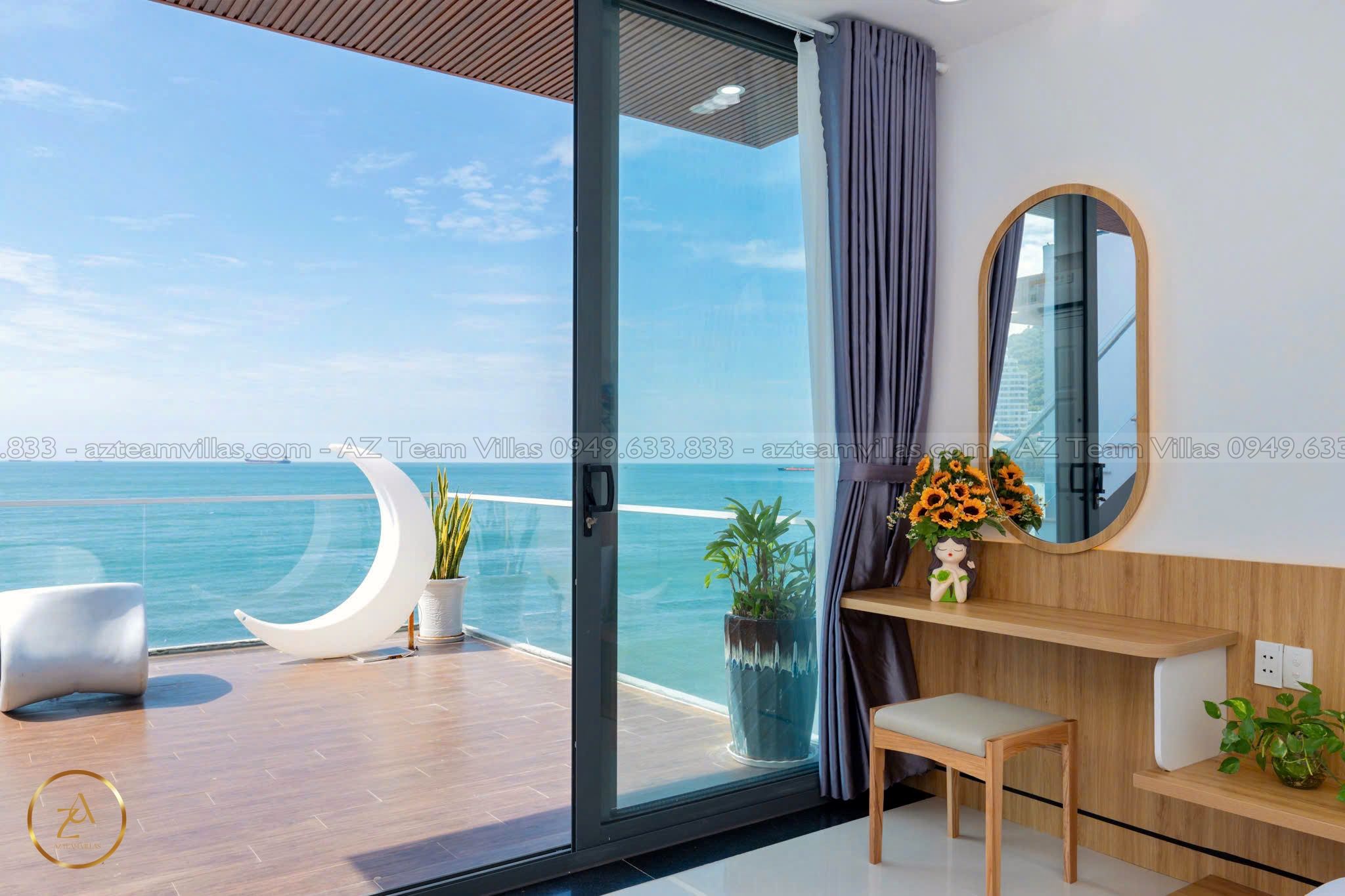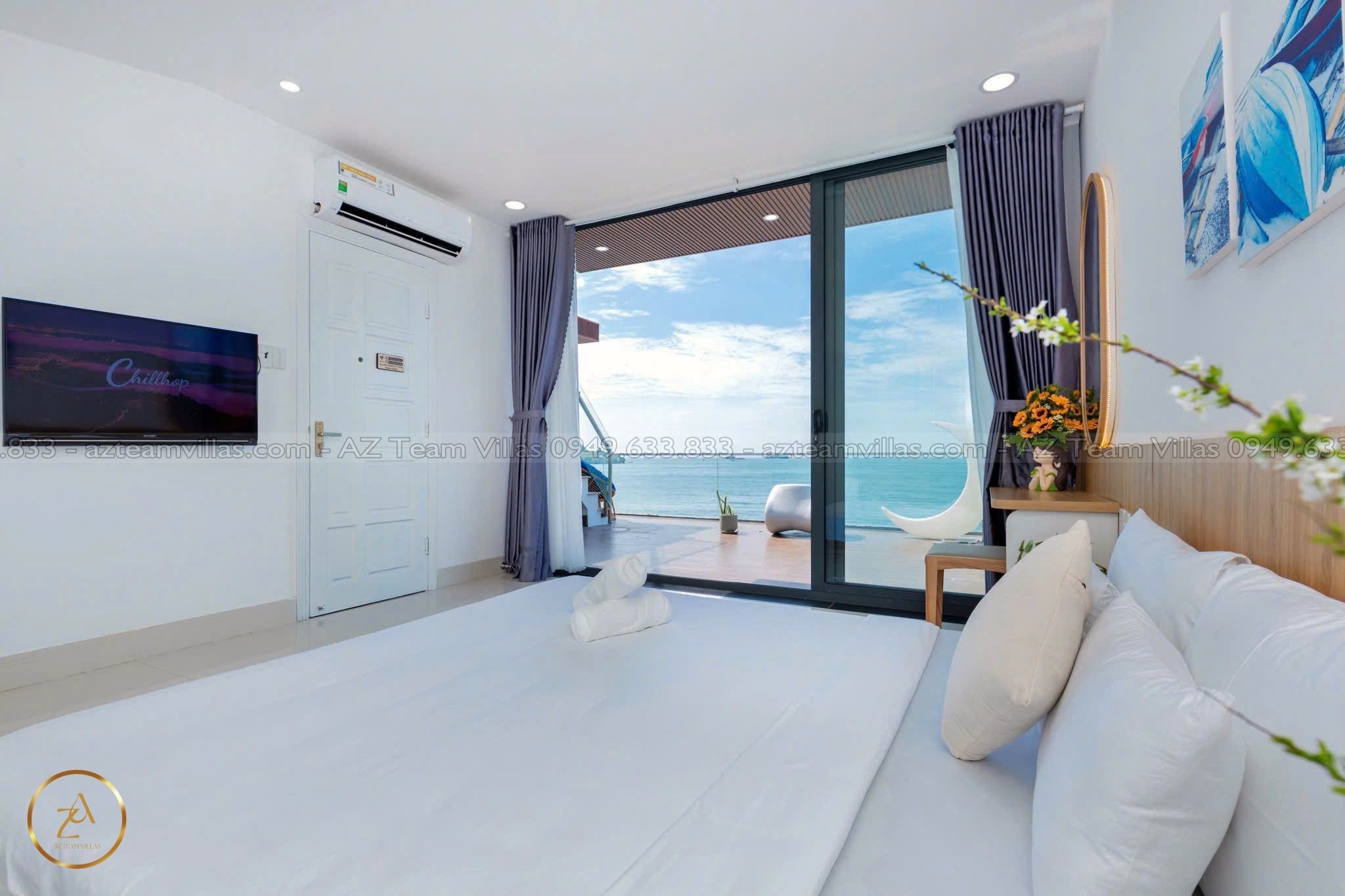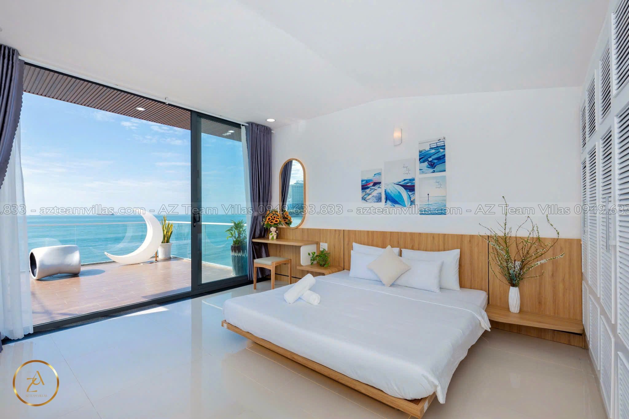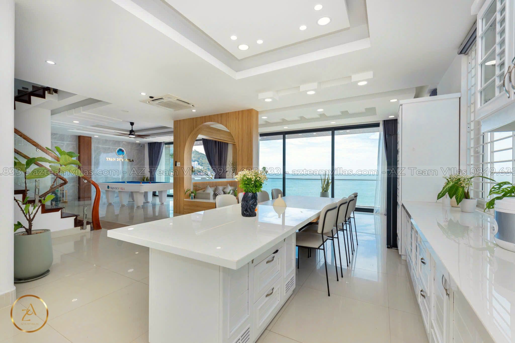 - Phòng khách rộng rãi: Cửa sổ lớn hướng hồ bơi & biển.