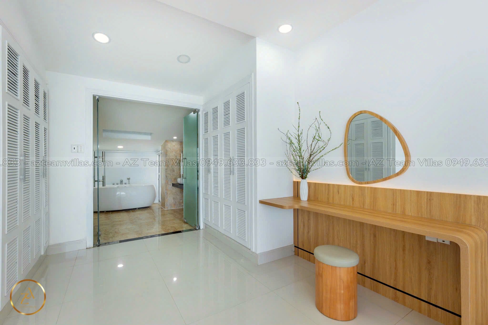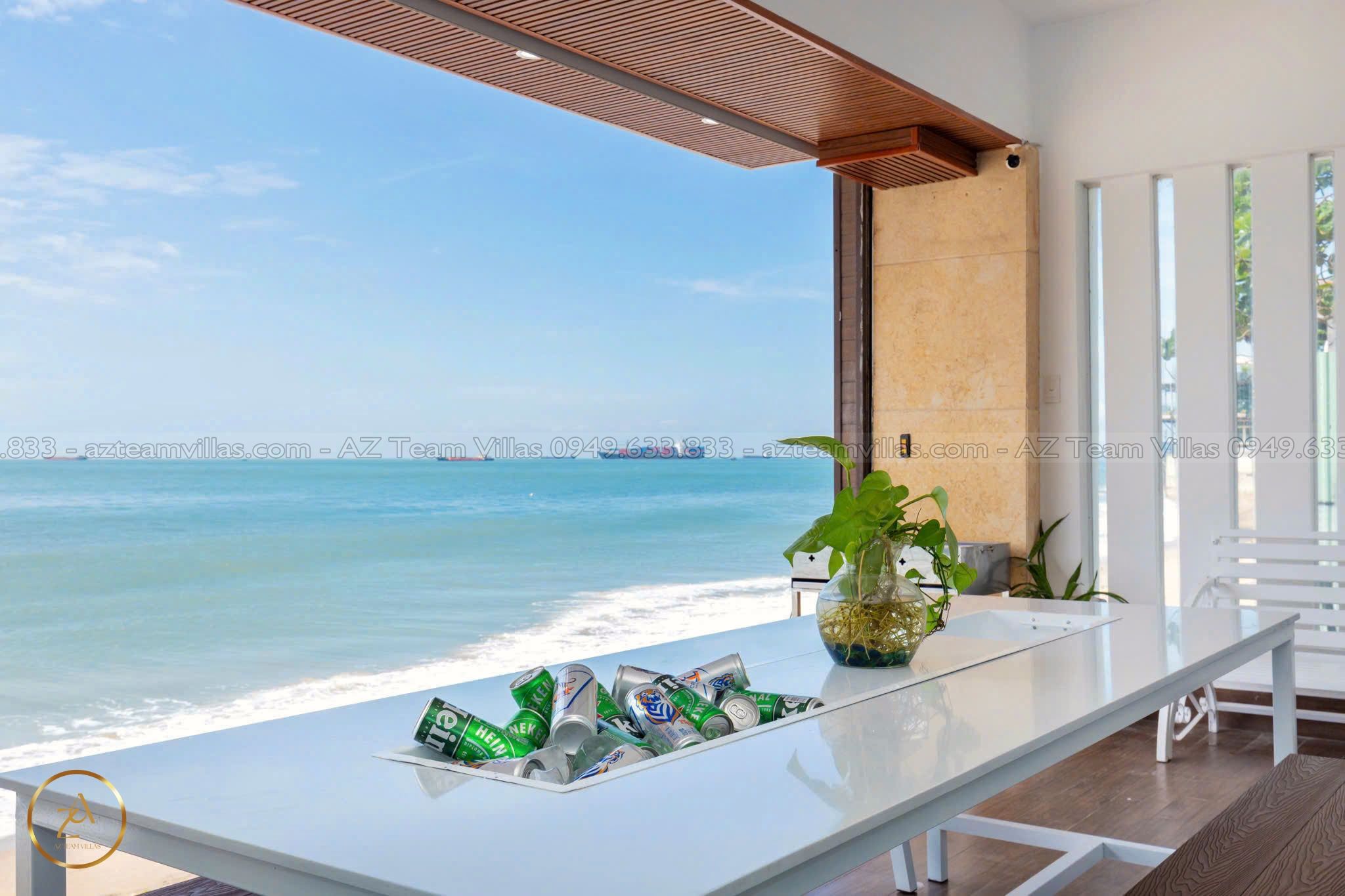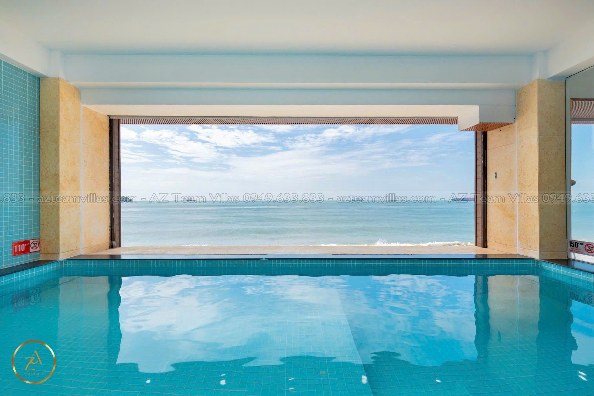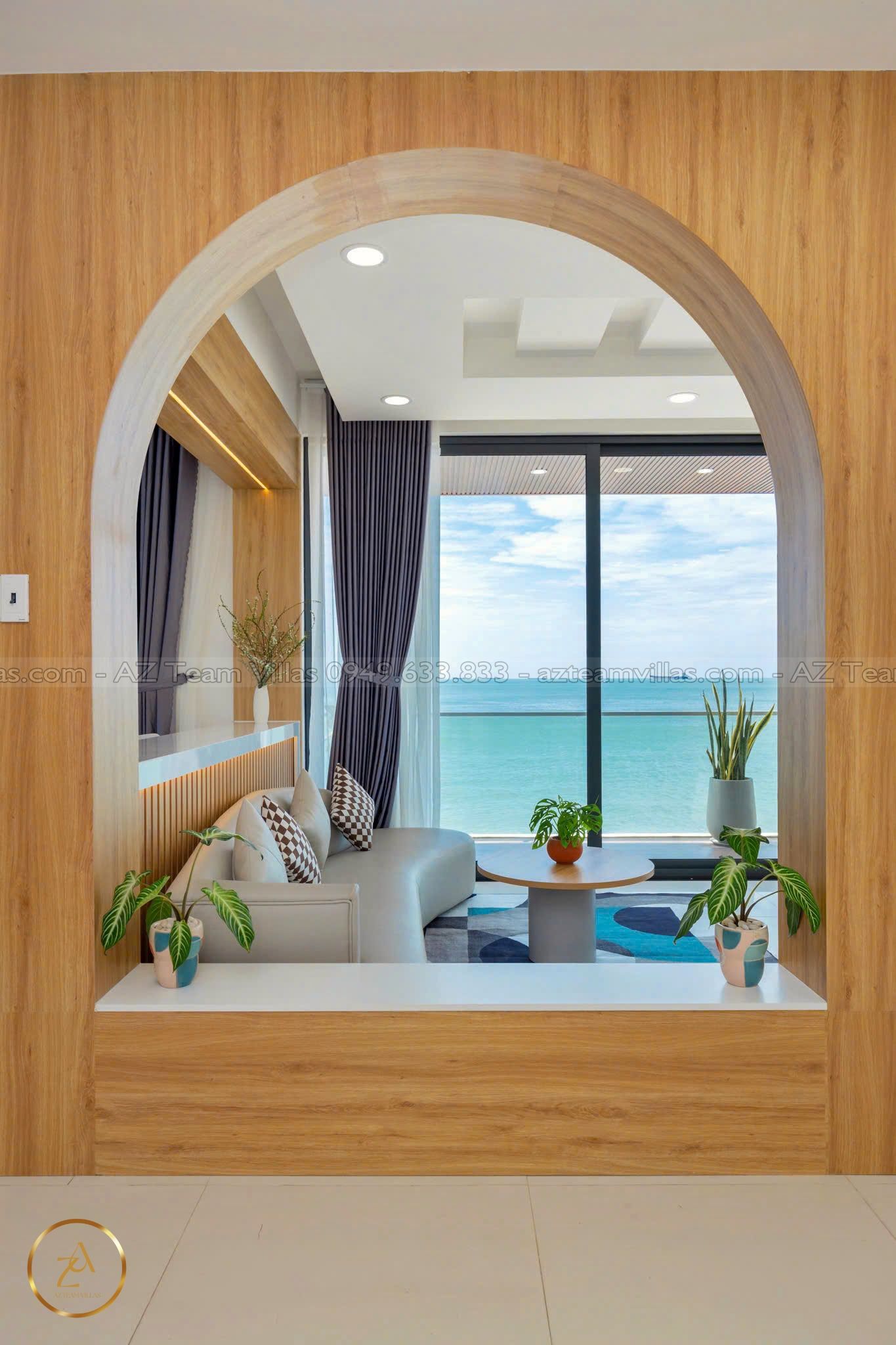 - Phòng khách rộng rãi: Cửa sổ lớn hướng hồ bơi & biển.