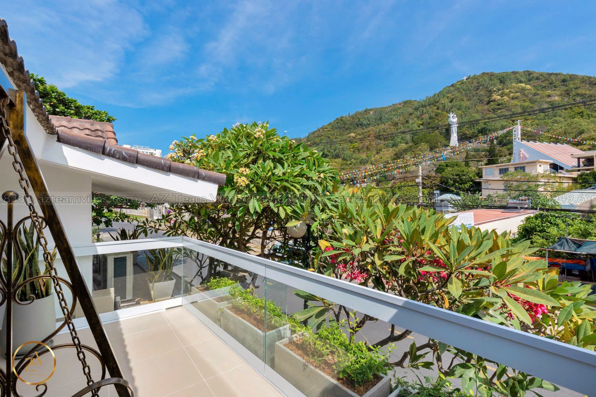 - Ban công trước view núi và nhà thờ Đức Mẹ Bãi Dâu, ban công sau view biển.