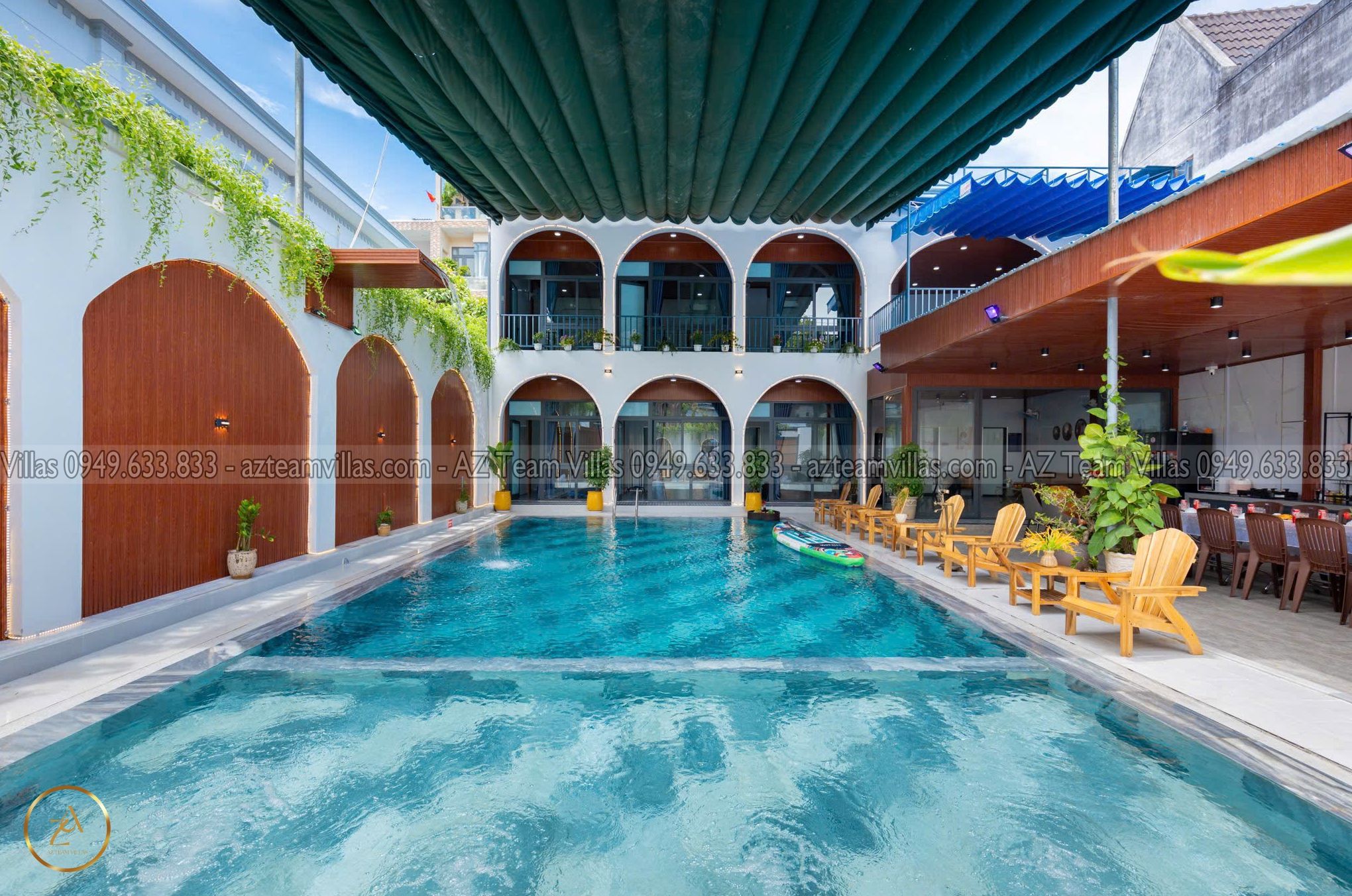 - Hồ bơi rộng 35m2 và không gian vui chơi thoáng mát