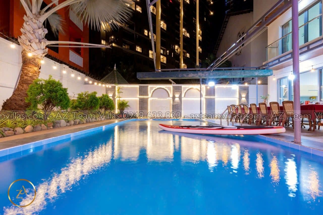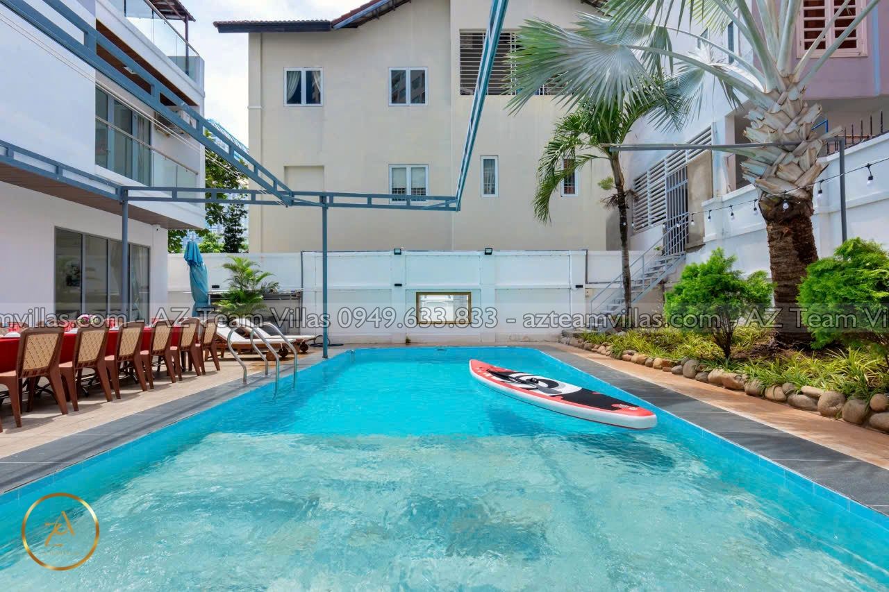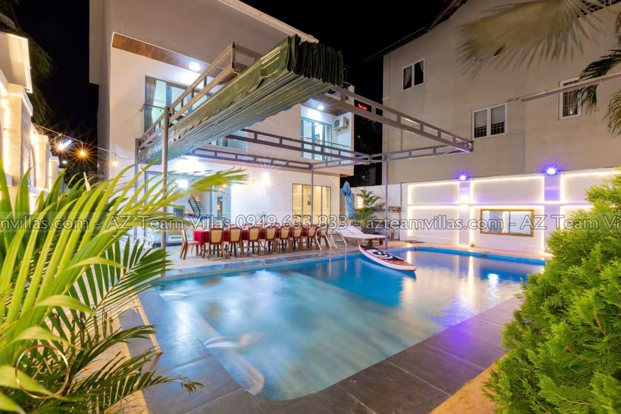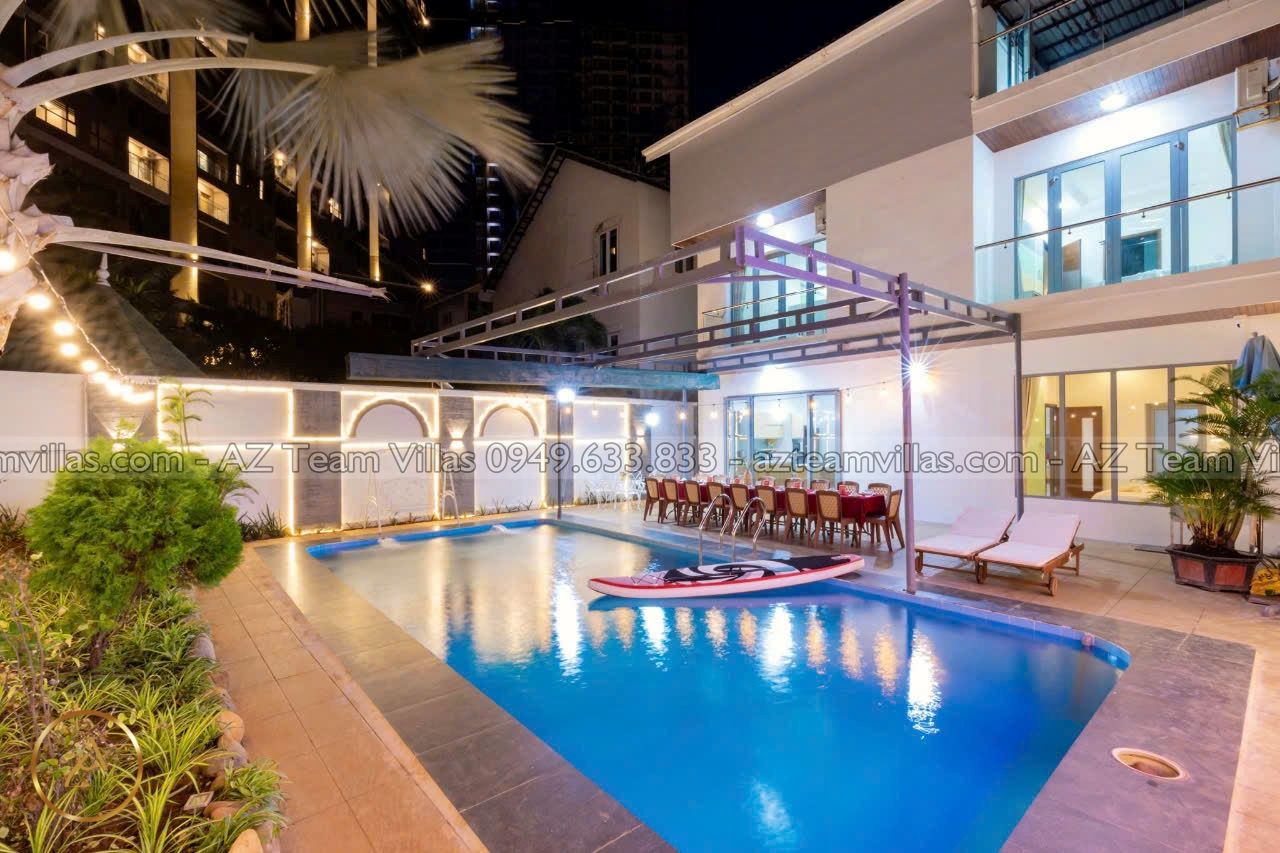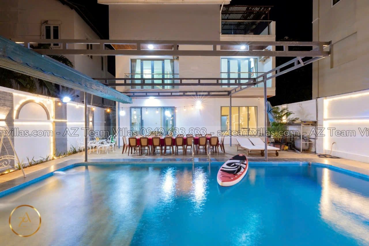 Tận hưởng kỳ nghỉ đẳng cấp tại Villa hồ bơi bãi sau, chỉ cách biển 400m và quãng trường trung tâm 10 phút đi bộ. Villa rộng rãi với thiết kế 1 trệt 2 lầu, mang đến không gian lý tưởng cho nhóm đông người và các gia đình.