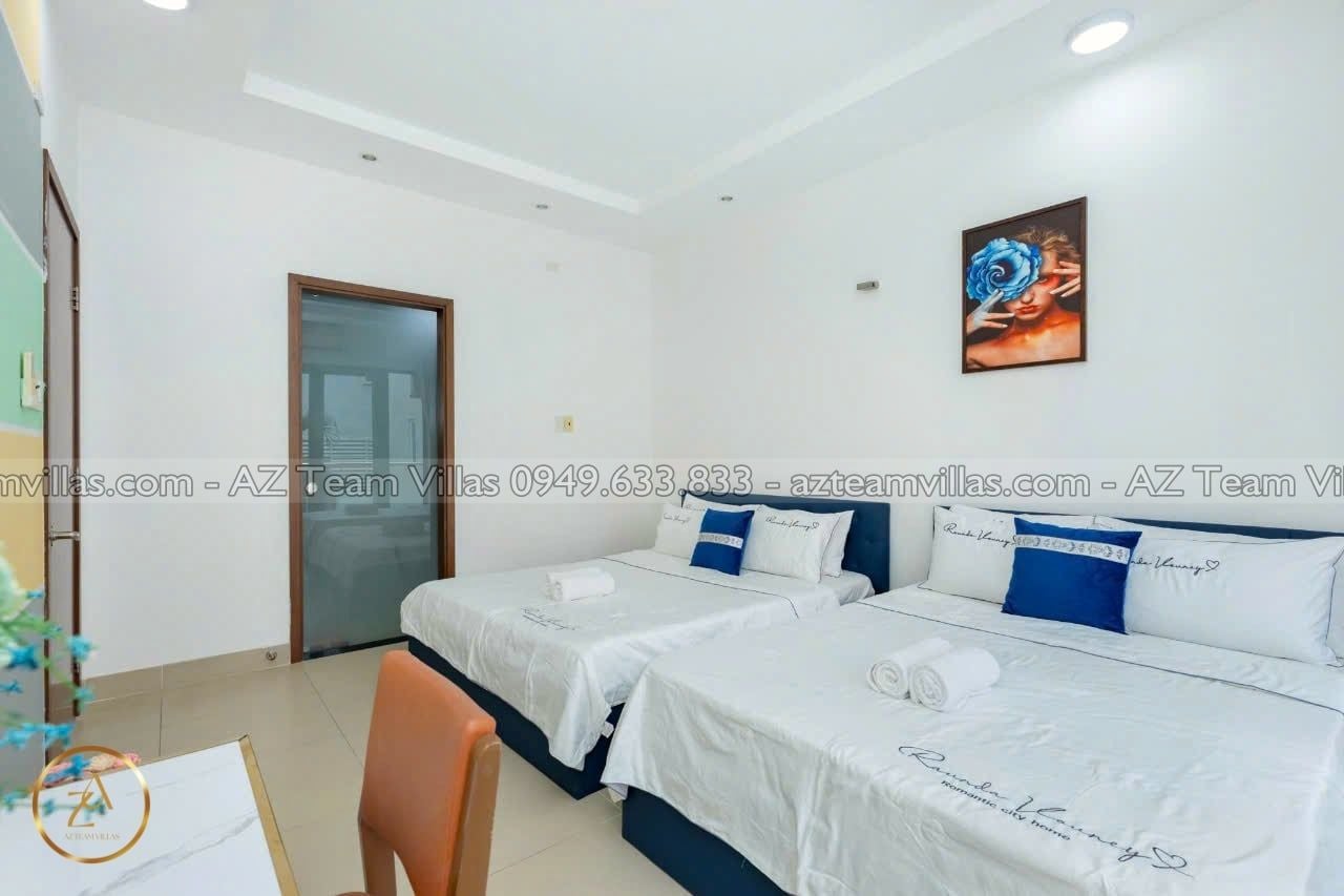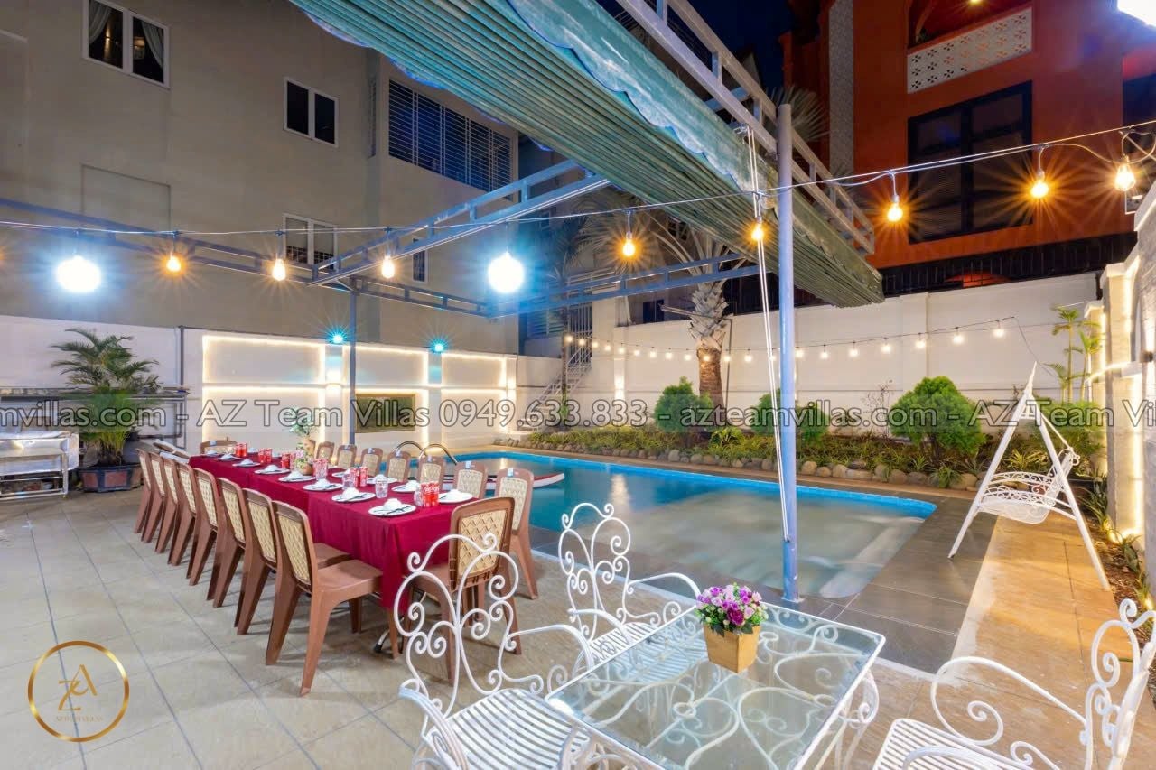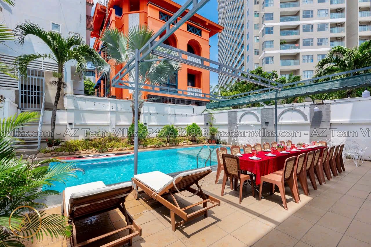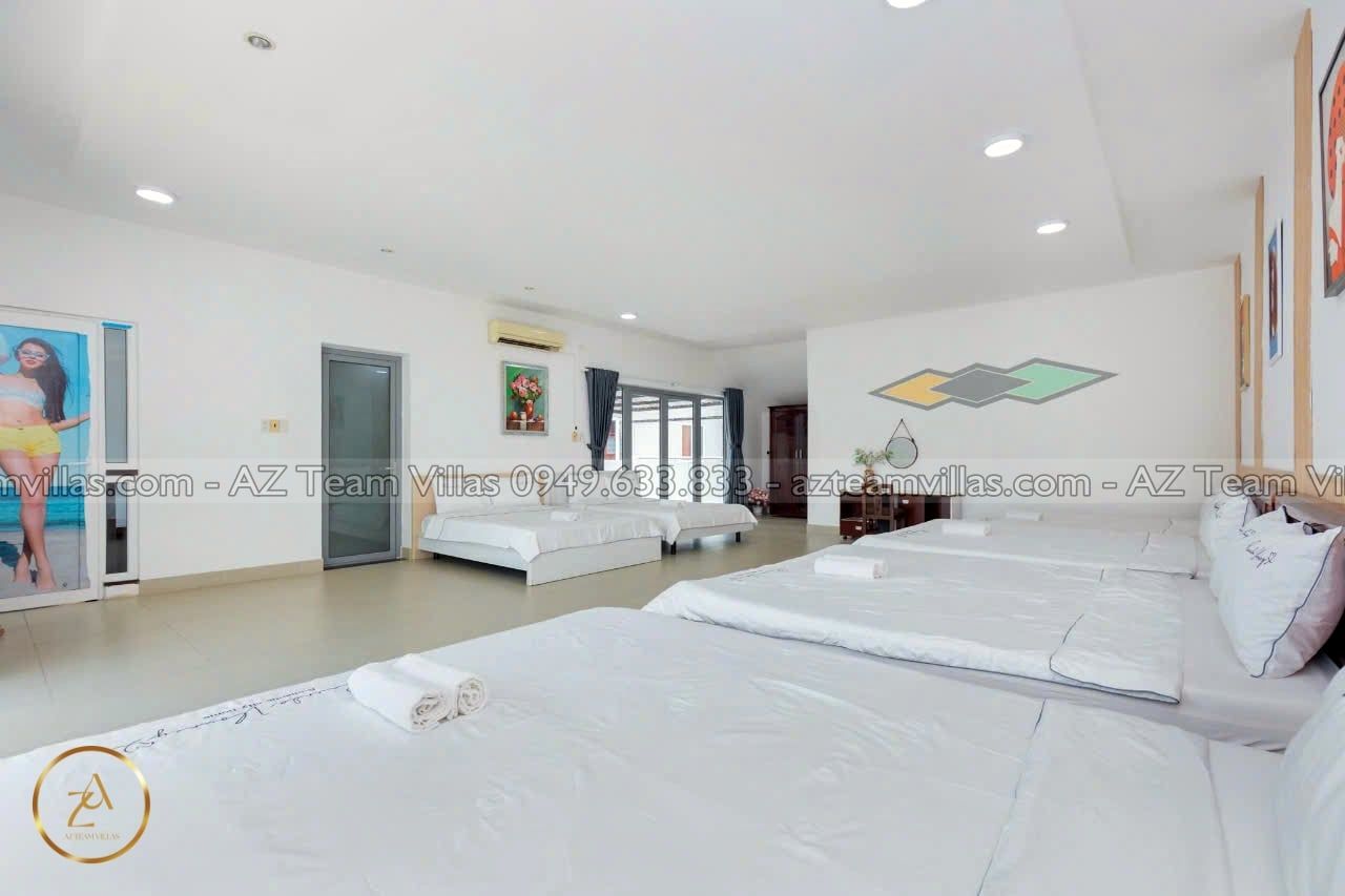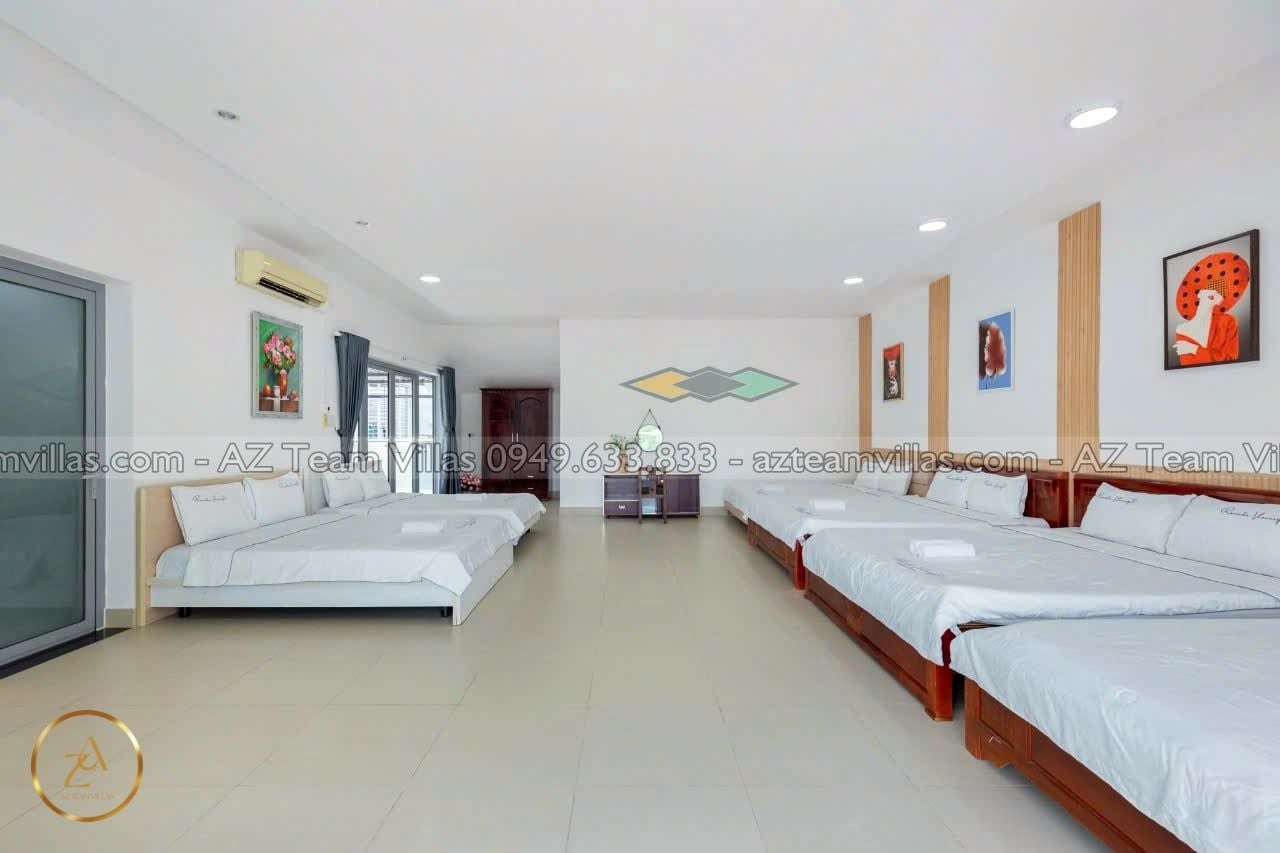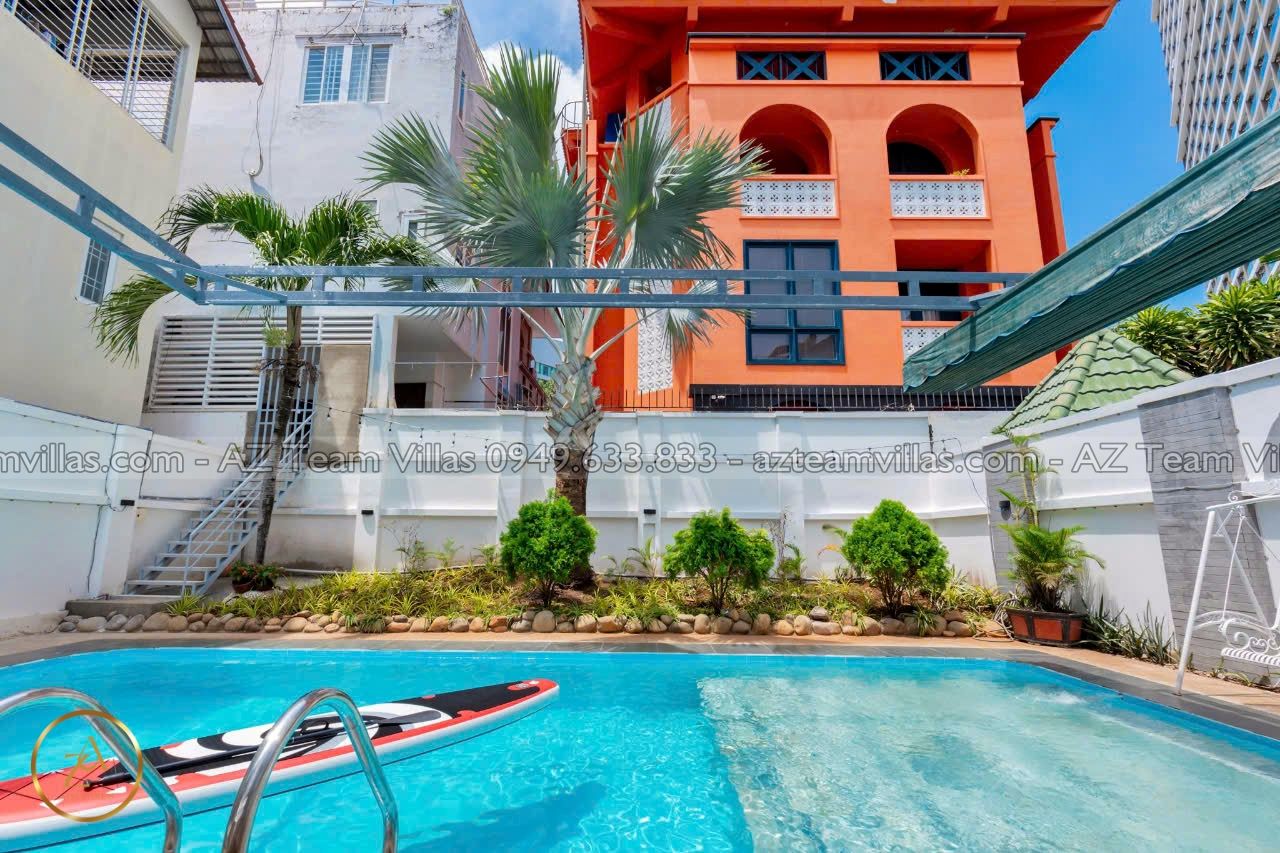 Tận hưởng kỳ nghỉ đẳng cấp tại Villa hồ bơi bãi sau, chỉ cách biển 400m và quãng trường trung tâm 10 phút đi bộ. Villa rộng rãi với thiết kế 1 trệt 2 lầu, mang đến không gian lý tưởng cho nhóm đông người và các gia đình.