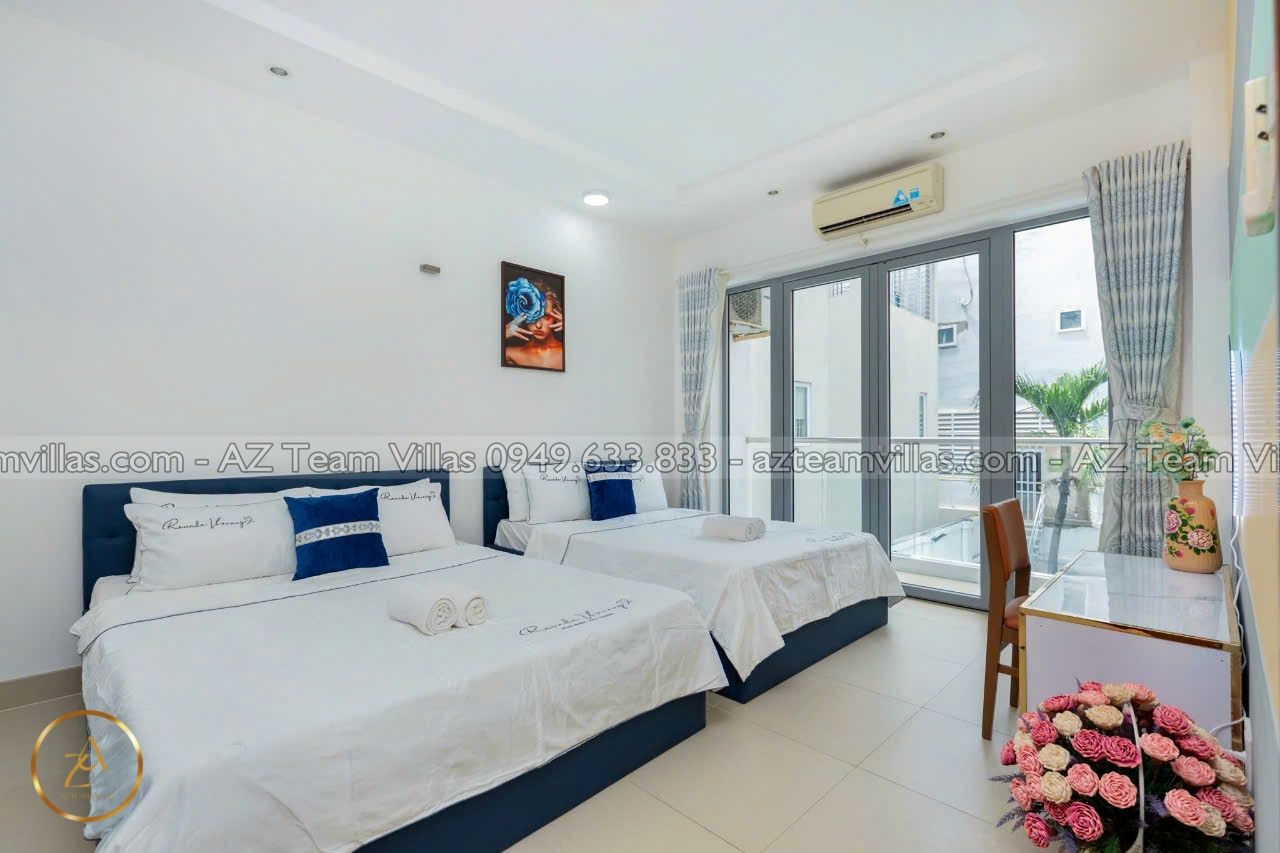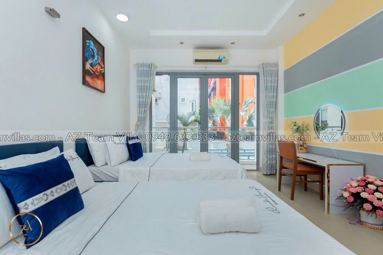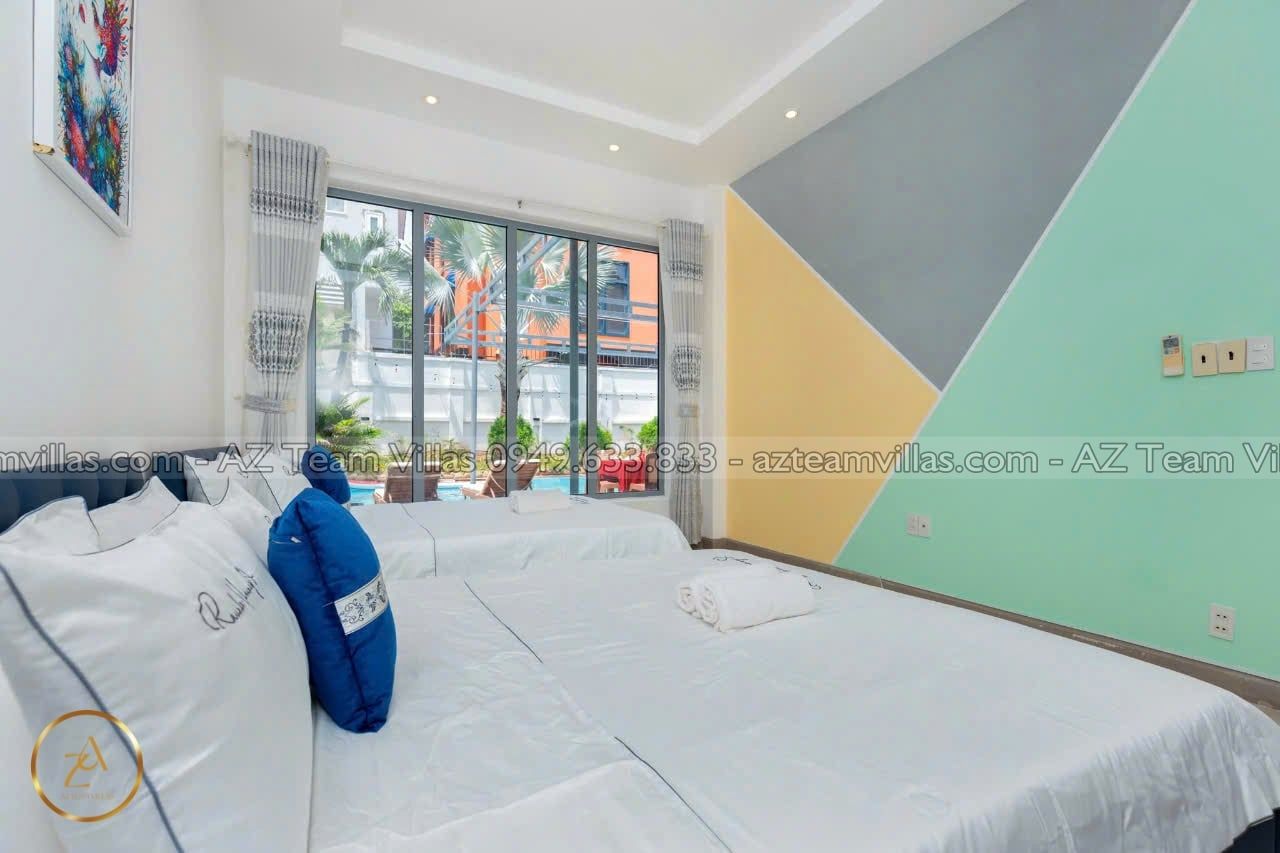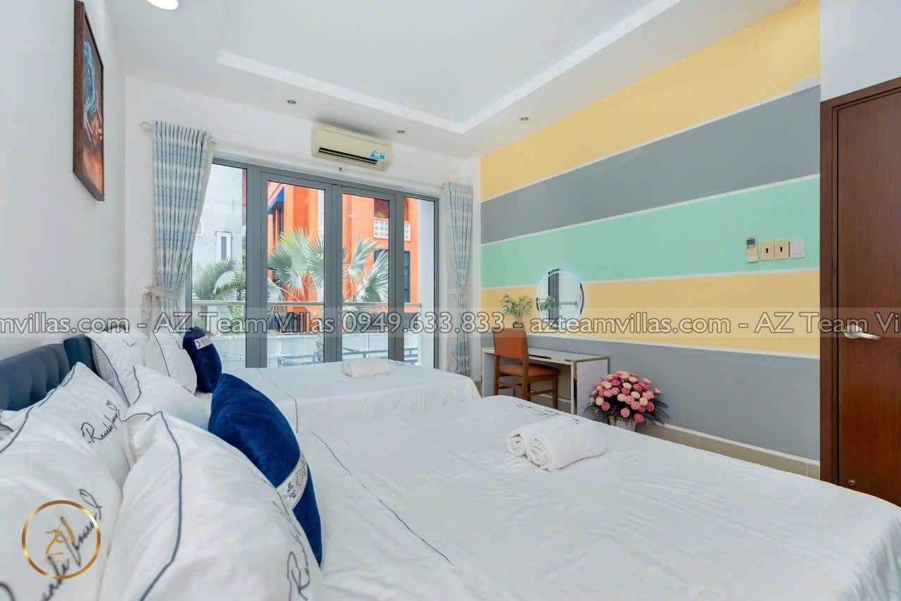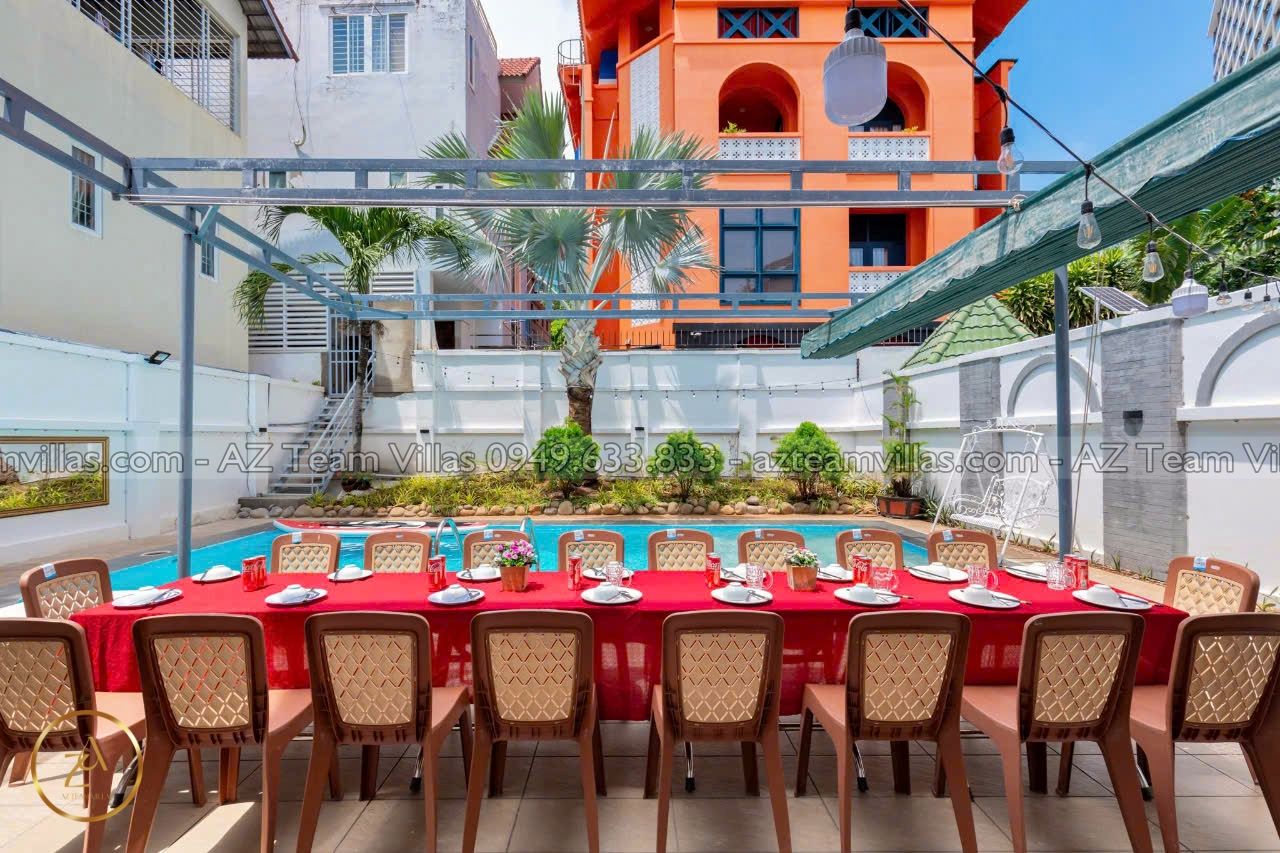 Tận hưởng kỳ nghỉ đẳng cấp tại Villa hồ bơi bãi sau, chỉ cách biển 400m và quãng trường trung tâm 10 phút đi bộ. Villa rộng rãi với thiết kế 1 trệt 2 lầu, mang đến không gian lý tưởng cho nhóm đông người và các gia đình.