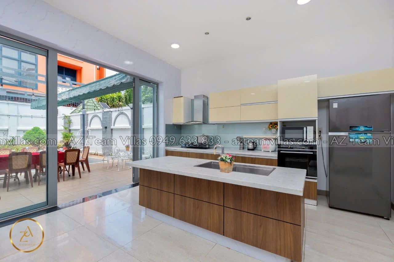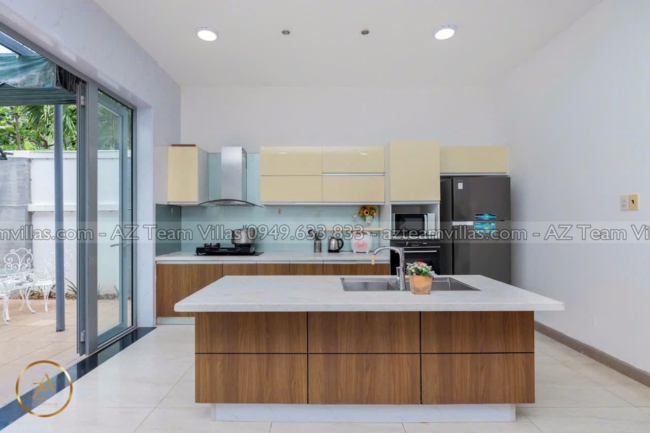 - Bếp cung cấp đầy đủ dụng cụ nấu ăn: lò vi sóng, lò nướng, nồi cơm điện, ấm đun nước điện, tủ lạnh, bát đĩa