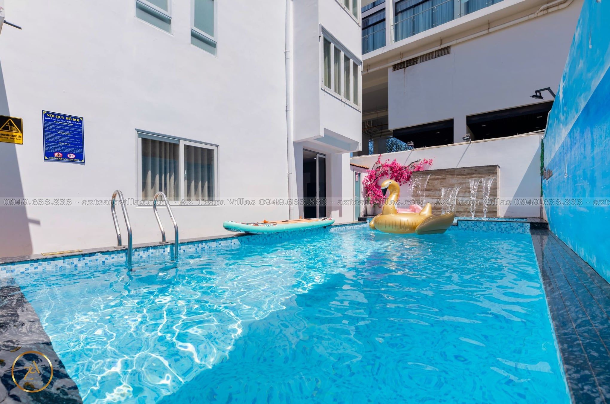 - Hồ bơi rộng 35m2 và không gian vui chơi thoáng mát