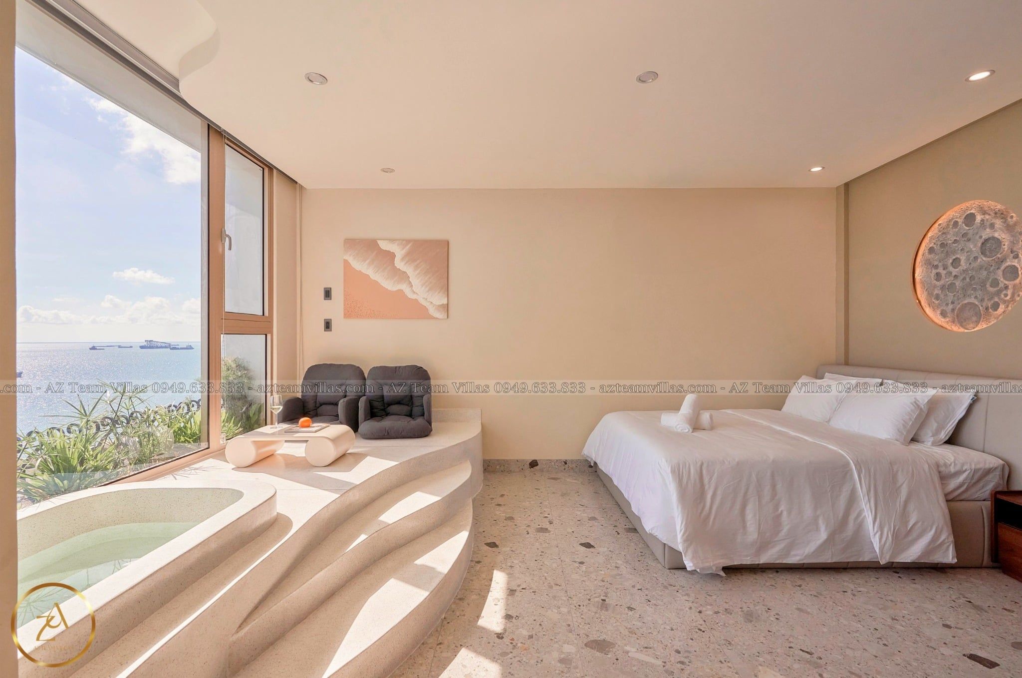 Biệt thự của chúng tôi có vị trí đắc địa, nằm trên đường lên núi Hải Đăng, lưng tựa núi mặt hướng biển. Biệt thự có diện tích 700m2, thiết kế sang trọng, nội thất cao cấp. Biệt thự có 8 phòng ngủ đẹp và hiện đại, mỗi phòng có phòng tắm riêng. Bếp rộng lớn, đầy đủ dụng cụ nấu ăn. Hồ bơi sạch sẽ và không gian vui chơi thoáng mát. Sân rộng, thích hợp tổ chức tiệc BBQ.