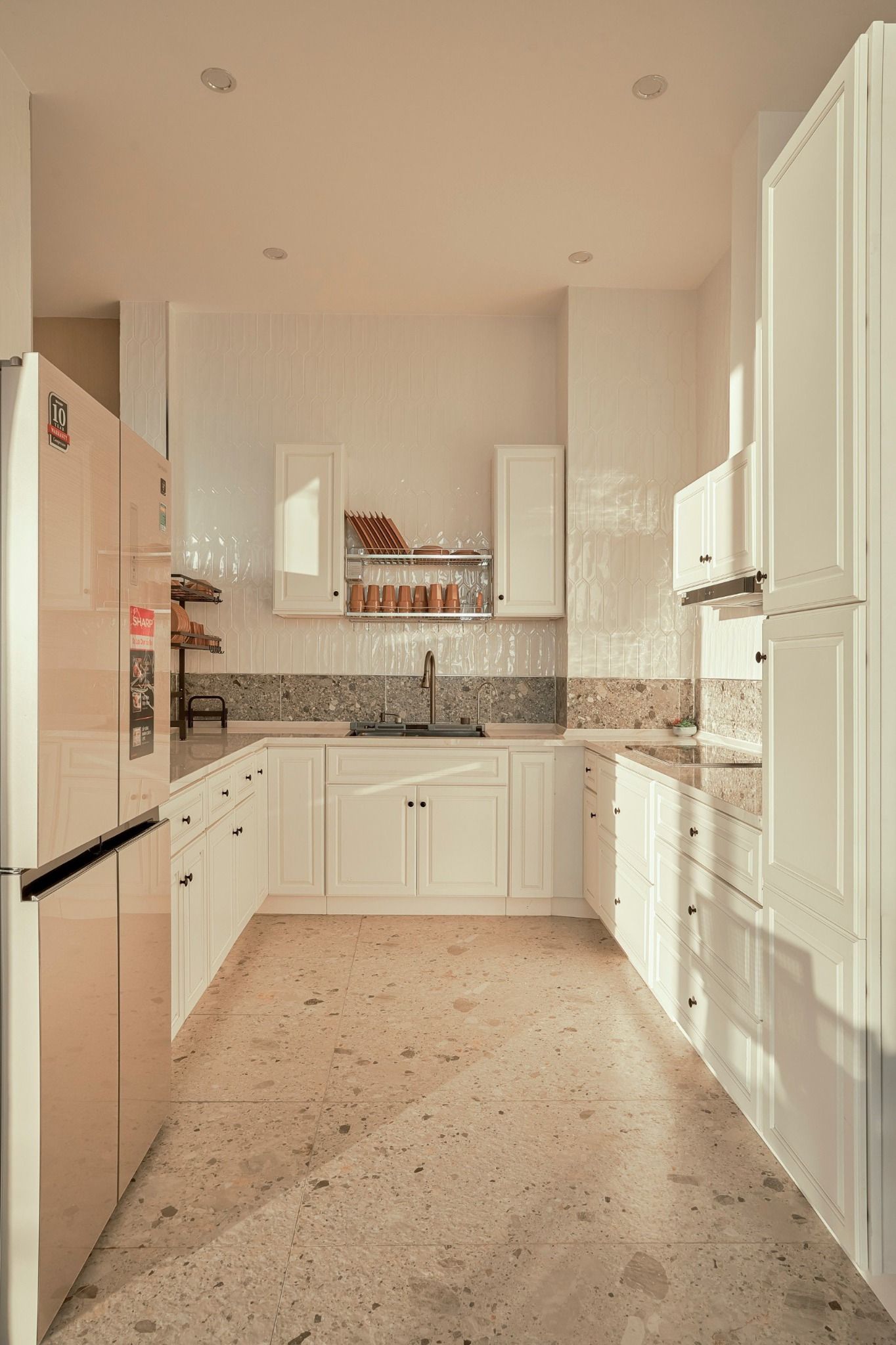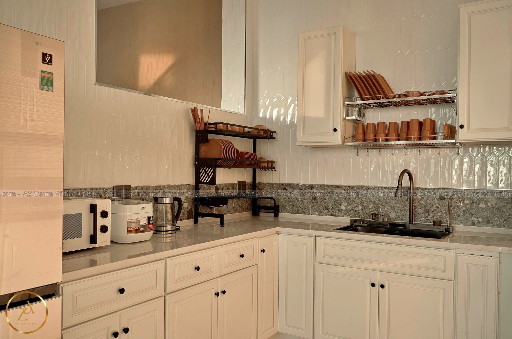 - Bếp cung cấp đầy đủ dụng cụ nấu ăn: lò vi sóng, lò nướng, nồi cơm điện, ấm đun nước điện, tủ lạnh, bát đĩa