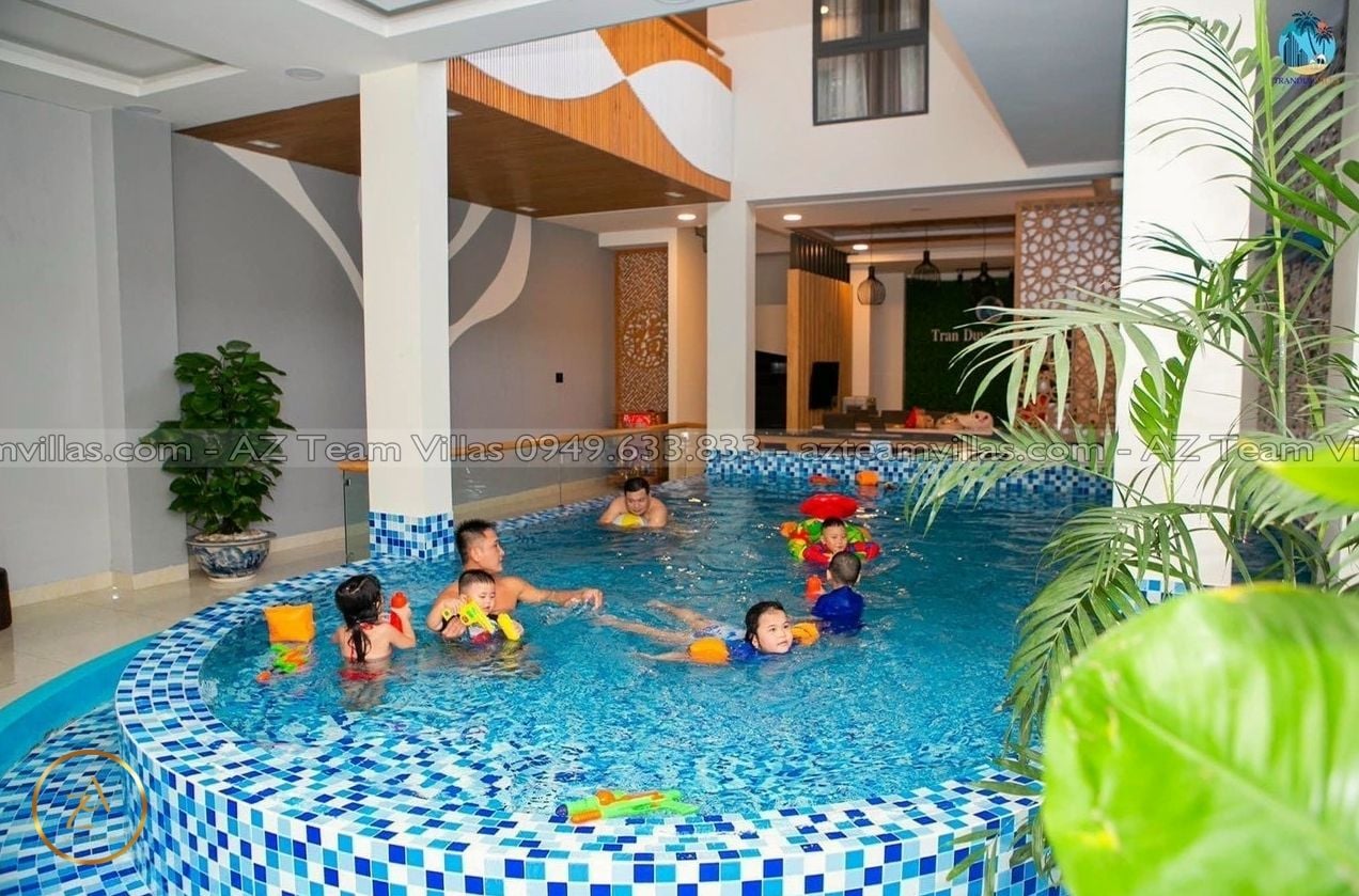 - Hồ bơi rộng 35m2 và không gian vui chơi thoáng mát