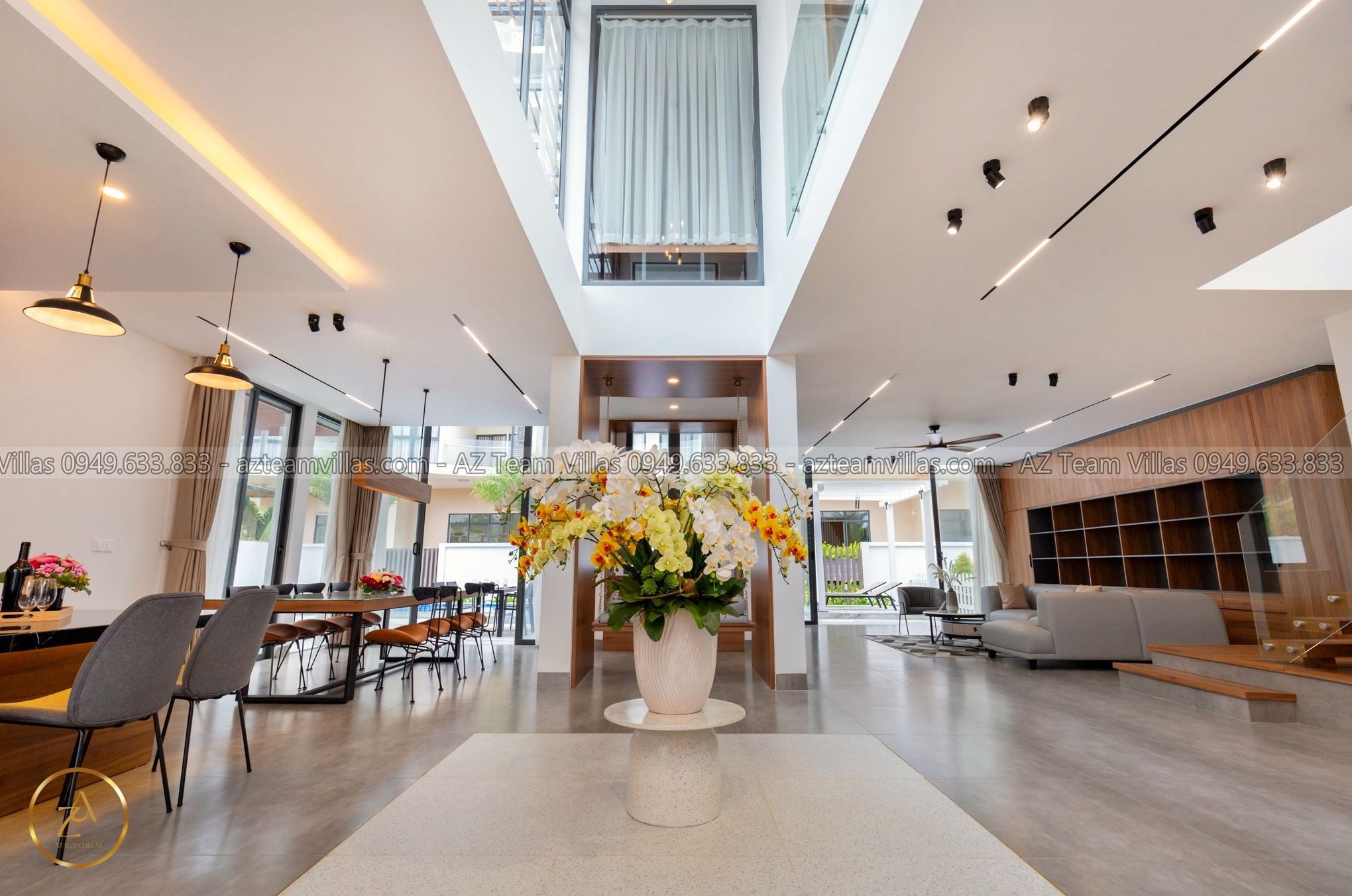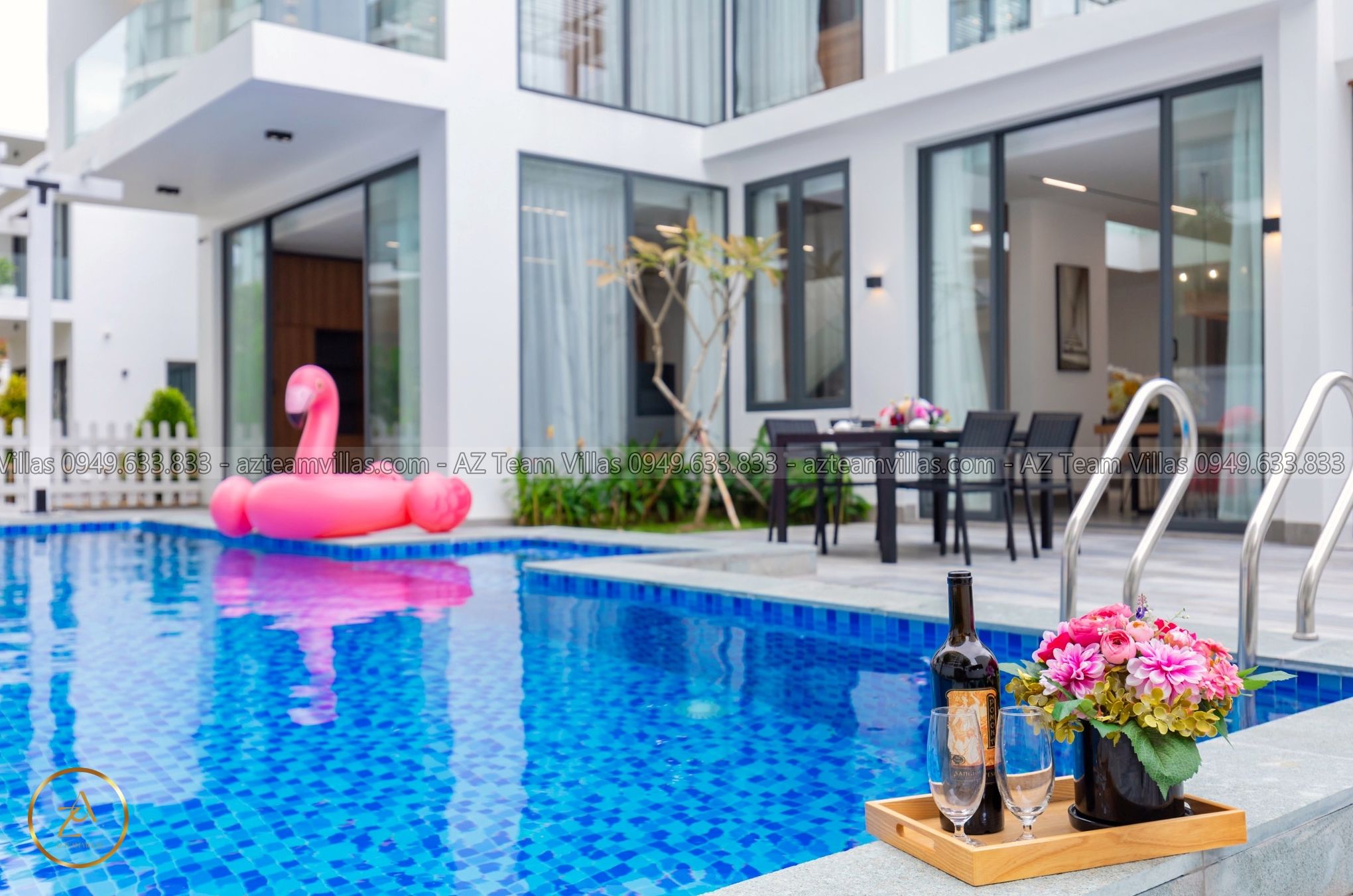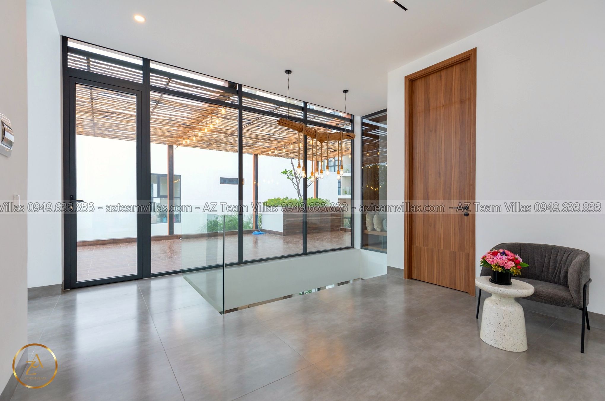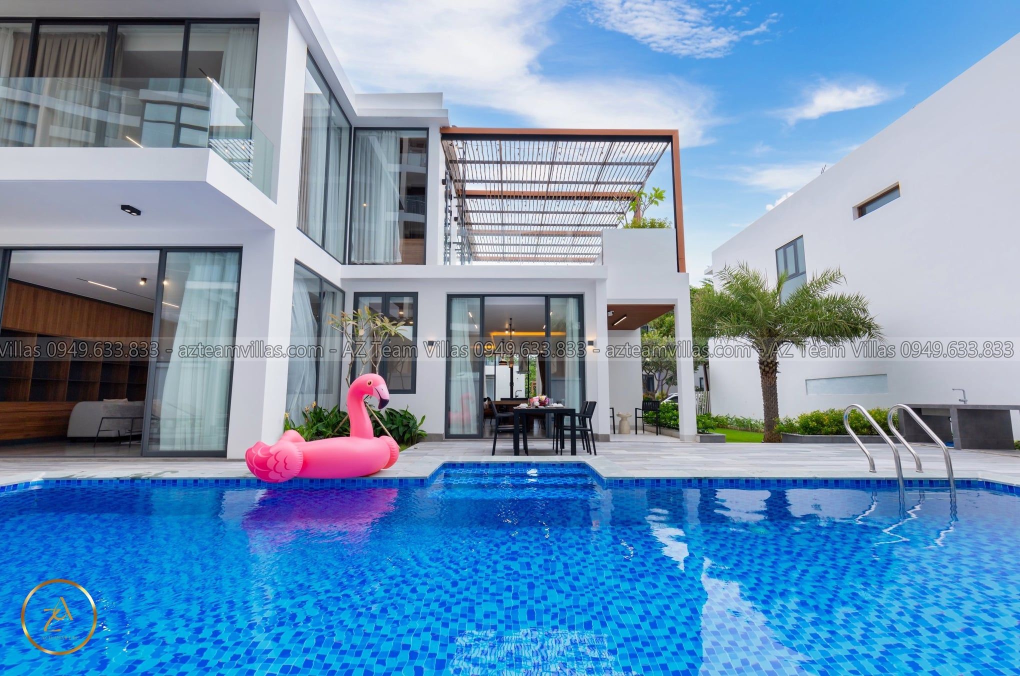 Là một biệt thự sang trọng và hiện đại, nằm trong khu nghỉ dưỡng cao cấp Aria Resort tại Vũng Tàu. Vị trí của villa là một ưu điểm lớn, vì nó nằm sát bãi biển Long Cung, một trong những bãi biển đẹp nhất Vũng Tàu. Từ villa, bạn chỉ cần đi bộ vài bước là có thể tận hưởng cảnh biển xanh mát, cát trắng mịn và nắng ấm áp. Bạn cũng có thể ngắm nhìn hoàng hôn tuyệt đẹp trên biển từ sân thượng của villa.