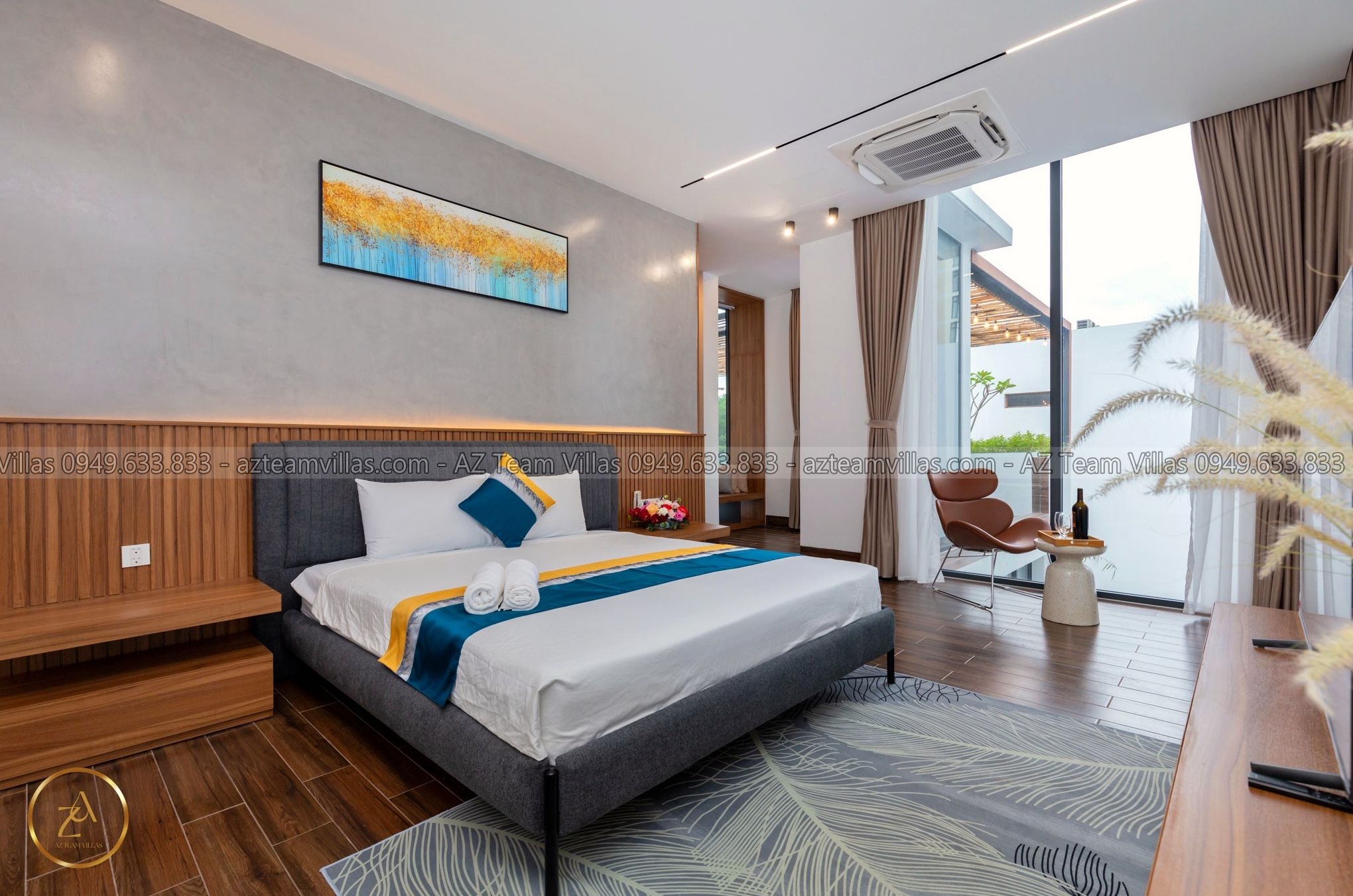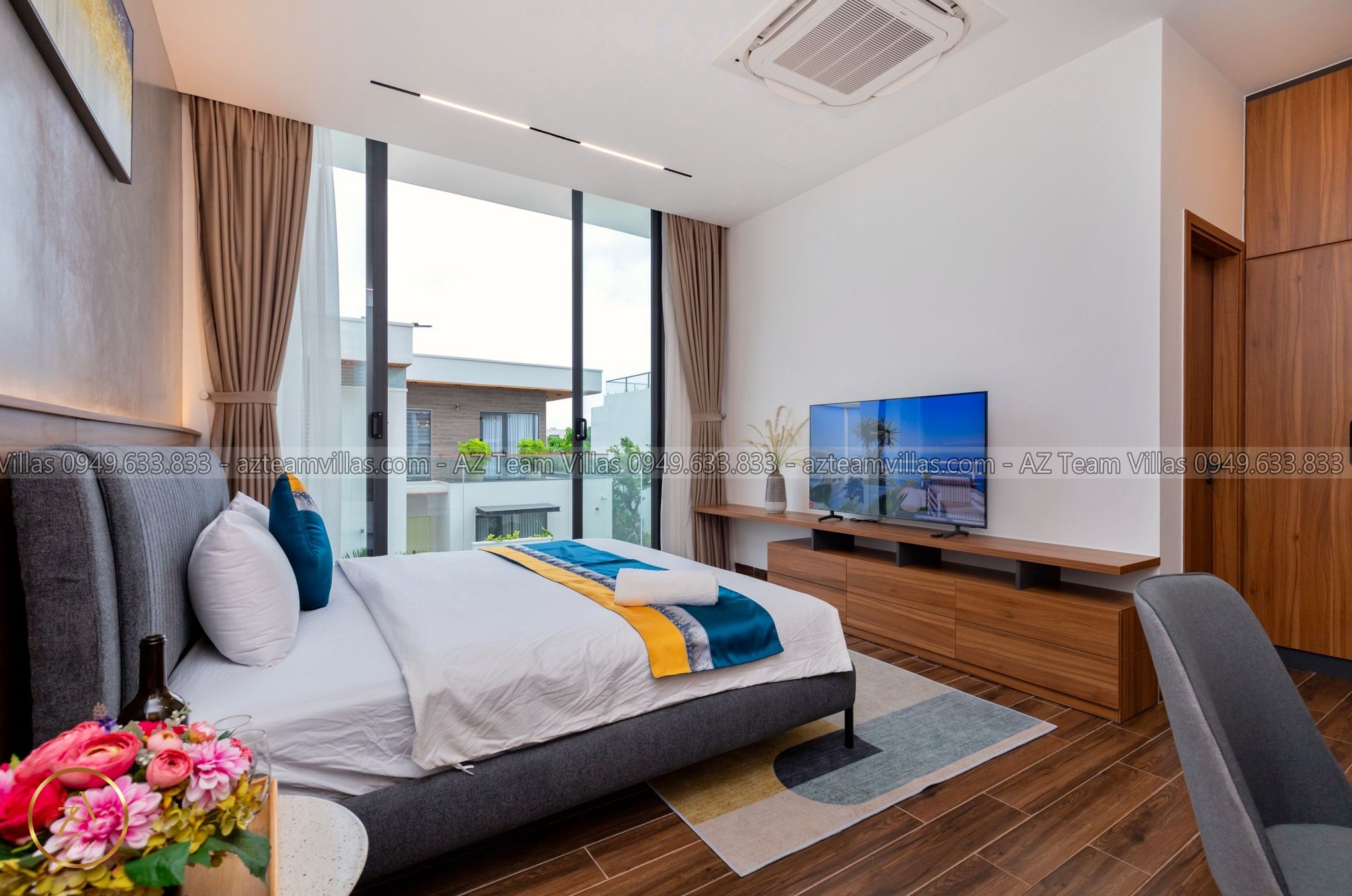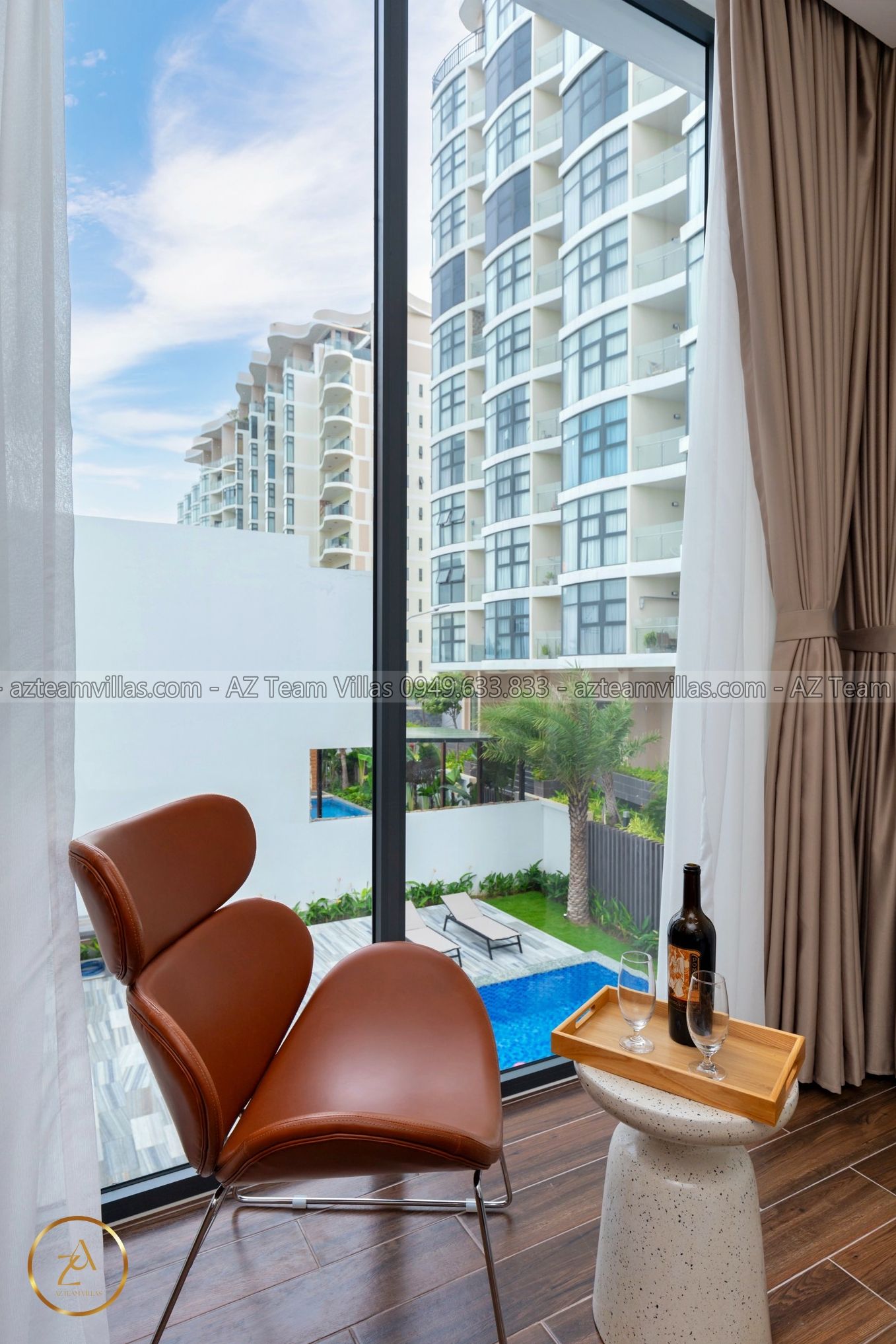 Là một biệt thự sang trọng và hiện đại, nằm trong khu nghỉ dưỡng cao cấp Aria Resort tại Vũng Tàu. Vị trí của villa là một ưu điểm lớn, vì nó nằm sát bãi biển Long Cung, một trong những bãi biển đẹp nhất Vũng Tàu. Từ villa, bạn chỉ cần đi bộ vài bước là có thể tận hưởng cảnh biển xanh mát, cát trắng mịn và nắng ấm áp. Bạn cũng có thể ngắm nhìn hoàng hôn tuyệt đẹp trên biển từ sân thượng của villa.