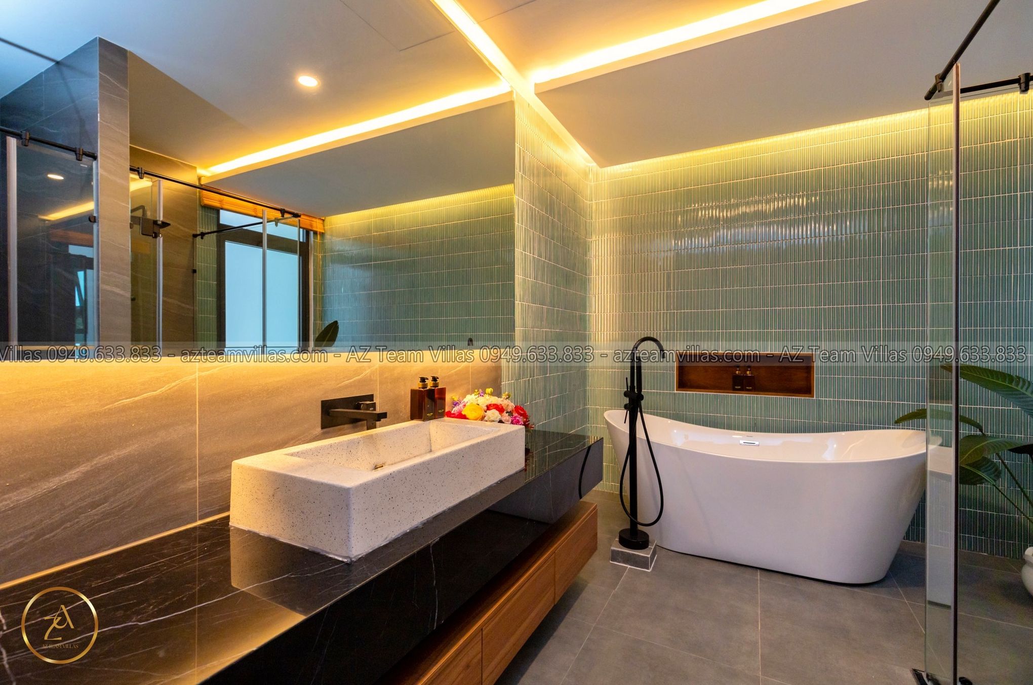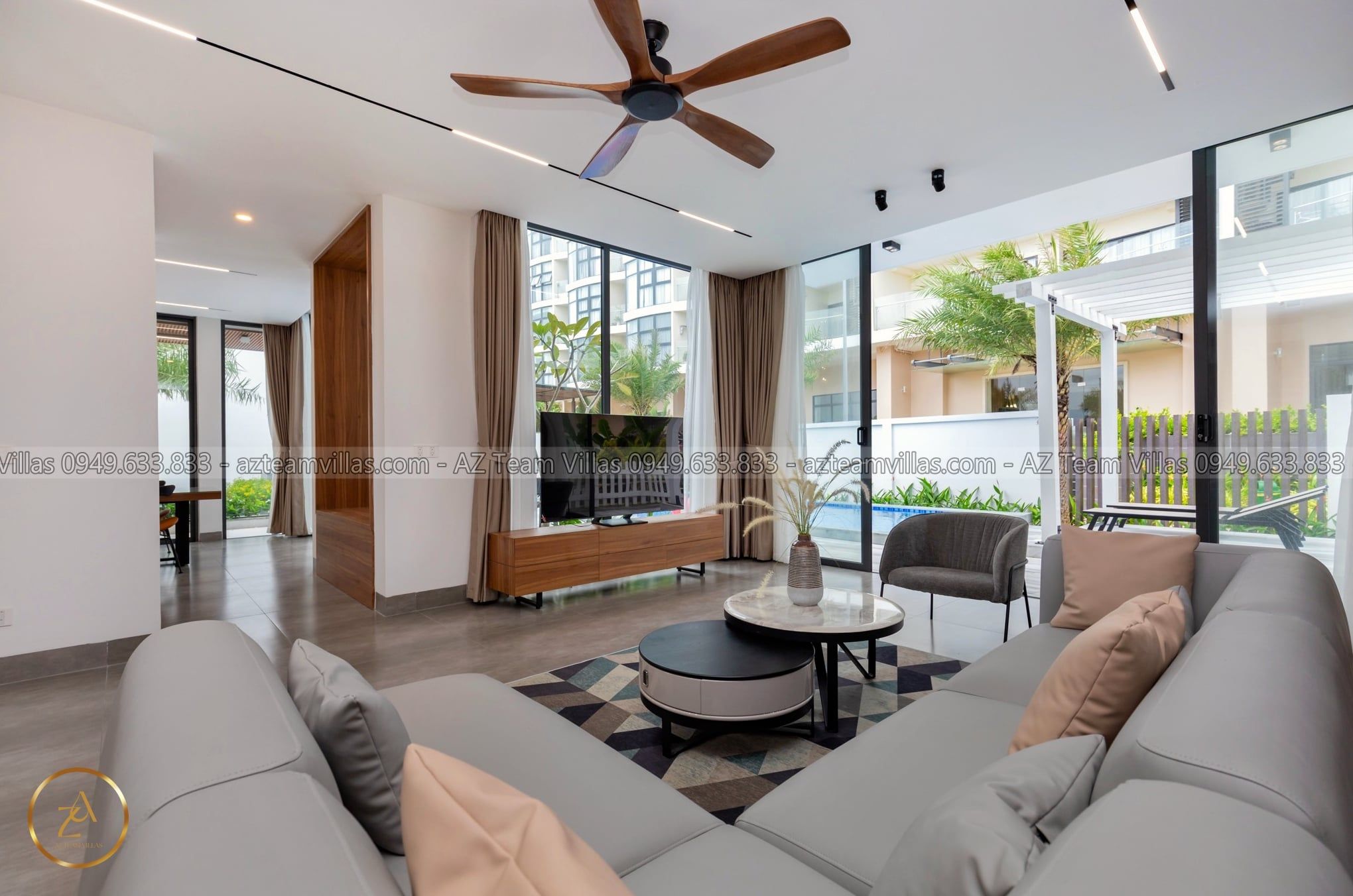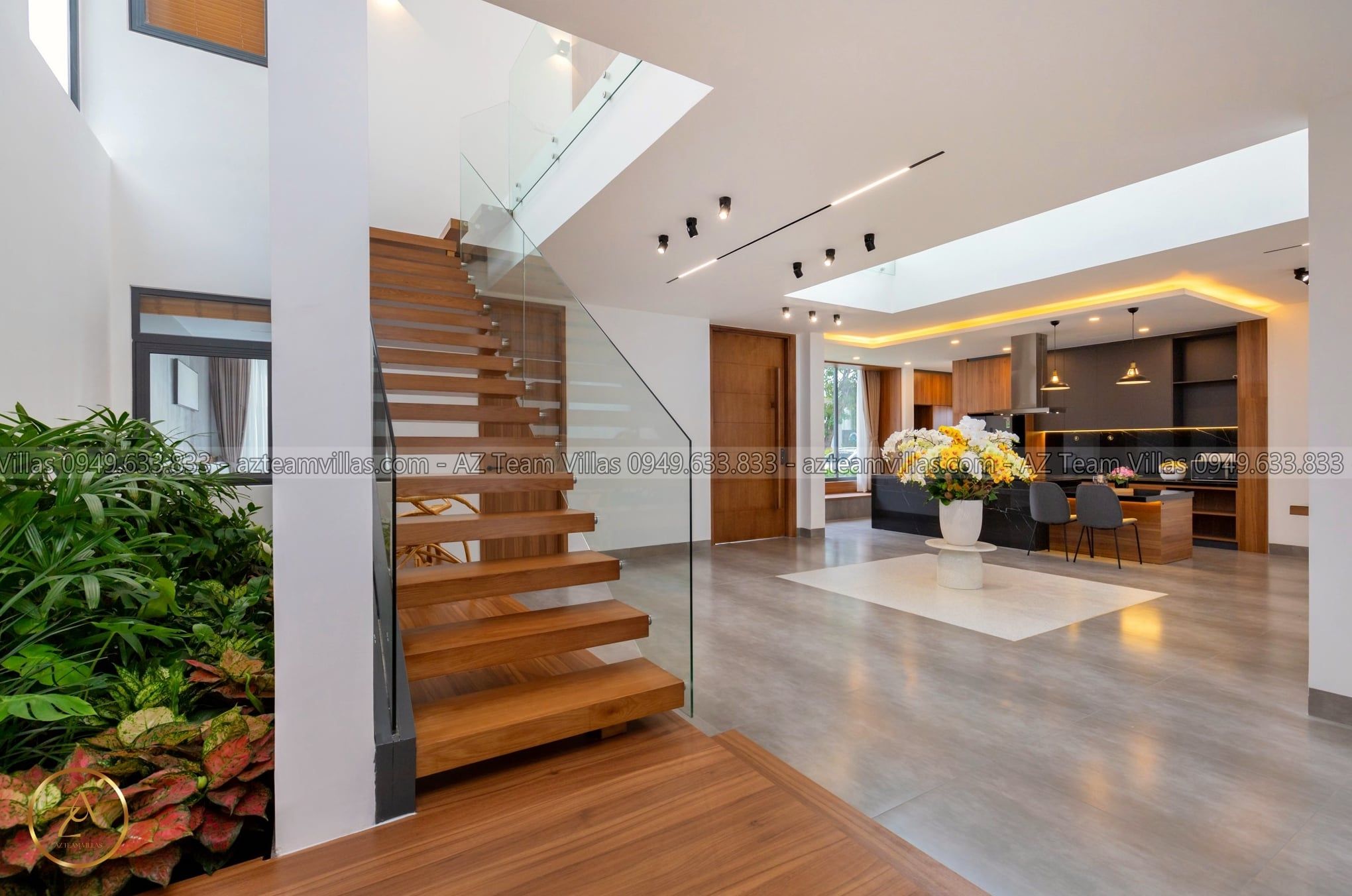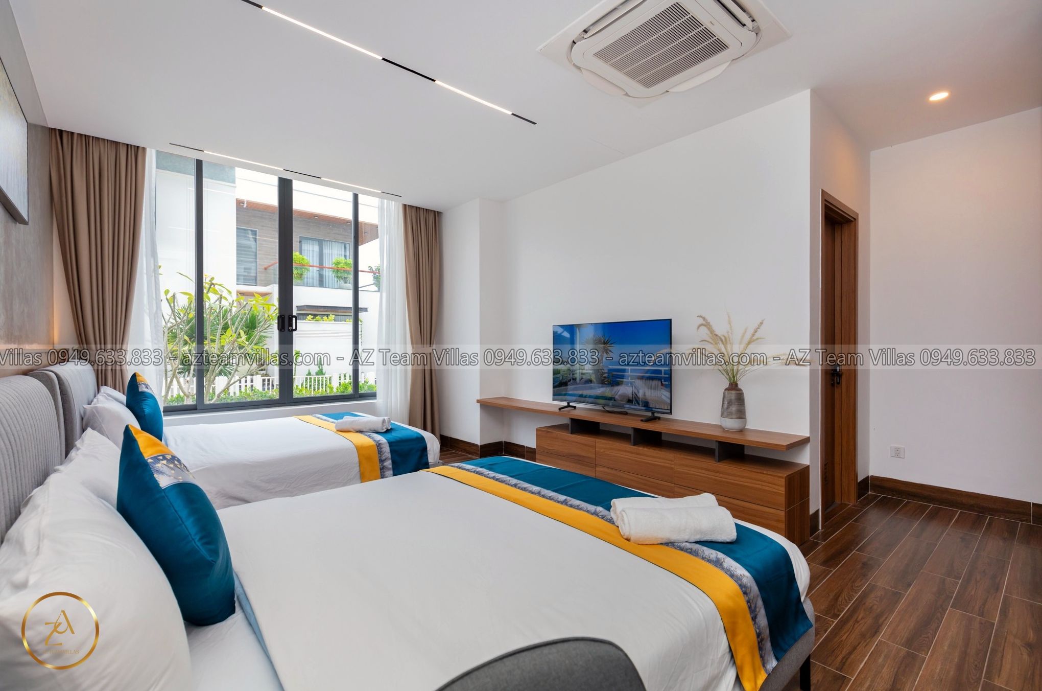 Là một biệt thự sang trọng và hiện đại, nằm trong khu nghỉ dưỡng cao cấp Aria Resort tại Vũng Tàu. Vị trí của villa là một ưu điểm lớn, vì nó nằm sát bãi biển Long Cung, một trong những bãi biển đẹp nhất Vũng Tàu. Từ villa, bạn chỉ cần đi bộ vài bước là có thể tận hưởng cảnh biển xanh mát, cát trắng mịn và nắng ấm áp. Bạn cũng có thể ngắm nhìn hoàng hôn tuyệt đẹp trên biển từ sân thượng của villa.