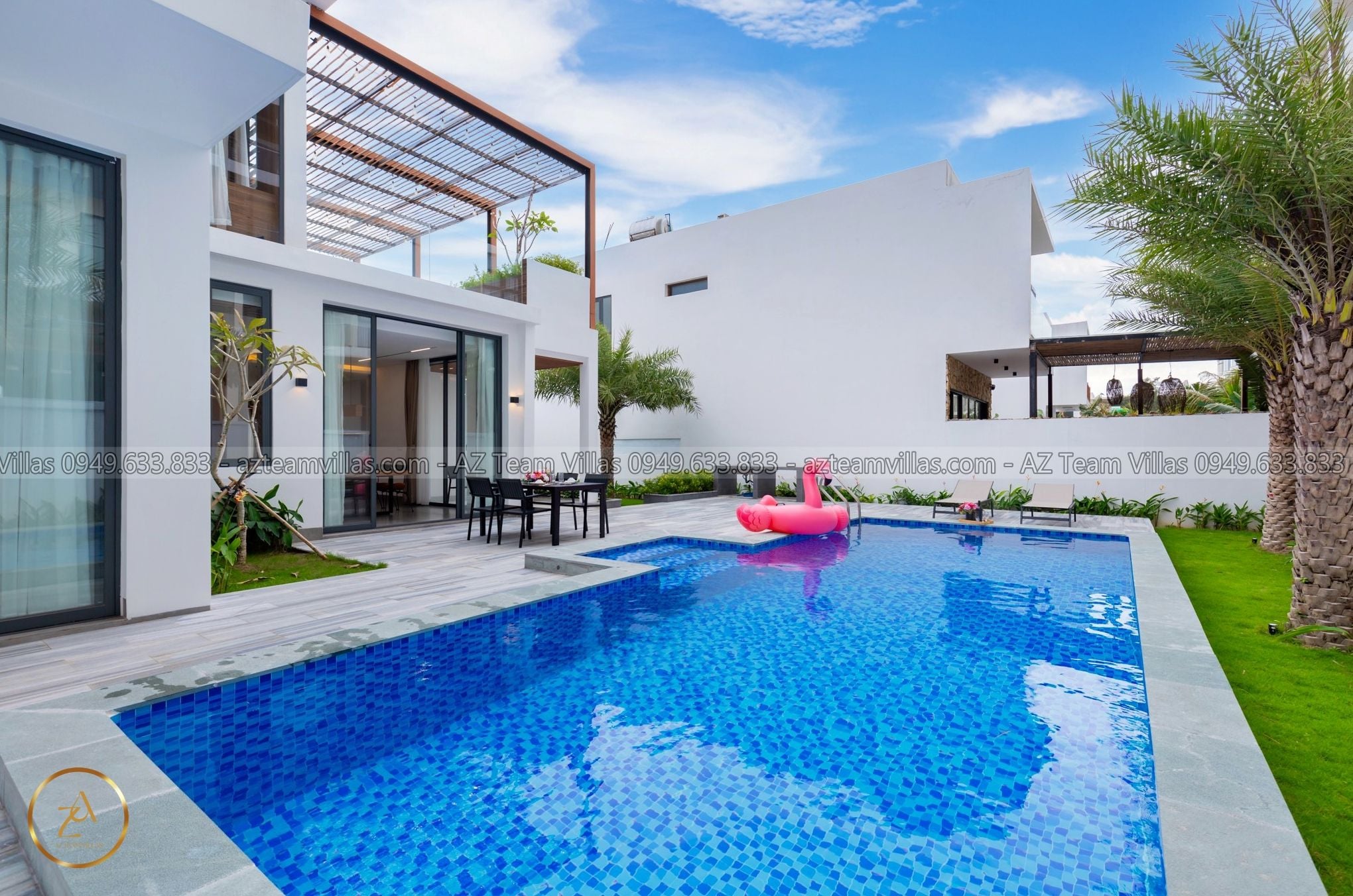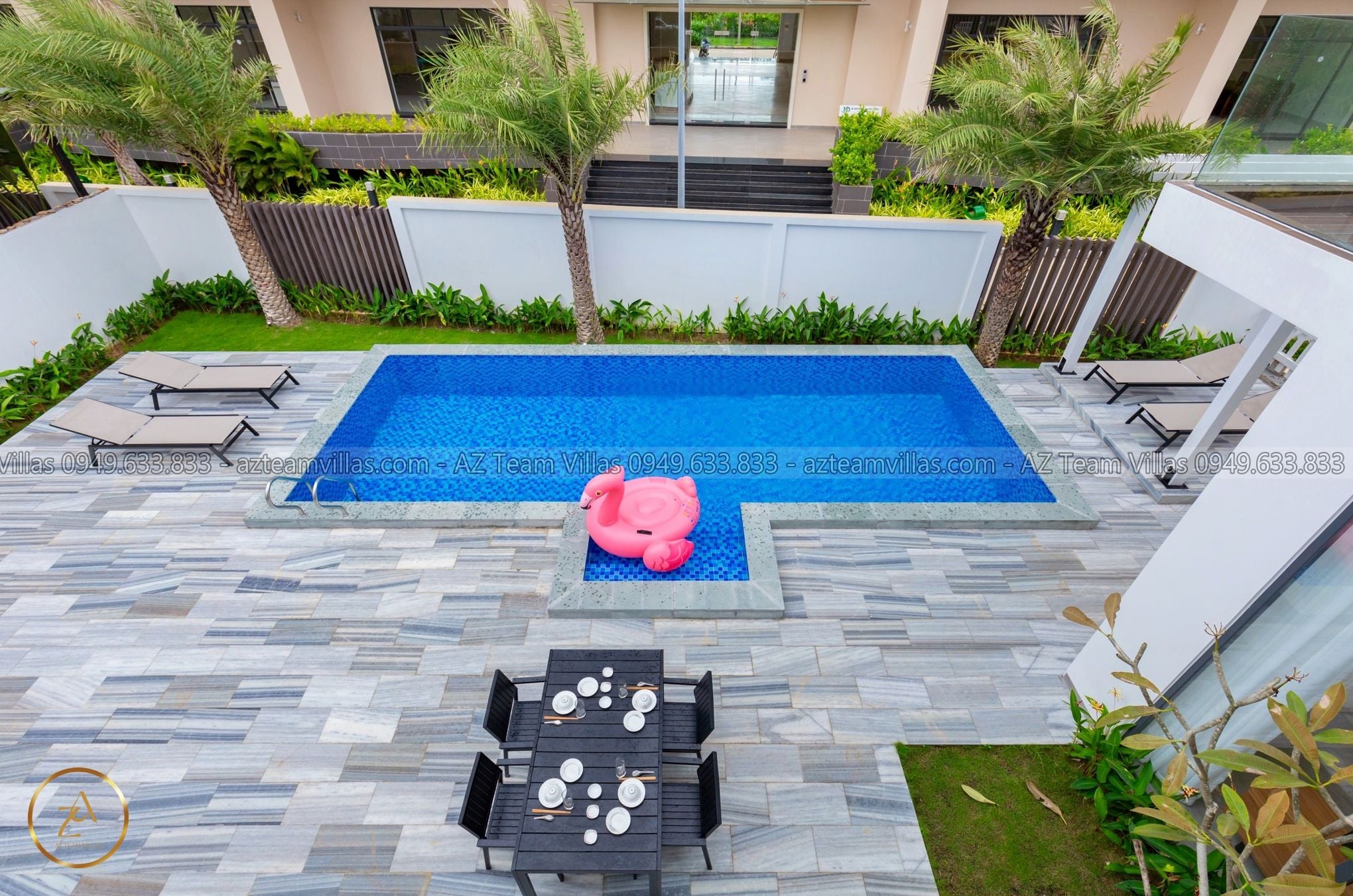 - Hồ bơi 40 m2 có ghế tắm nắng, dù che cỡ lớn