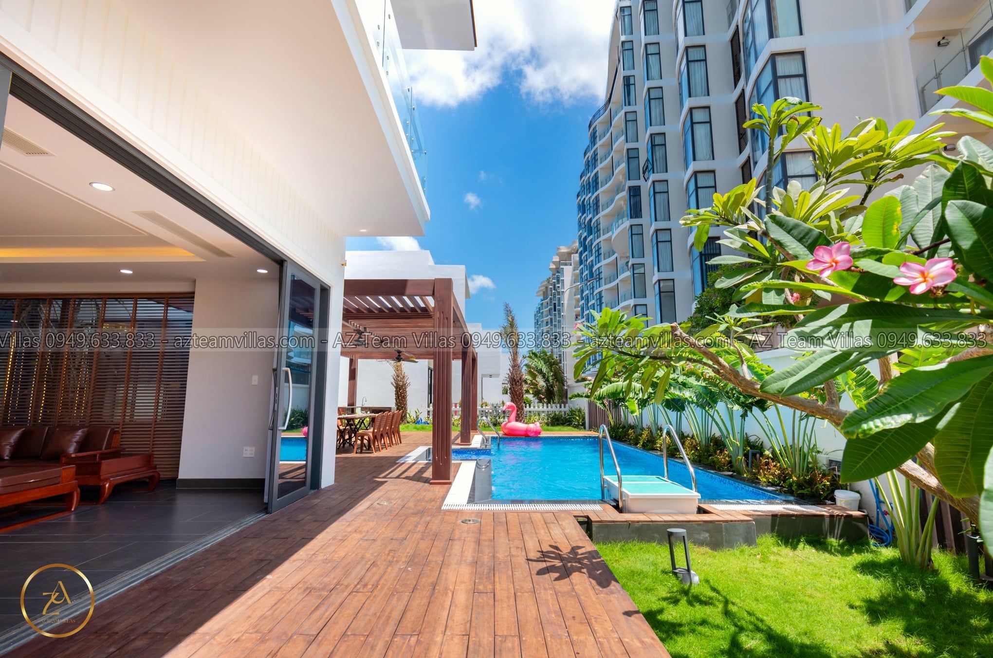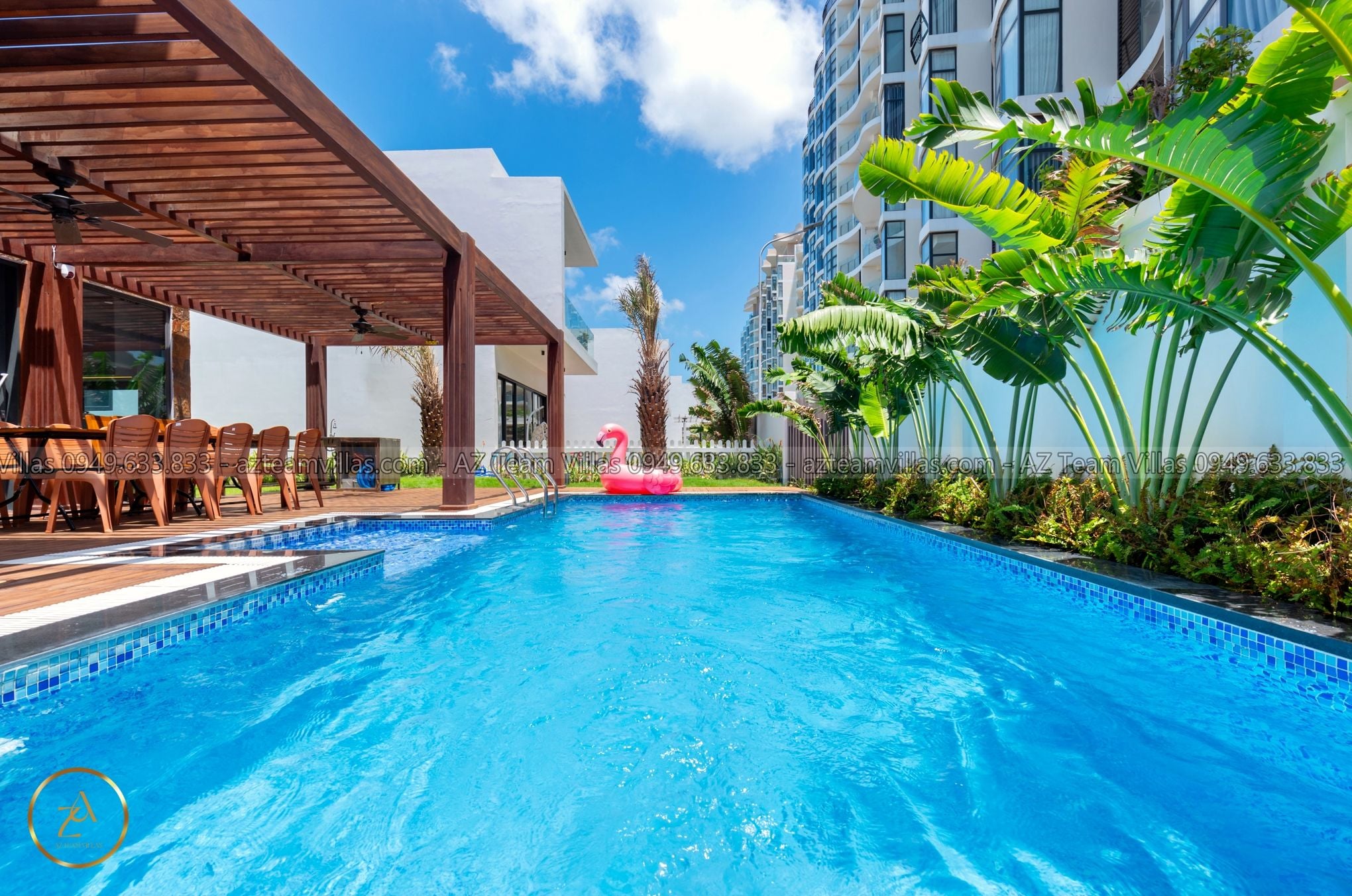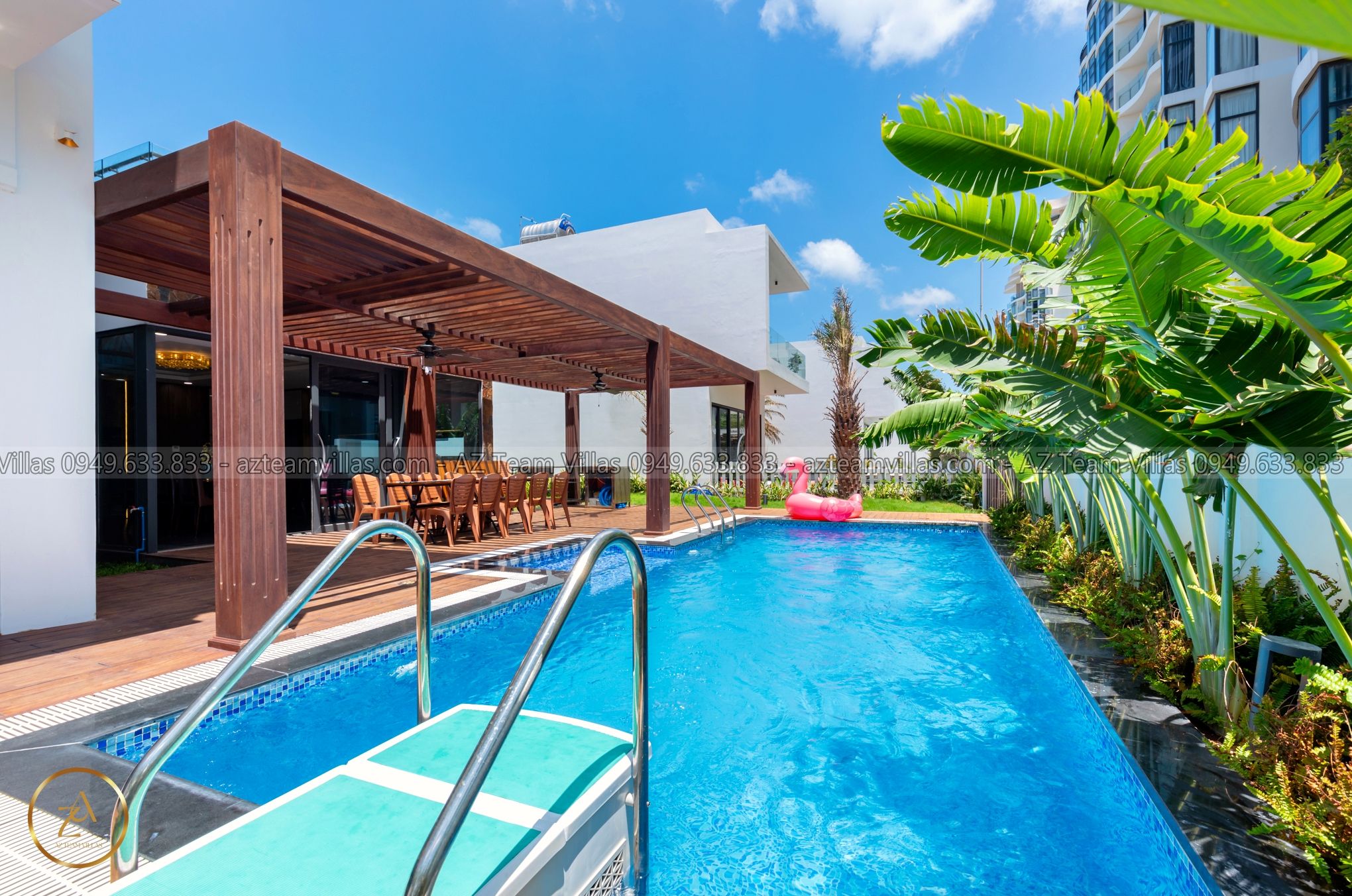 Là một biệt thự sang trọng và hiện đại, nằm trong khu nghỉ dưỡng cao cấp Aria Resort tại Vũng Tàu. Vị trí của villa là một ưu điểm lớn, vì nó nằm sát bãi biển Long Cung, một trong những bãi biển đẹp nhất Vũng Tàu. Từ villa, bạn chỉ cần đi bộ vài bước là có thể tận hưởng cảnh biển xanh mát, cát trắng mịn và nắng ấm áp. Bạn cũng có thể ngắm nhìn hoàng hôn tuyệt đẹp trên biển từ sân thượng của villa.