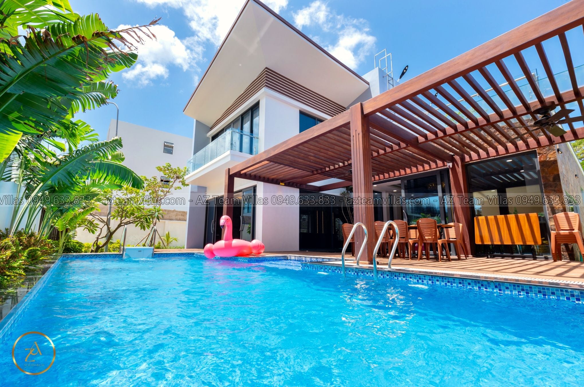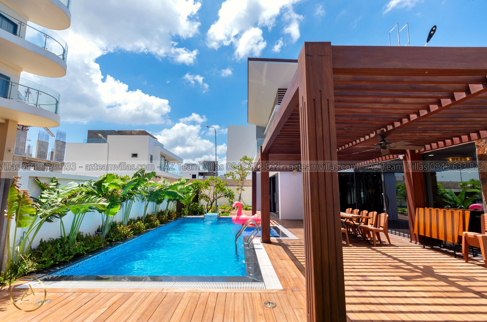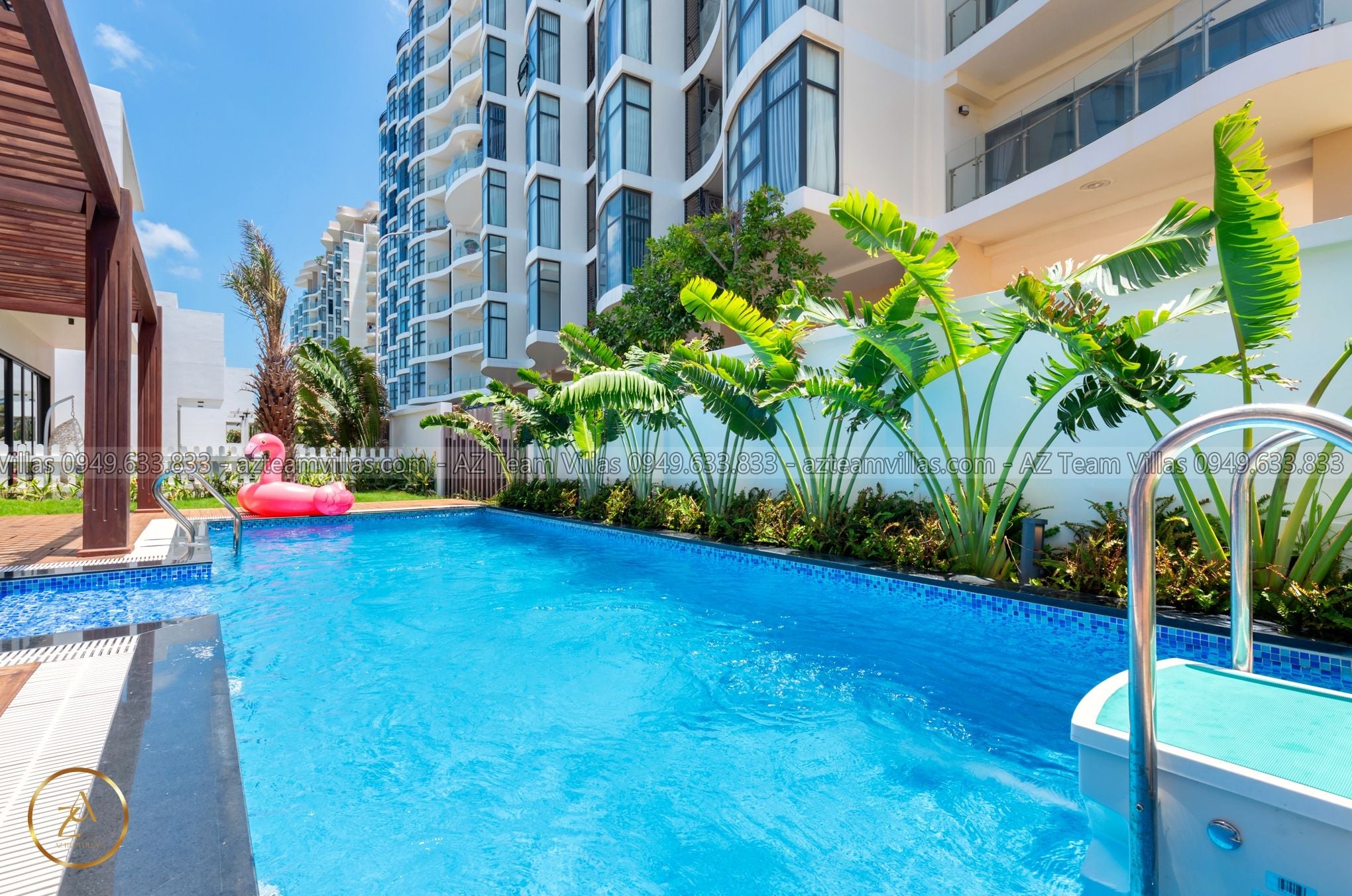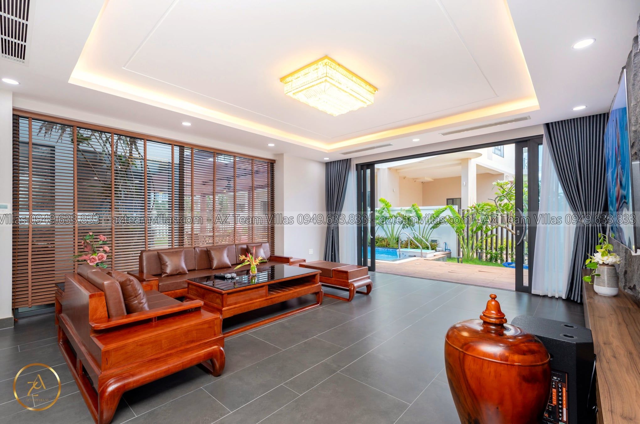 Là một biệt thự sang trọng và hiện đại, nằm trong khu nghỉ dưỡng cao cấp Aria Resort tại Vũng Tàu. Vị trí của villa là một ưu điểm lớn, vì nó nằm sát bãi biển Long Cung, một trong những bãi biển đẹp nhất Vũng Tàu. Từ villa, bạn chỉ cần đi bộ vài bước là có thể tận hưởng cảnh biển xanh mát, cát trắng mịn và nắng ấm áp. Bạn cũng có thể ngắm nhìn hoàng hôn tuyệt đẹp trên biển từ sân thượng của villa.