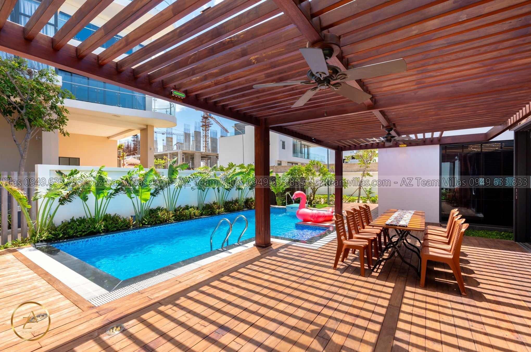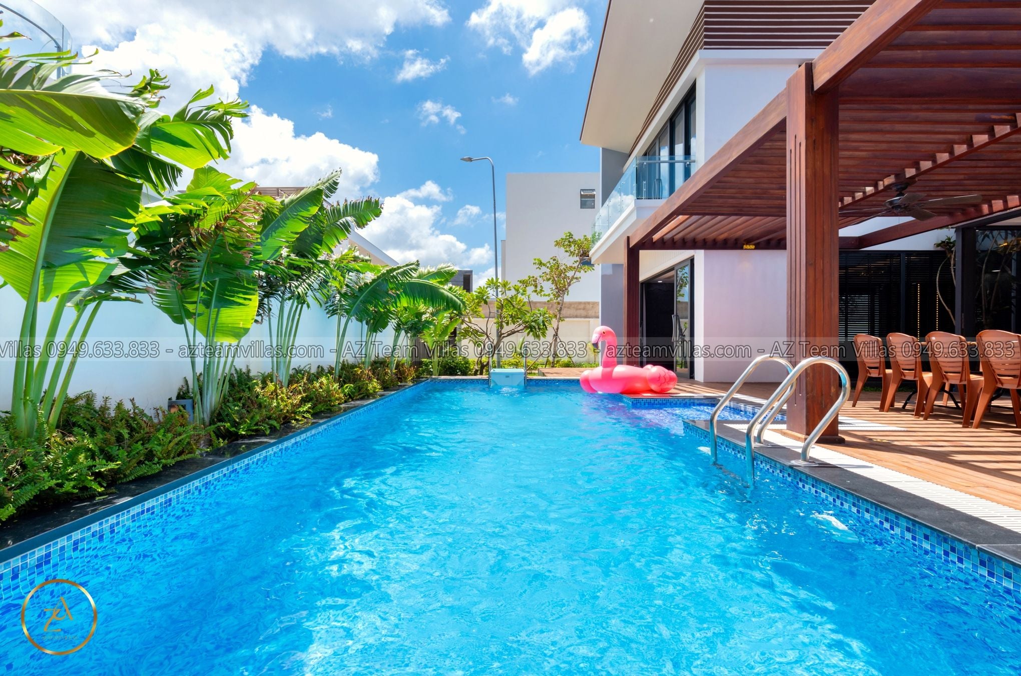 - Hồ bơi 40 m2 có ghế tắm nắng, dù che cỡ lớn