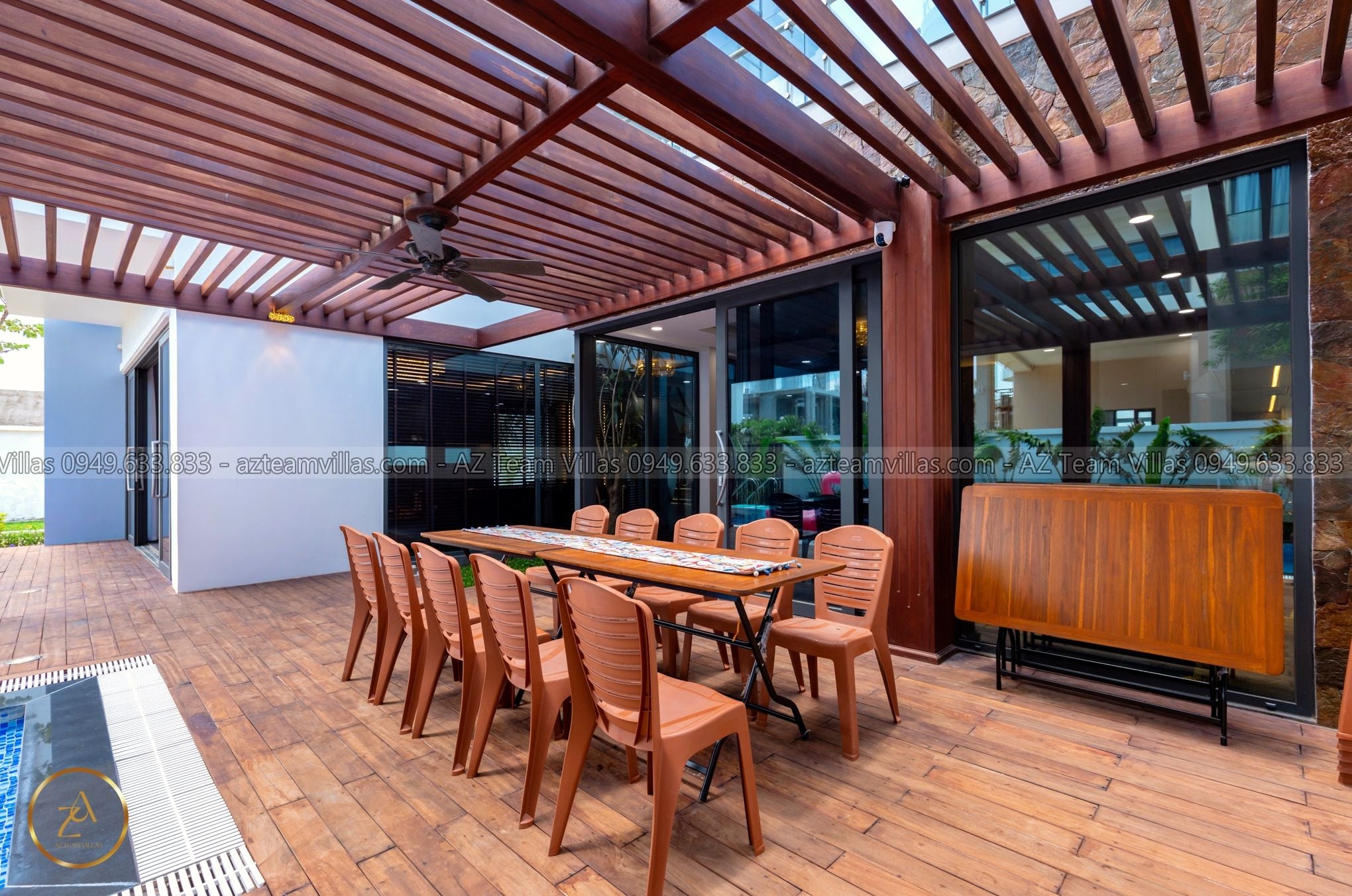- Sân vườn ngoài trời rộng rãi, thoáng mát đáp ứng nhu cầu tổ chức tiệc BBQ và các hoạt động sinh hoạt ngoài trời.