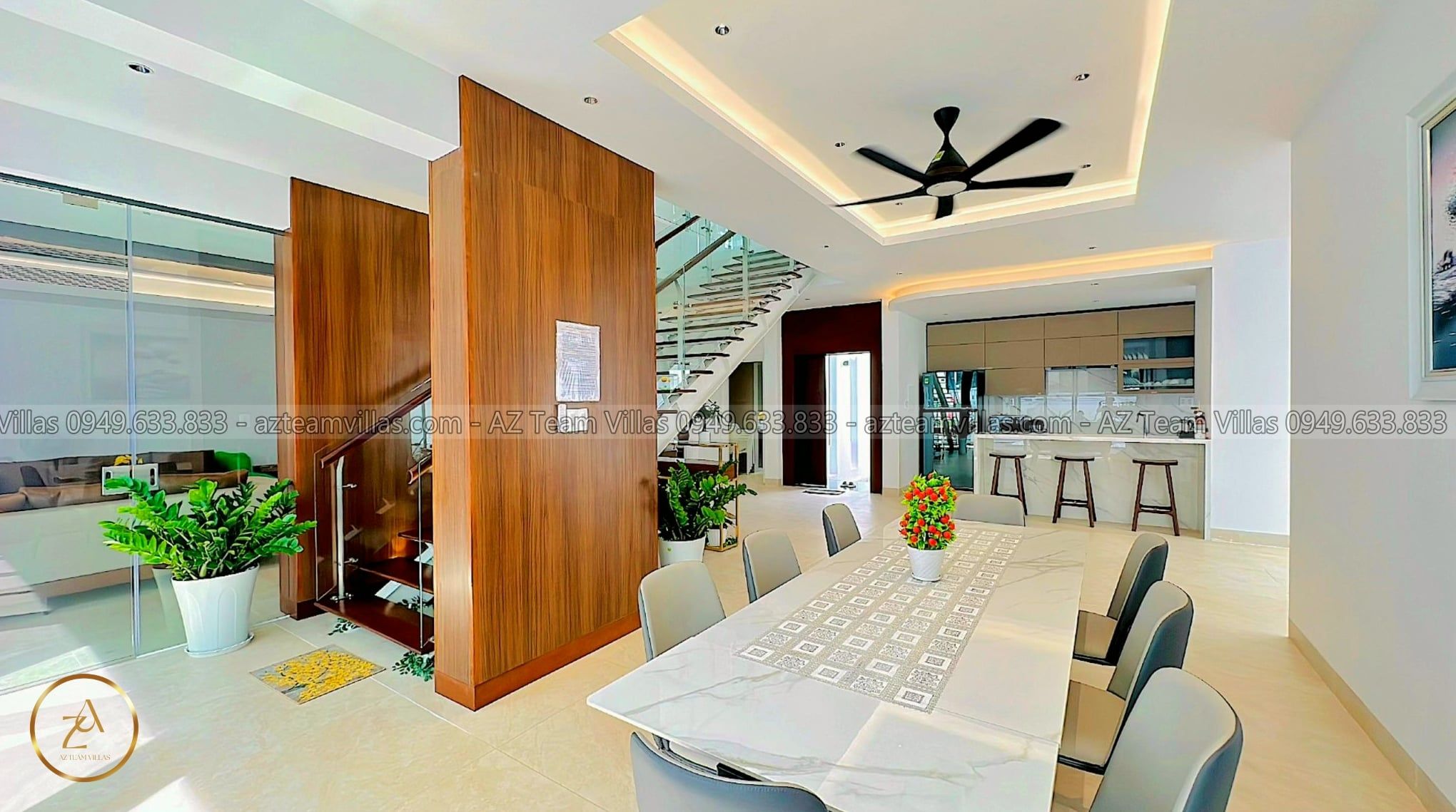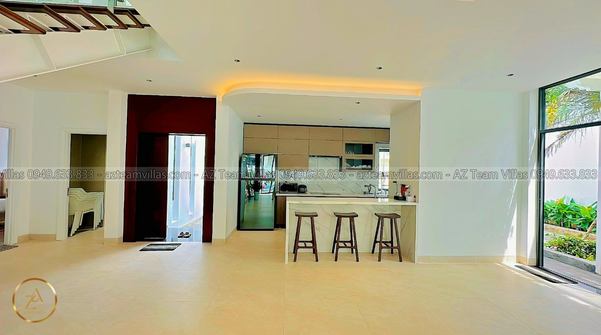 Là một biệt thự sang trọng và hiện đại, nằm trong khu nghỉ dưỡng cao cấp Aria Resort tại Vũng Tàu. Vị trí của villa là một ưu điểm lớn, vì nó nằm sát bãi biển Long Cung, một trong những bãi biển đẹp nhất Vũng Tàu. Từ villa, bạn chỉ cần đi bộ vài bước là có thể tận hưởng cảnh biển xanh mát, cát trắng mịn và nắng ấm áp. Bạn cũng có thể ngắm nhìn hoàng hôn tuyệt đẹp trên biển từ sân thượng của villa.