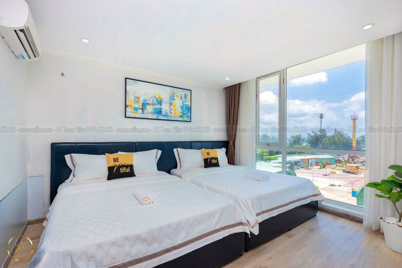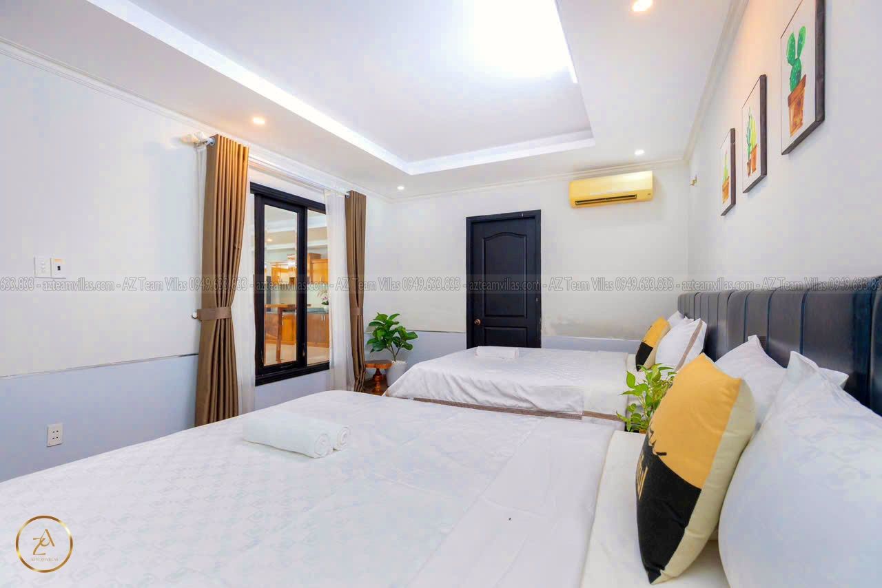 ✔ 4 phòng ngủ – 6 giường lớn, có thể kê thêm nệm để tối đa không gian nghỉ ngơi.