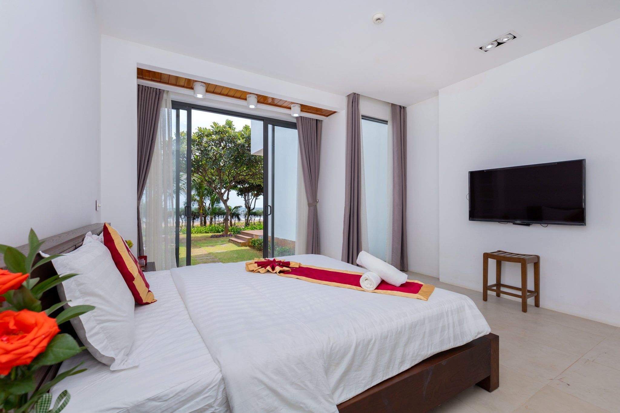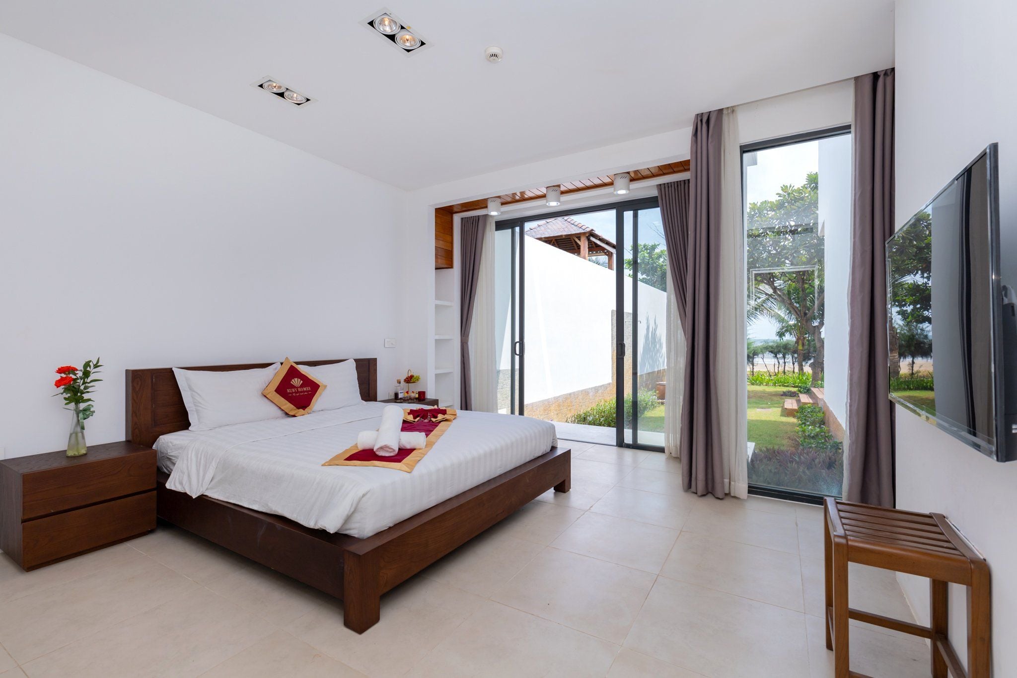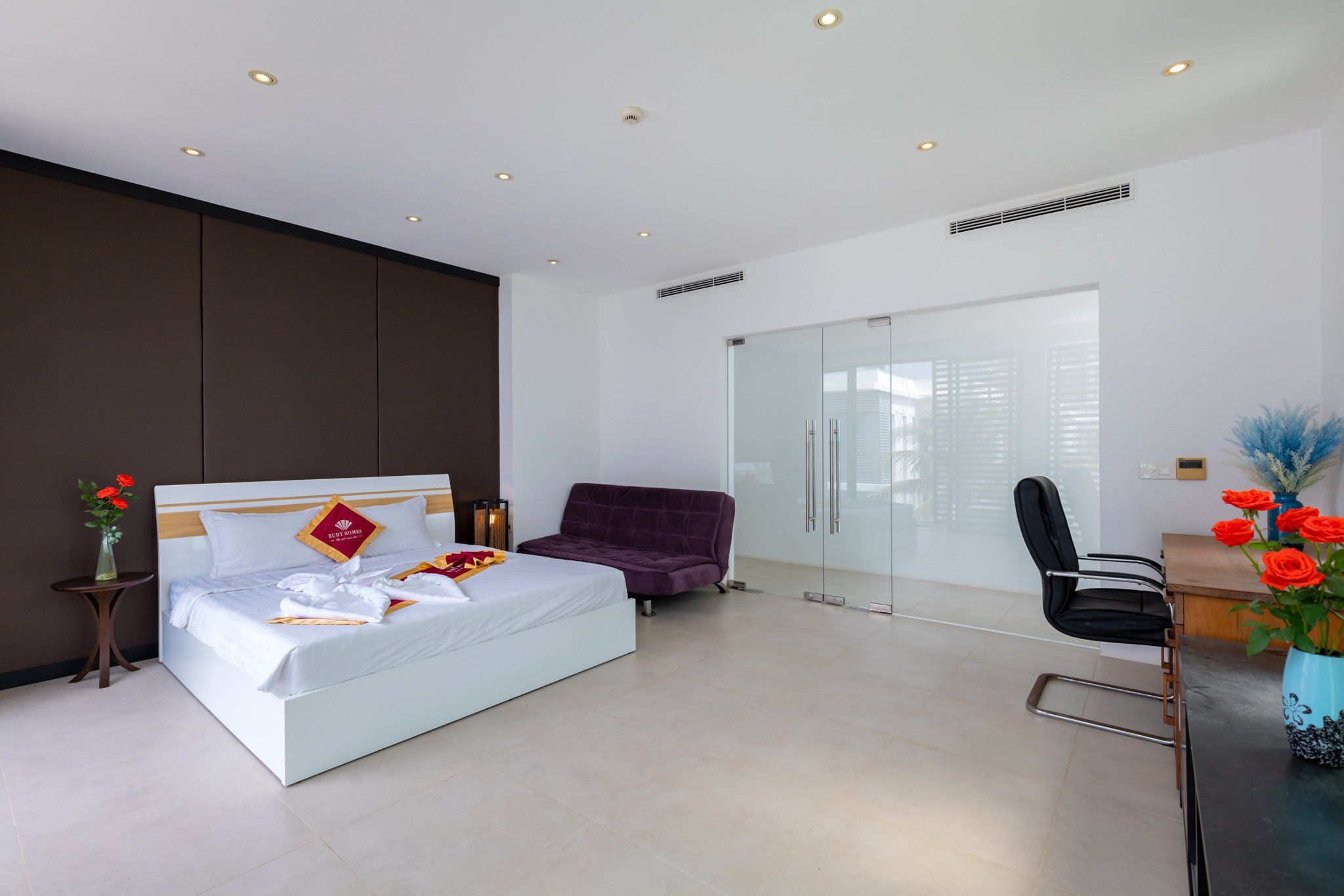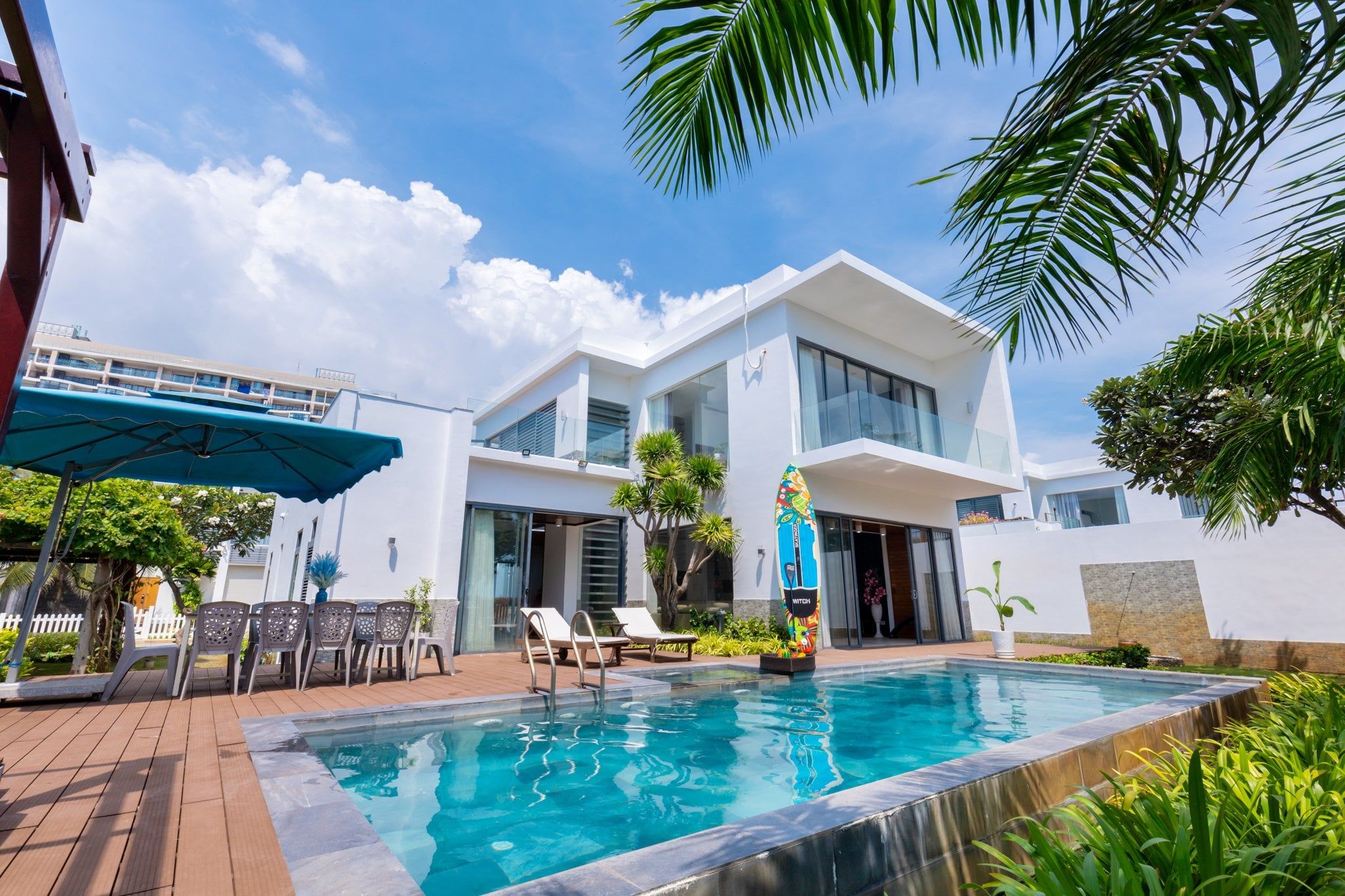 Là một biệt thự sang trọng và hiện đại, nằm trong khu nghỉ dưỡng cao cấp Aria Resort tại Vũng Tàu. Vị trí của villa là một ưu điểm lớn, vì nó nằm sát bãi biển Long Cung, một trong những bãi biển đẹp nhất Vũng Tàu. Từ villa, bạn chỉ cần đi bộ vài bước là có thể tận hưởng cảnh biển xanh mát, cát trắng mịn và nắng ấm áp. Bạn cũng có thể ngắm nhìn hoàng hôn tuyệt đẹp trên biển từ sân thượng của villa.